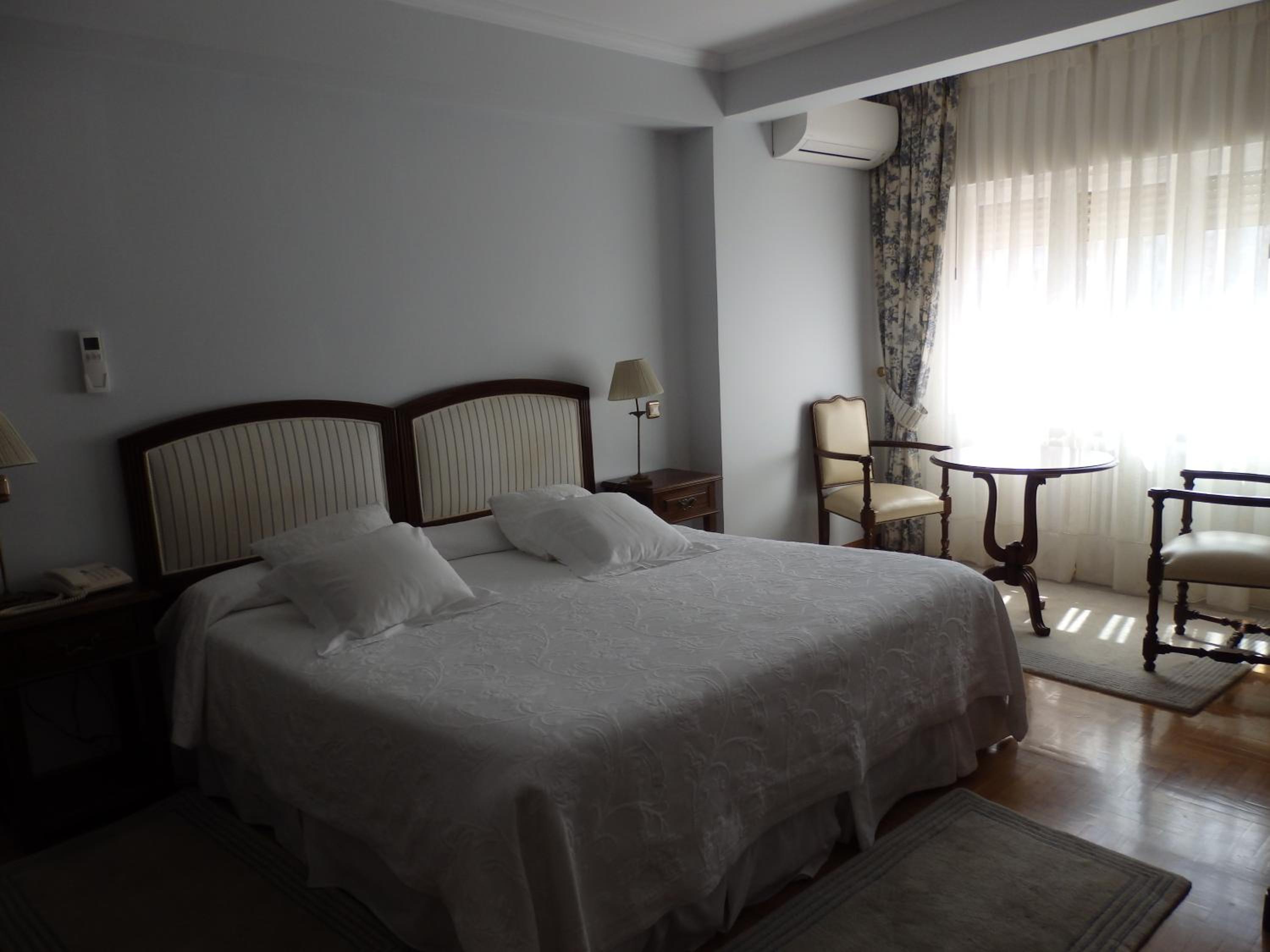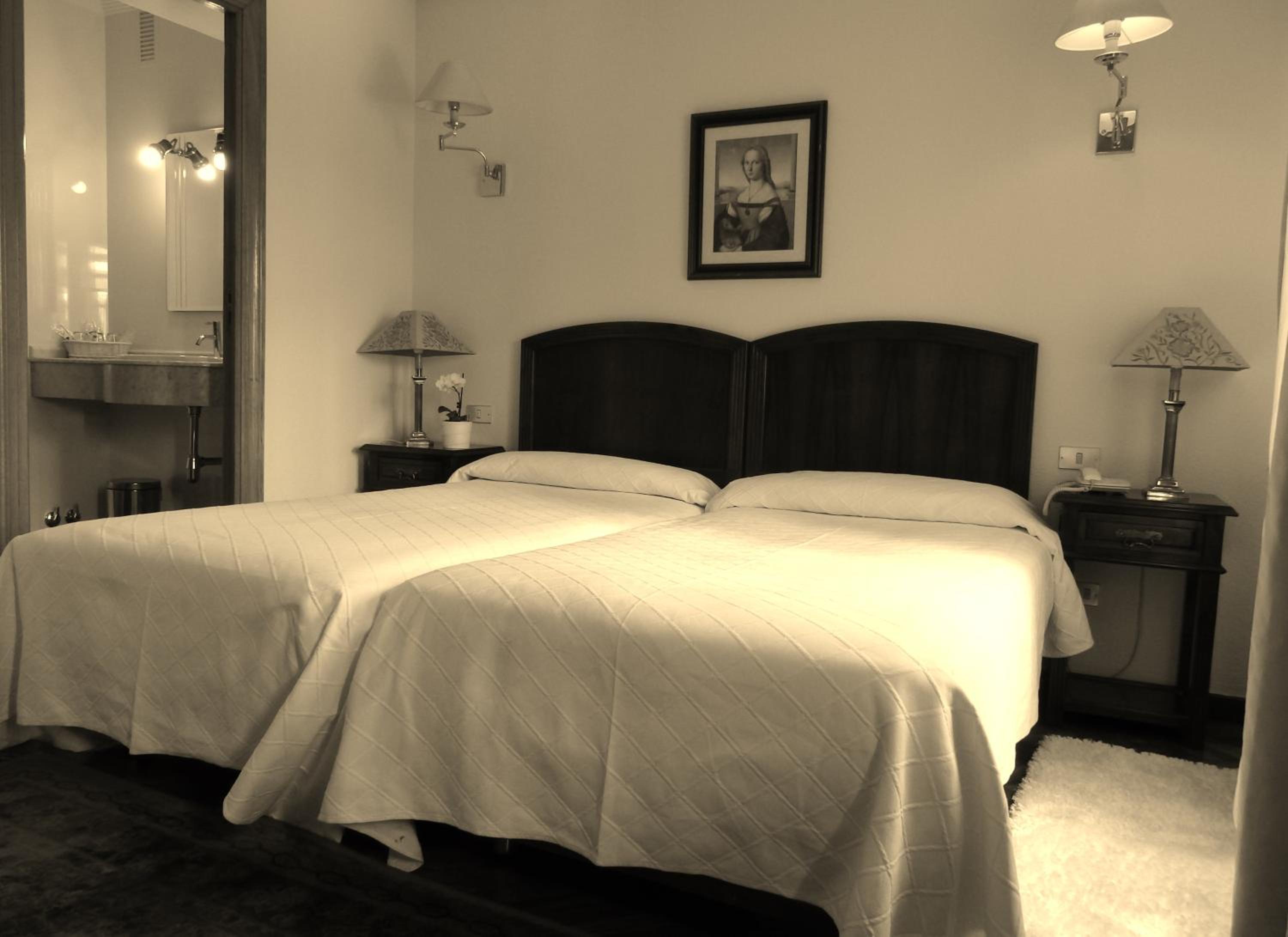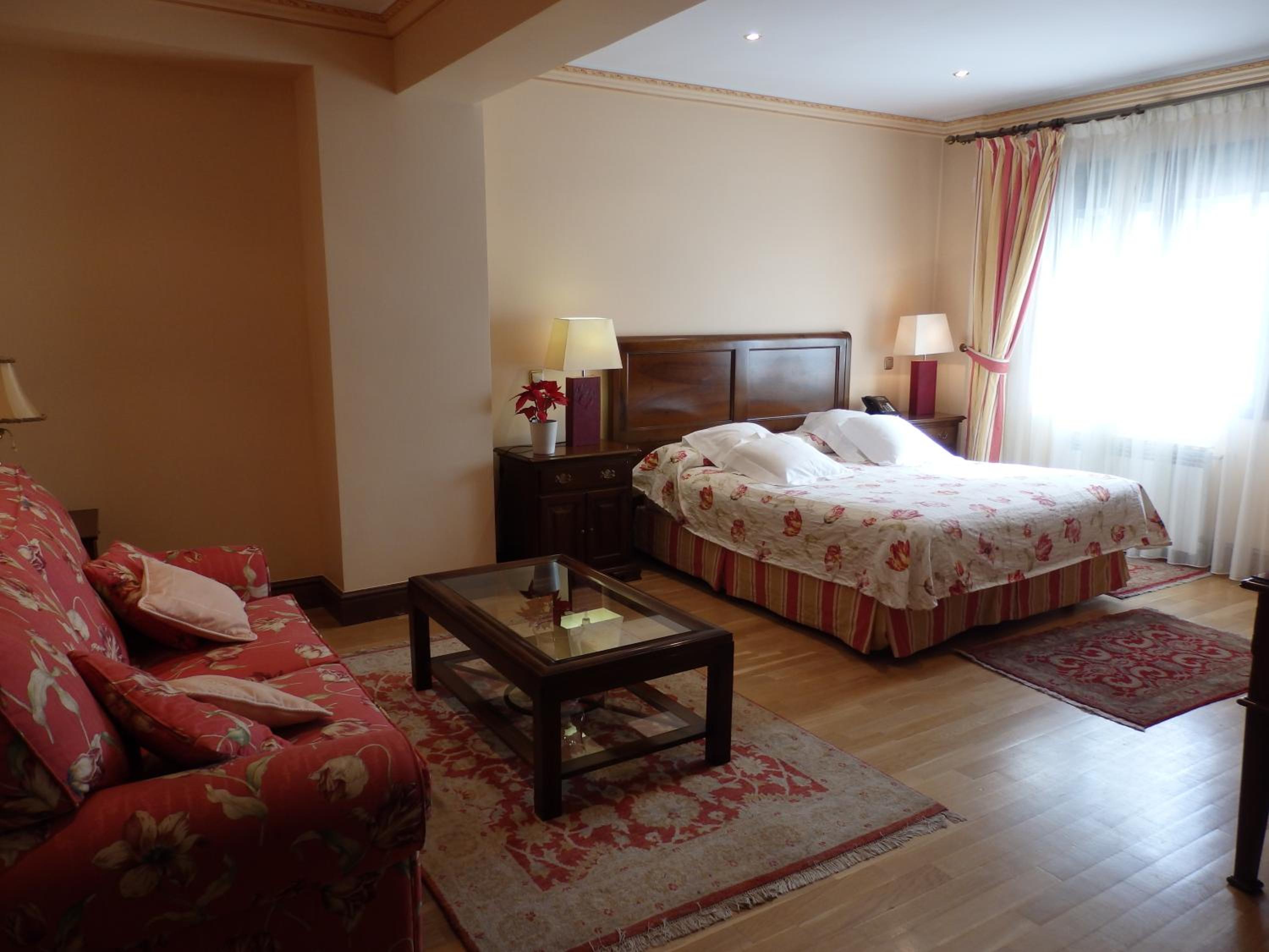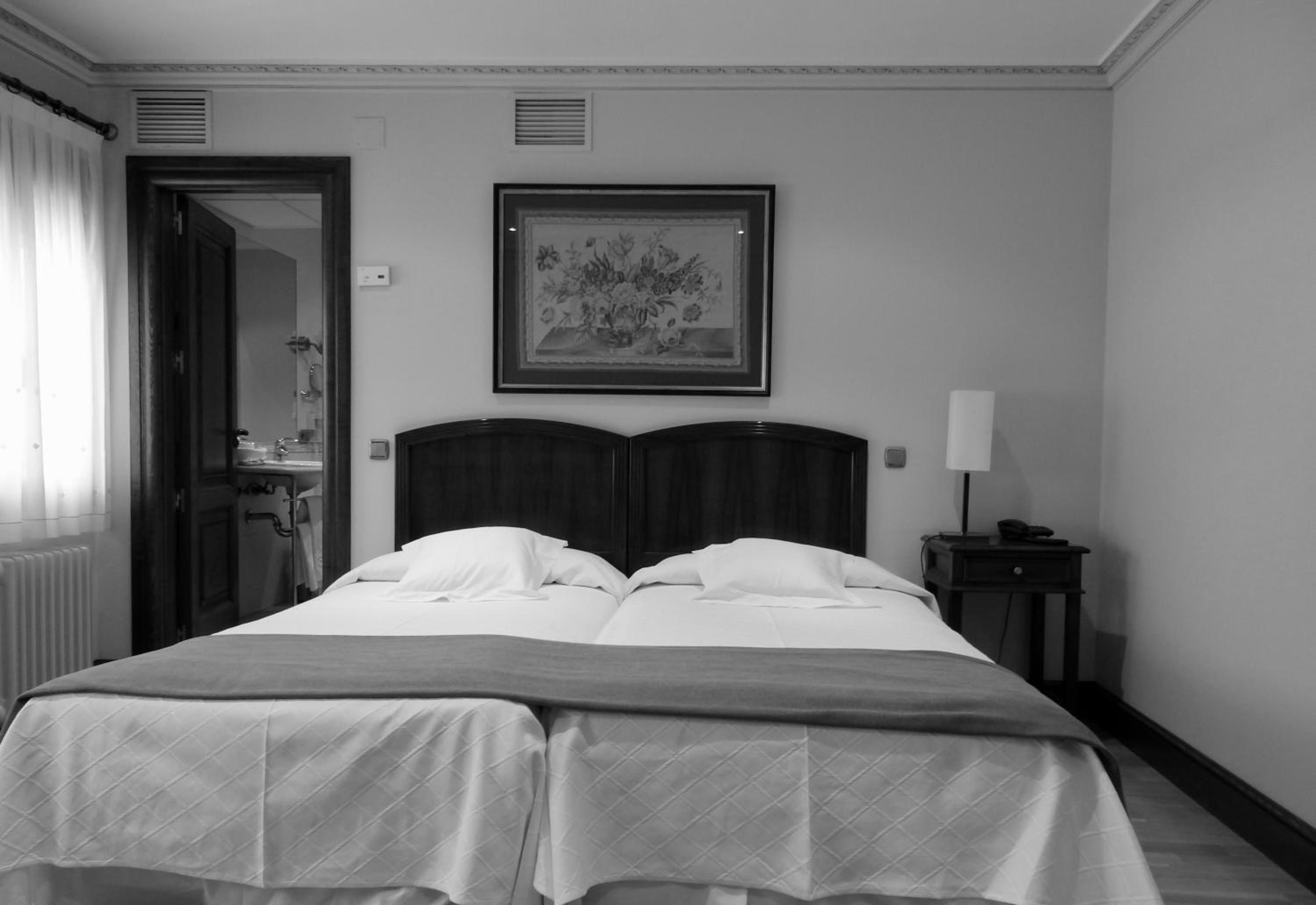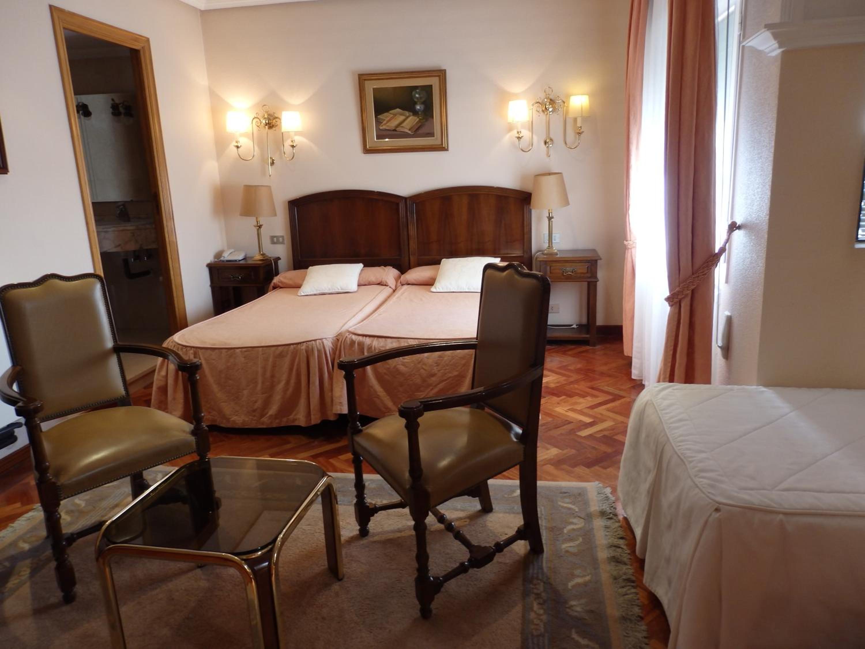 Experience comfort and style at Hotel Aranda with our air-conditioned rooms featuring satellite TV, parquet flooring, and elegant traditional furniture. Relax in a separate seating area and enjoy the convenience of a private bathroom with a hairdryer.