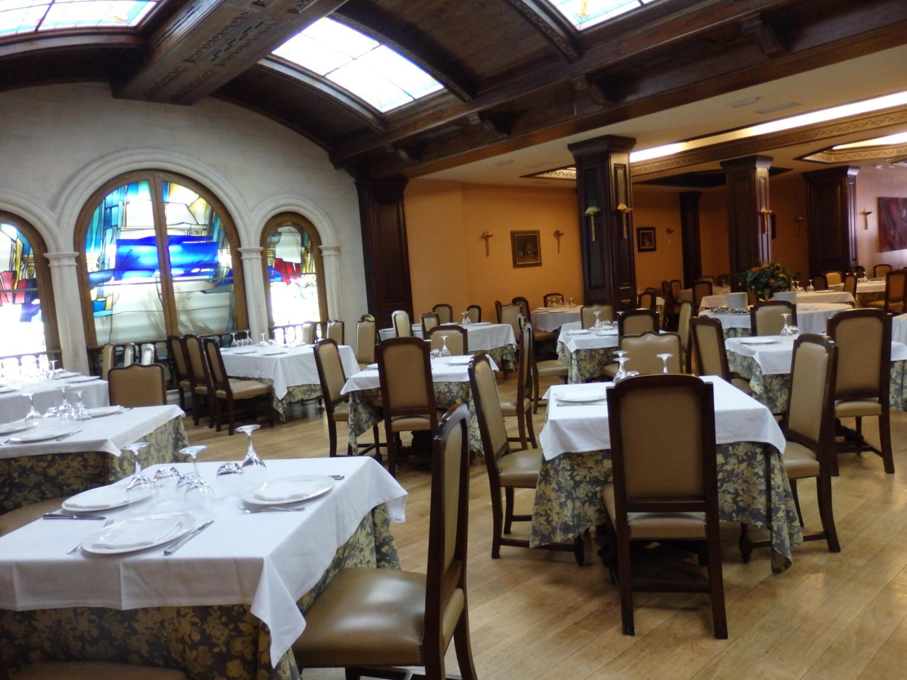 Indulge in the flavors of Castilian cuisine at our Spanish-style restaurant, offering delectable dishes like roast lamb. Pair your meal with fine wines from our well-stocked cellar. For a more casual setting, visit our bar for a quick snack or a refreshing drink.