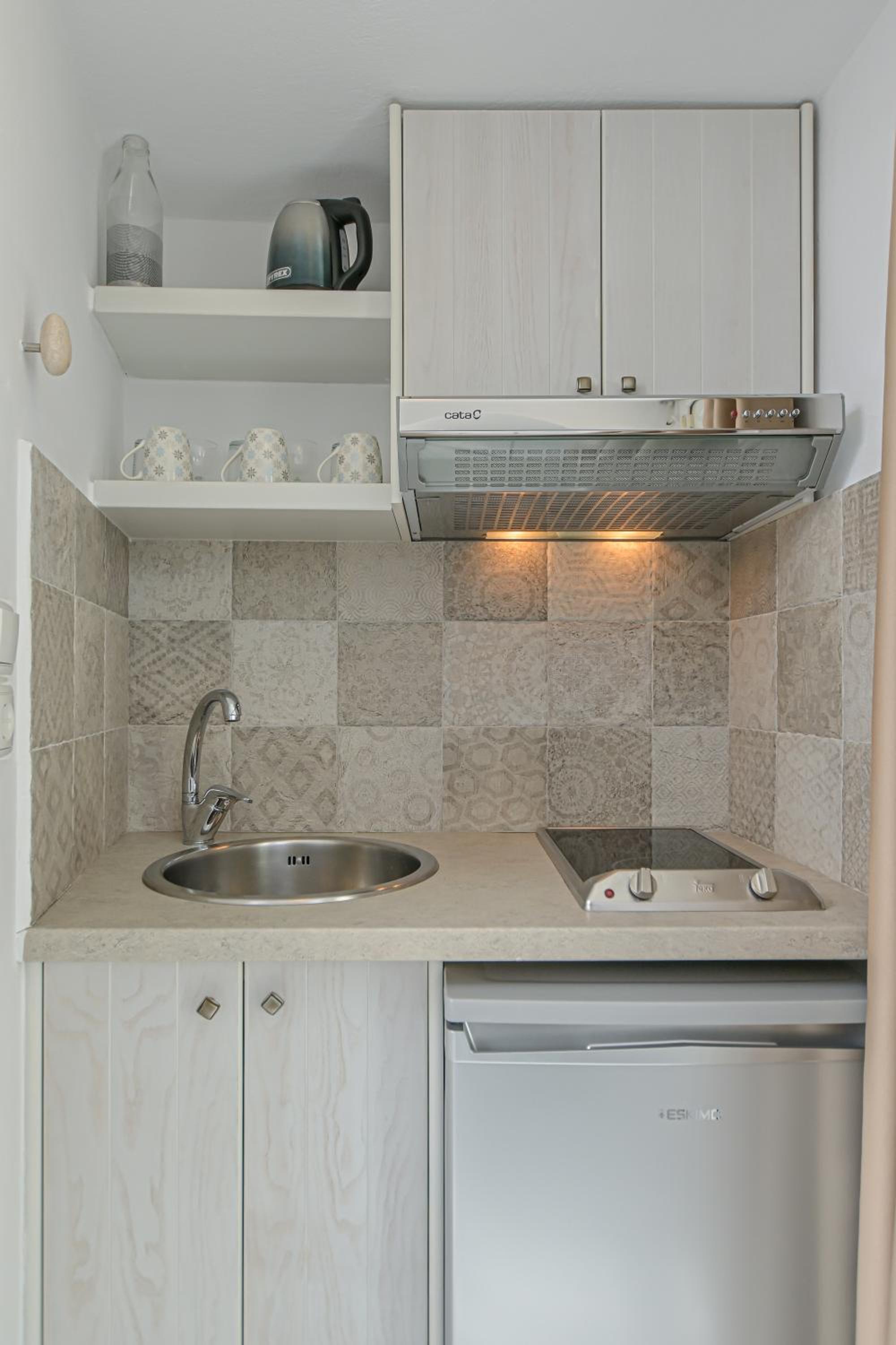 Sofi, Rena and her husband are all so lovely and cannot do enough for you. Their car hire service is cheap and absolutely hassle free. There is a kettle and Nespresso machine in the spacious room and we really enjoyed the complimentary breakfast each morning. It is in a great location, 7 minute walk to port and bus station and 5 minutes up the steps to the Old Town. I cannot fault them and would thoroughly recommend. We stayed in their new block which is attached - Castellum Suites.