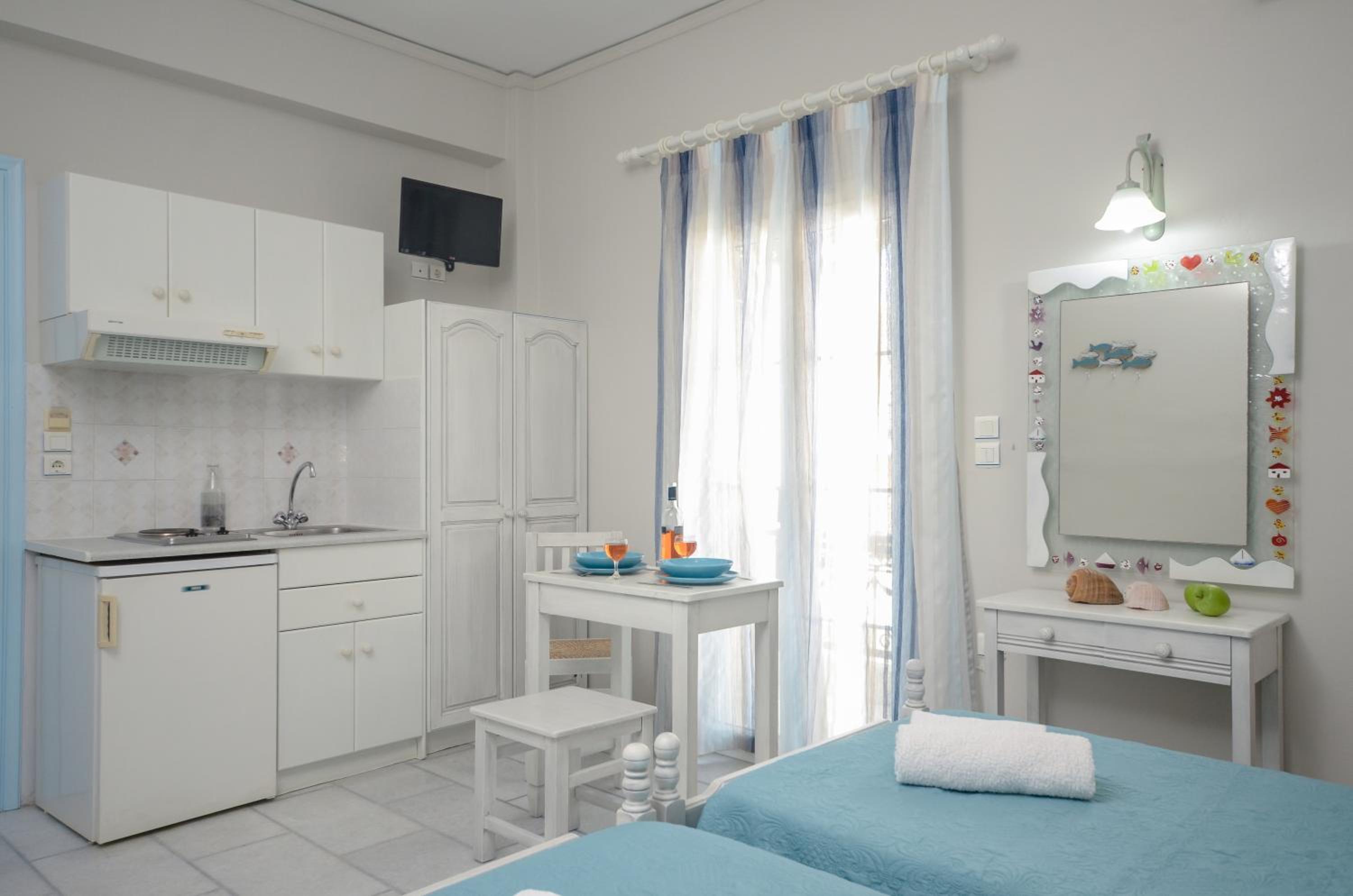 We were collected at the port and taken to our accommodation by Theodore with a wonderful commentary along the way. Once we arrived he helped us in with our bags and we met his wife Rena. She welcomed us with a cool refreshment and checked us in. We stayed for two nights. Both mornings we were given a delightful breakfast to eat on our balcony. It's a family run business so everyone is invested in making your stay the best experience possible. They were very helpful with information regarding restaurants and sights to see. We were less than a ten minute walk to restaurants and shops. The room was very clean and tastefully decorated. We loved our stay and would highly recommend!