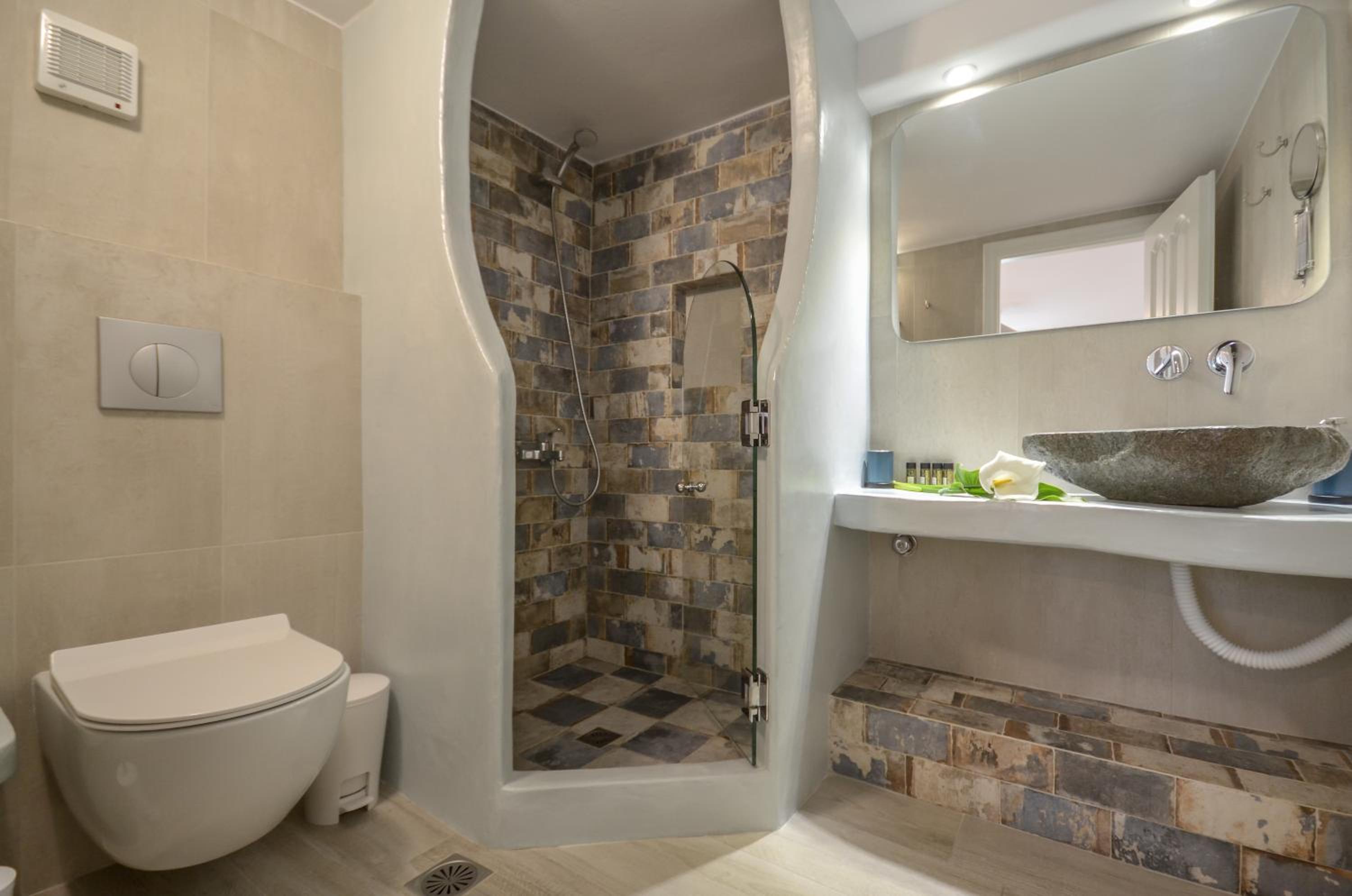 beautiful rooms, bathroom with great hot water, nice balcony, and staff was very attentive and gave us personal attention. also free pick up and drop off from ferry and airport which is a huge time saver . nice light breakfast was served. rooms were on the smaller side. overall a great value