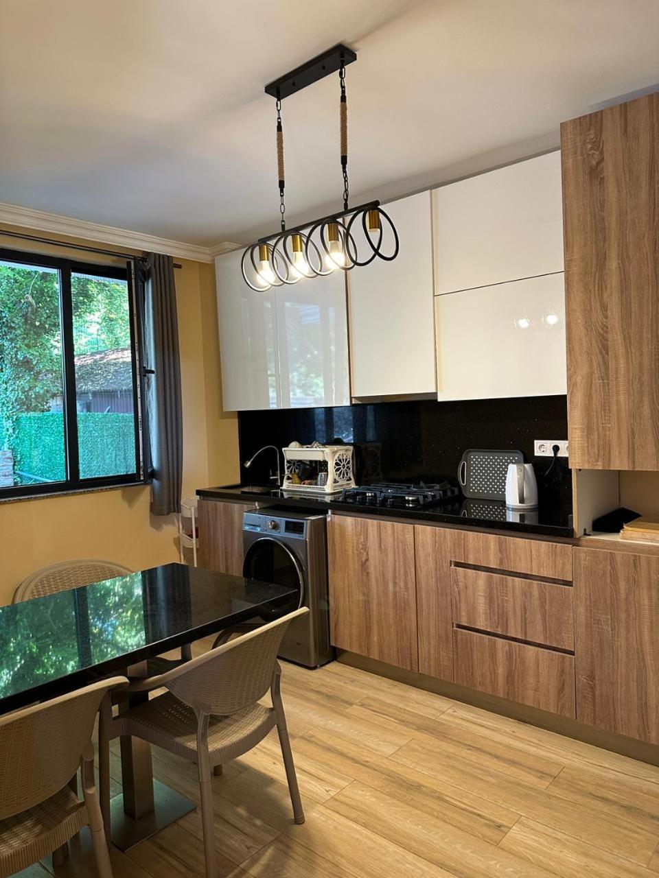 Нет ни одной розетки в кухонной зоне, приходилось подключать чайник в другой комнате. Большая кухня, но нет микроволновой печи, трудно что-то подогреть(