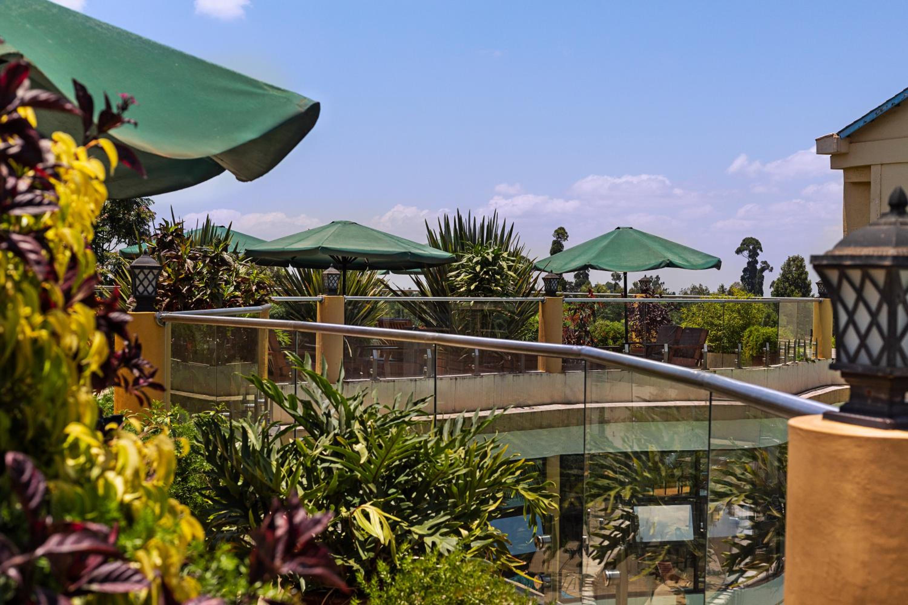 Das Management könnte viel mehr aus dem Hotel machen. Es gibt im 5. Stock des Gebäudes mit der Rezeption ein Roof Top, das leider nicht als Lokal in Betrieb ist. Dort hätte man eine fantastiache Sicht auf den Mount Kenya, wenn dann die nahen Bäume etwas gestutzt wären.