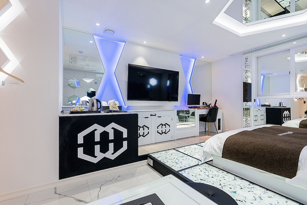 2층과 3층의 방 들어가는 방법이 달라요. 2층은 무인텔형식이라 개인차고가 있고 차고의 계단을 통해서 들어가고, 3층은 플론트 데스크가 3층에 있어서 프론트의 안내를 받고 복도를 사이에 둔 방들에 들어가는 식이에요. 프라이버시를 생각한다면 2층이 좋겠지만 가족끼리 또는 출장으로 가신다면 3층으로 예약하세요. 특히 2층은 방이 좀 화려하고 정신이 없는 편이에요. 가족끼리는 비추입니다.