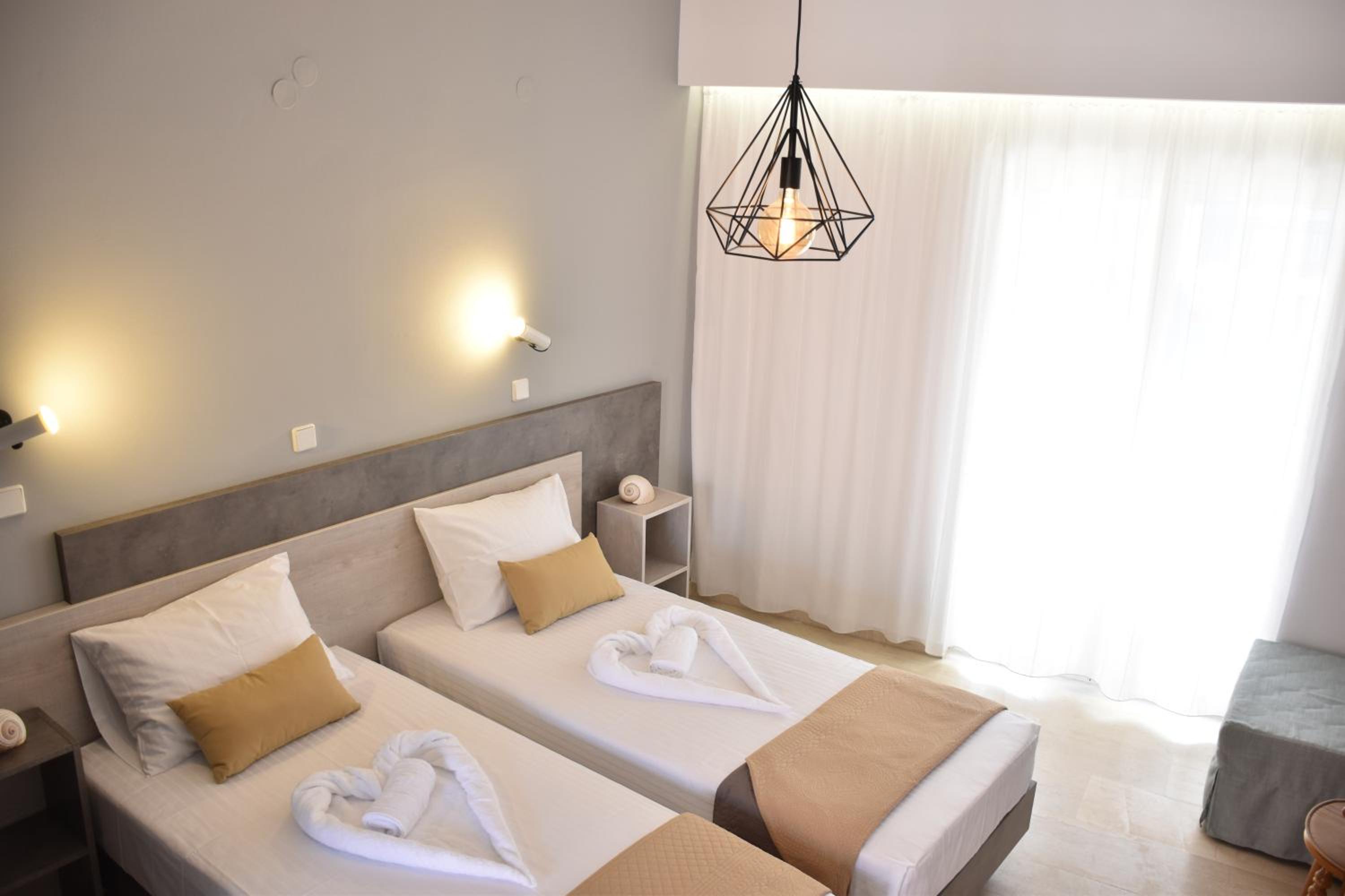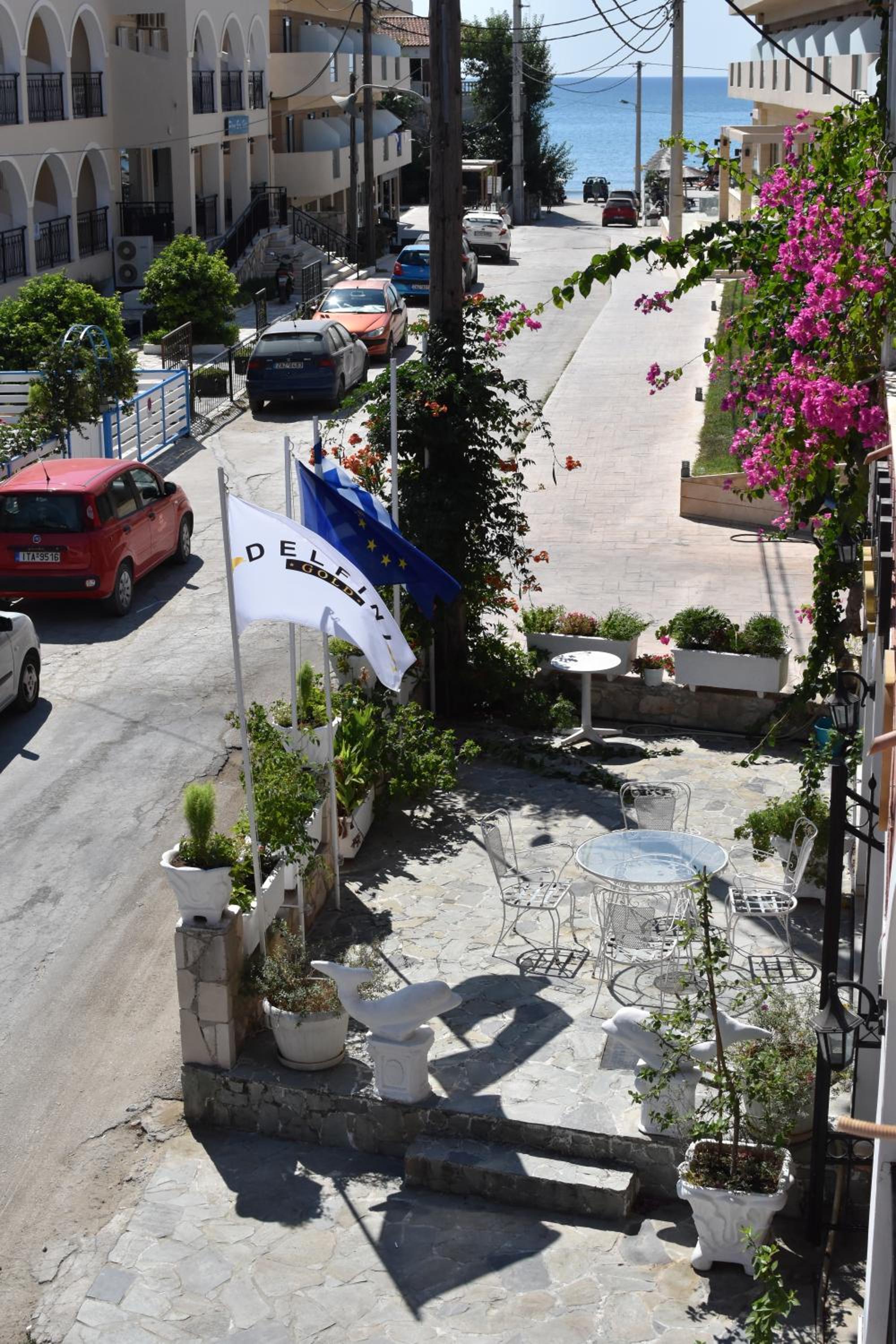 When I walked in it was so beautiful, the architecture was very authentic and Greek with a statue of Athena, flowers, and a nice courtyard. The room was very well put together with everything you needed. Nicely sealed, mosquito proof, with solid locked patio doors that open up to a spacious balcony. The room and bed was fresh and clean. Nice artwork of Navagio beach on the wall. Fair & affordable pricing for the room. The location of the hotel was perfect as it was close enough to the main strip in Laganas to walk and eat or party somewhere nice at night but not too close to be disturbed by the crazy crowds or drunks. In the morning you could walk right down to the beach and eat a nice breakfast overlooking the bay. There was also a conveniently located tour boat company next door that you could sleep in and walk right outside to be picked up early in the morning and taken to the boat tours of the island and sea turtles. The staff were incredibly welcoming. They were always there to assist even into the night hours you could ring the bell. A man working there named Stratos provided 5 star exceptional service. He was one of the best hotel hosts I’ve had in my life. He went above and beyond to continuously check in with me and recommended all the best places to visit and eat on the island. He is a guy who clearly loves people, is full of life, and takes pride in assuring you have a wonderful experience/stay on his home island.
