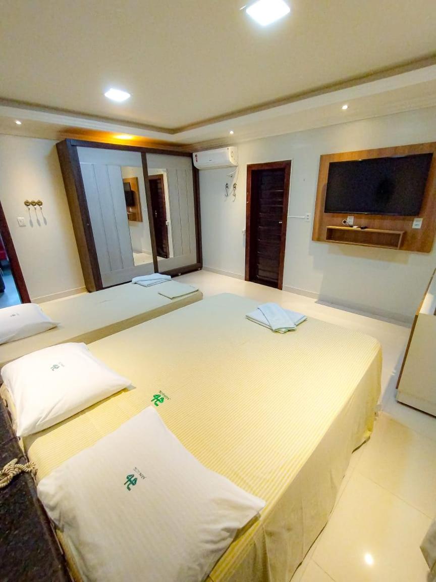 Localização, quarto espaçoso, Wi-Fi e café da manhã com tapioca feita na hora, além de um restaurante para almoço e jantar.