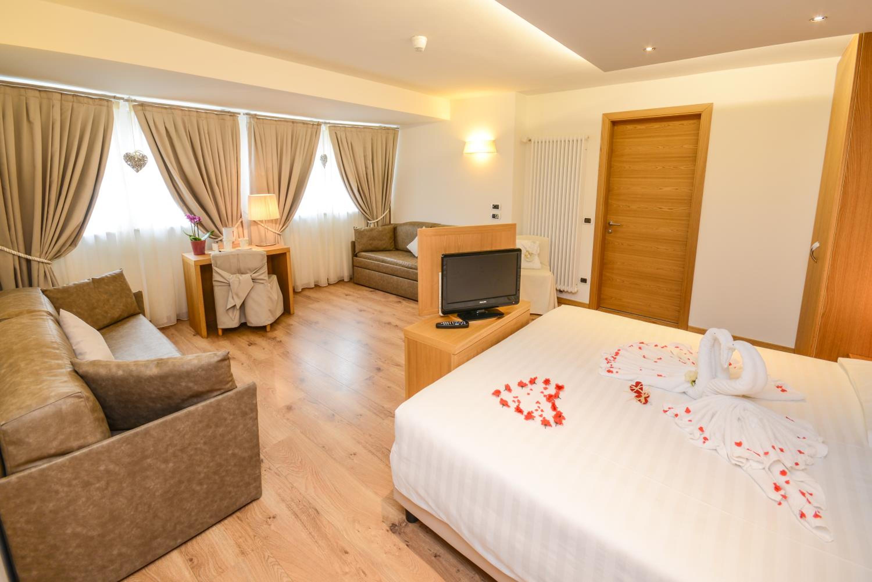 Great breakfast with nice variety. Good location and easy to walk around Pinzolo! Very helpful staff with information for ski/apres/restaurants etc. Free parking right in front made using the car to get around very easy.