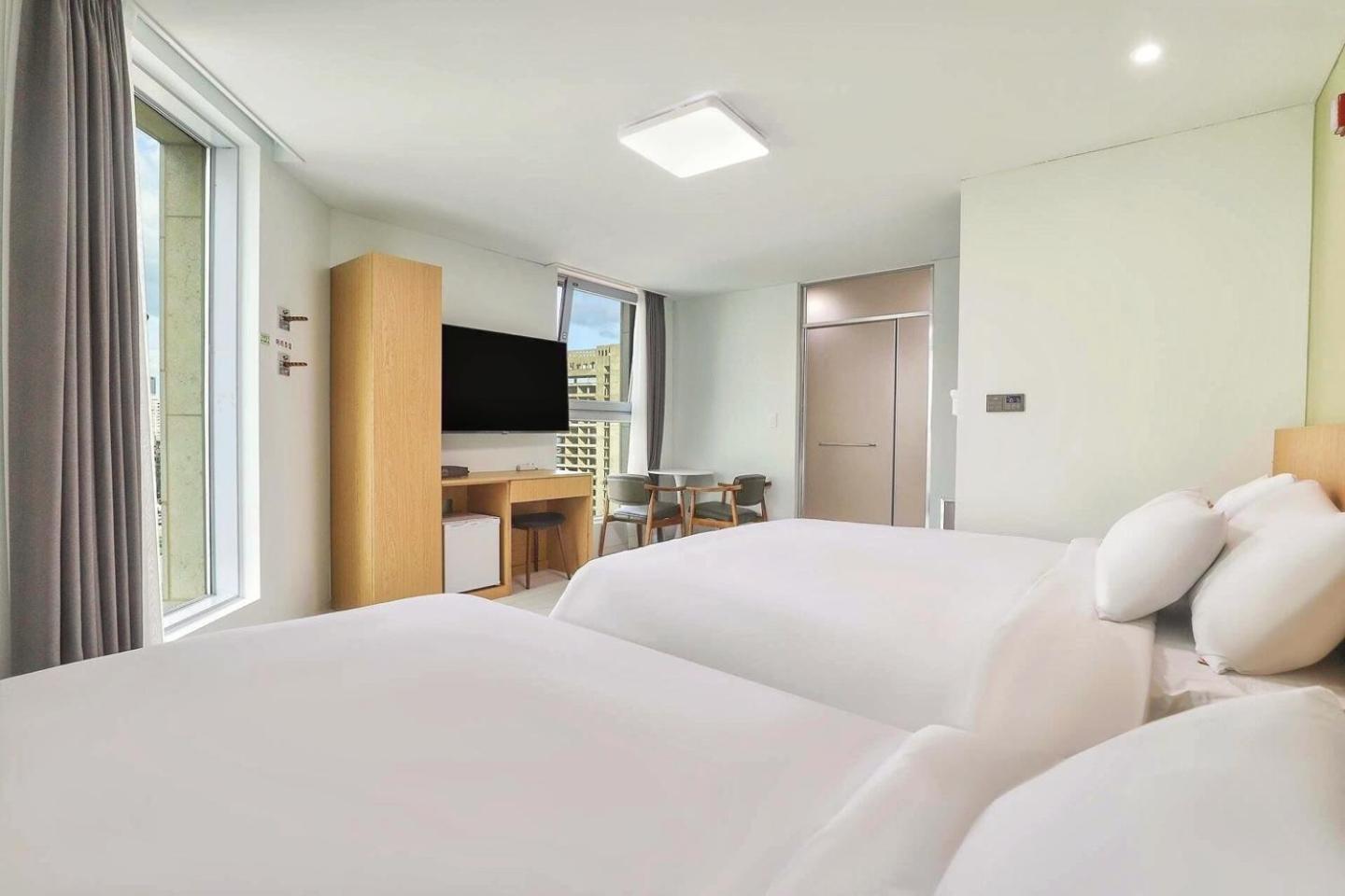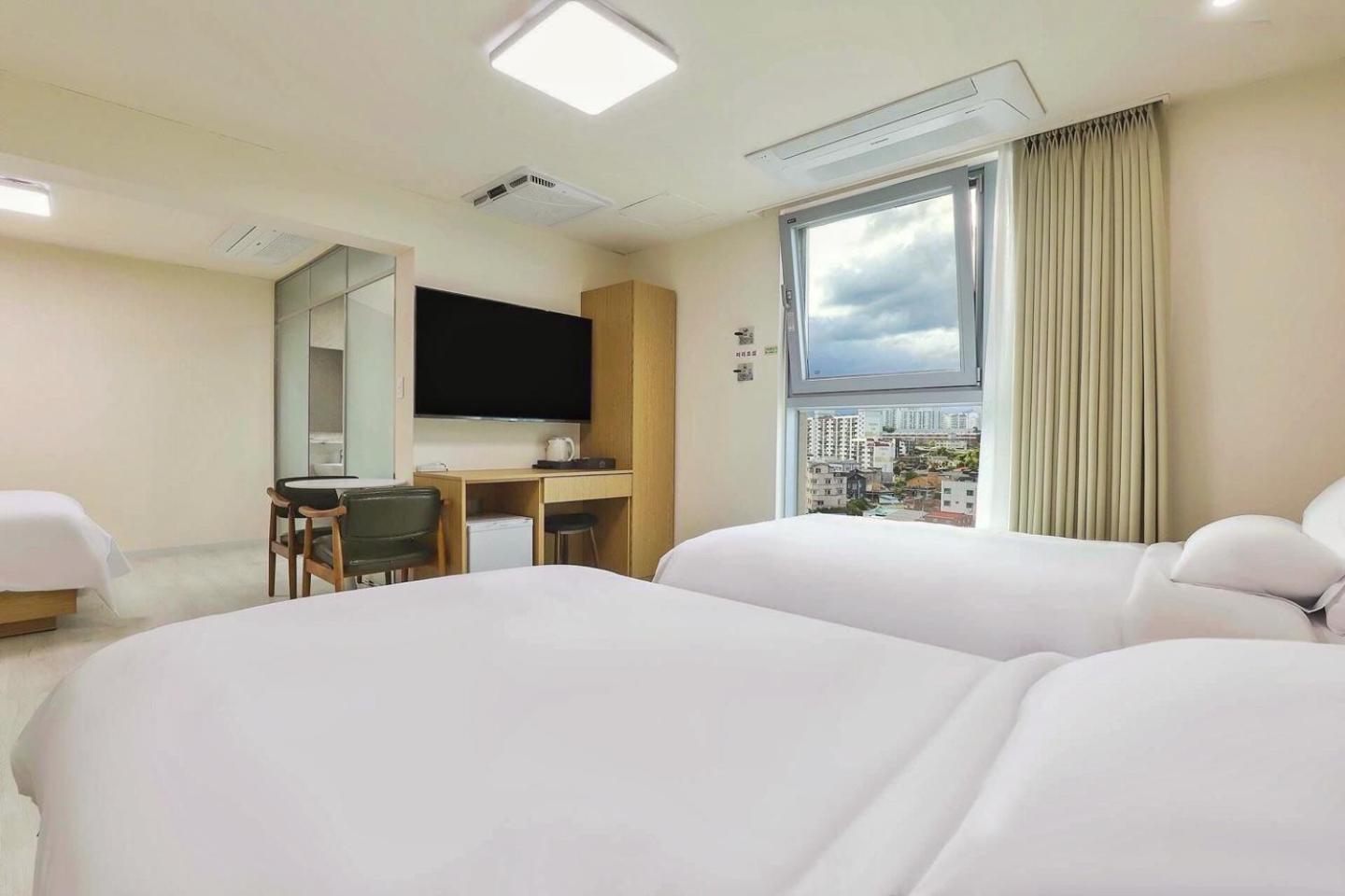 숙소가 청결하다 화장실도 욕조도 아주 깨끗하게 청소되어 있었고 온천수인지 확인은 안했지만 물이 좋아 피부도 부들부들...침구도 쾌적..조식이 월욜휴무라 일욜 하루 이용했는데..구운 계란 토스트 시리얼 주스우유 모두 간단히 부담없이 이용할 수 있었고 커피가 진하지않고 엄청 부드러운 맛이라 개인적으로 좋았다 걷는거리 15분내외에 맛집 중앙시장 있어서 본의아니게 운동도 되었다 재방문의사있음