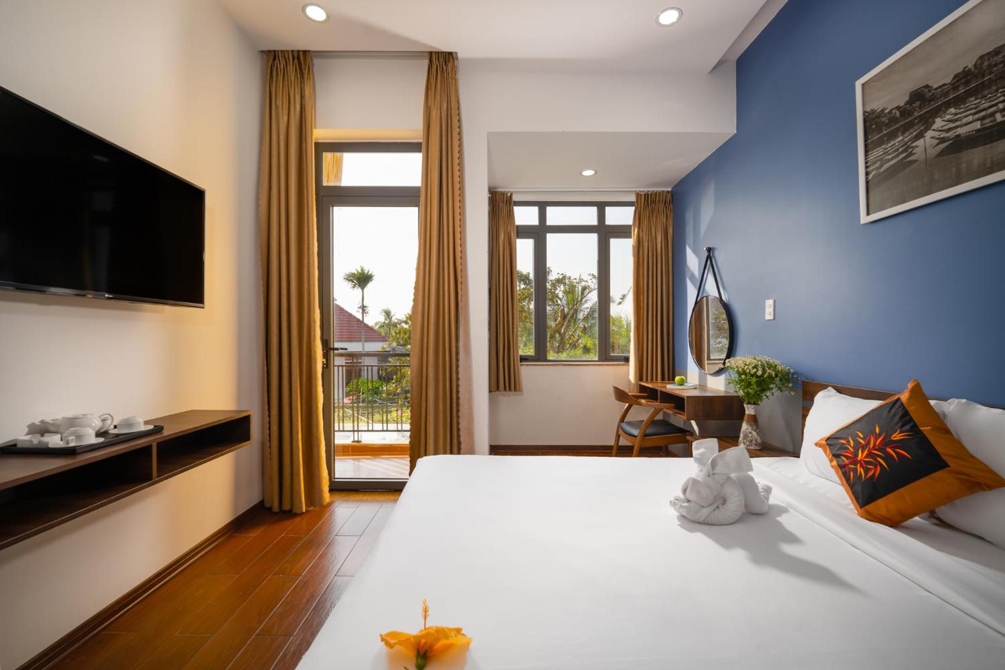 We were warmly welcomed by the staff on arrival. They had already kindly organised our transport from Da Nang to Hoi An. We explained we wanted to go to a tailor, which they organised, and sent us to a very good local tailor. They also spent time with us looking at tours. The Hoi An Memories show was fantastic! And we chose to go on a day trip tour to Chan island for sightseeing, snorkling & swimming. The swimming pool was lovely and clean. They even came and asked us if we needed drinks whilst at the pool. (First ones to ask whilst on our travels) Really lovely kind & caring staff. Thank you so much 😊