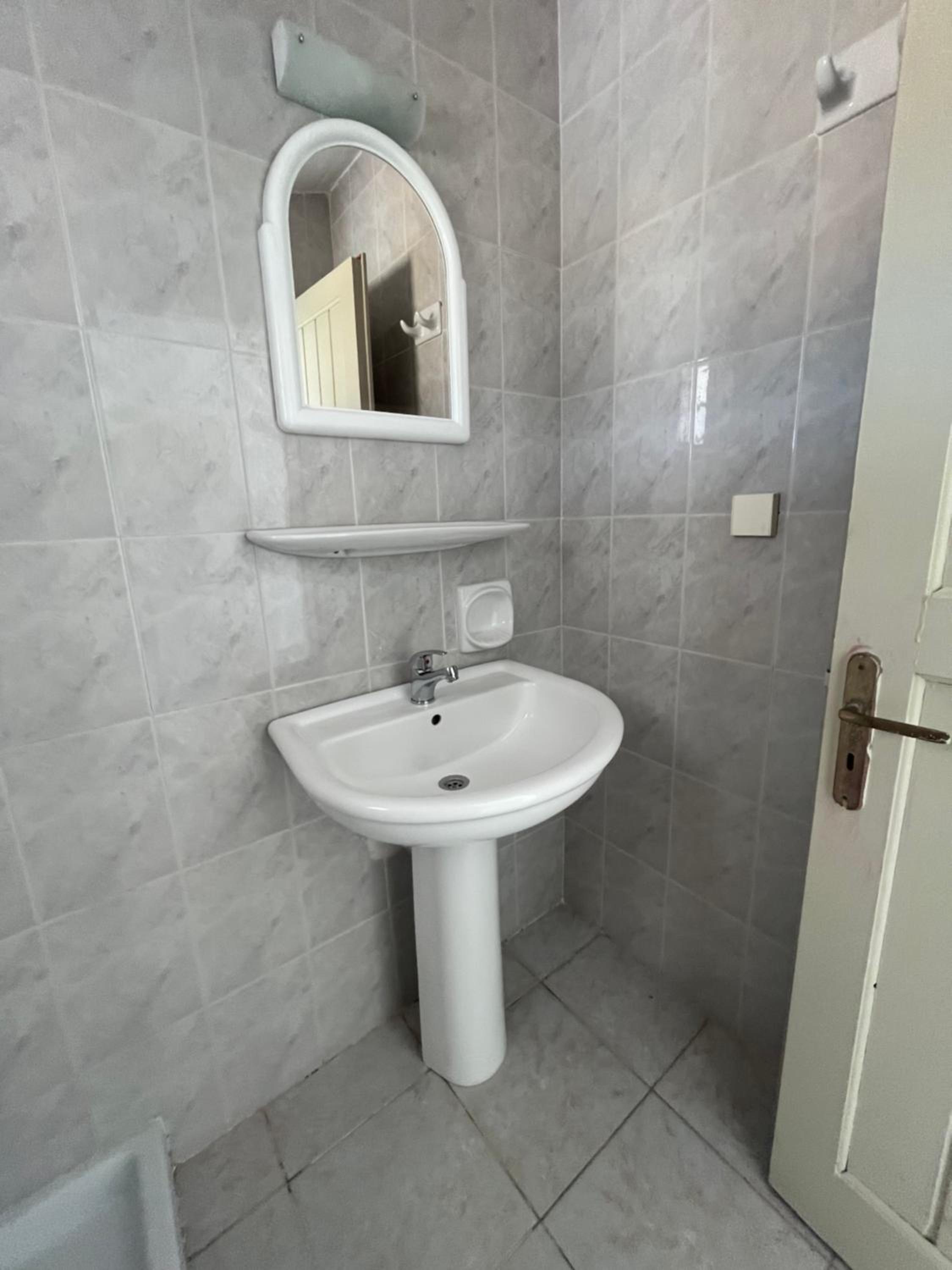 - Dusche keine Wände oder Vorhang, nur Duschwanne -> beim Duschen kamm der Schaum aus dem Duschabfluss in der Mitte des Bads wieder raus
