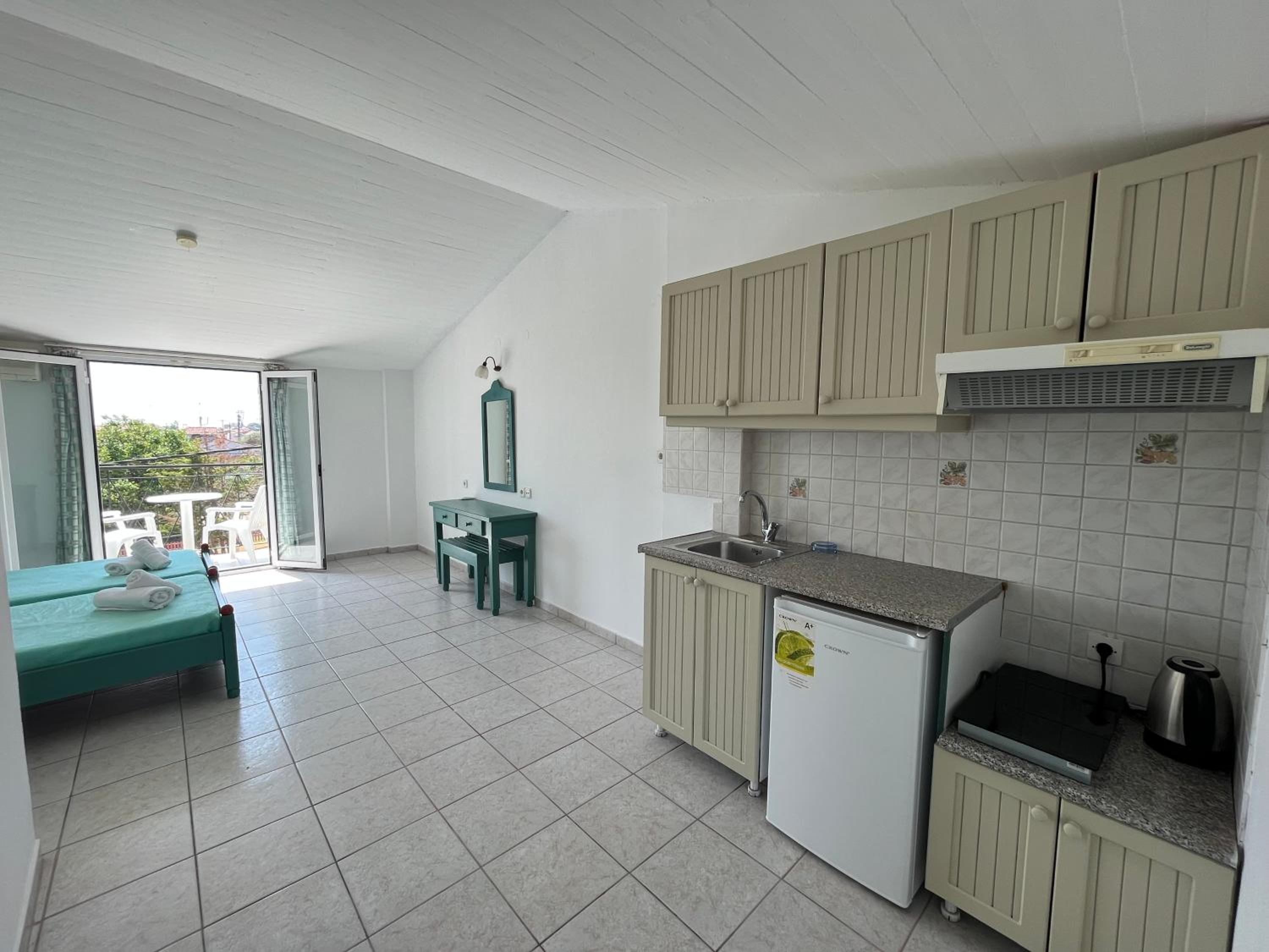 Guests can unwind at the snack bar or take a short stroll to Kavos Beach located only 300 meters away. The hotel also provides a desk and kettle in each room, ensuring a comfortable stay for all visitors.