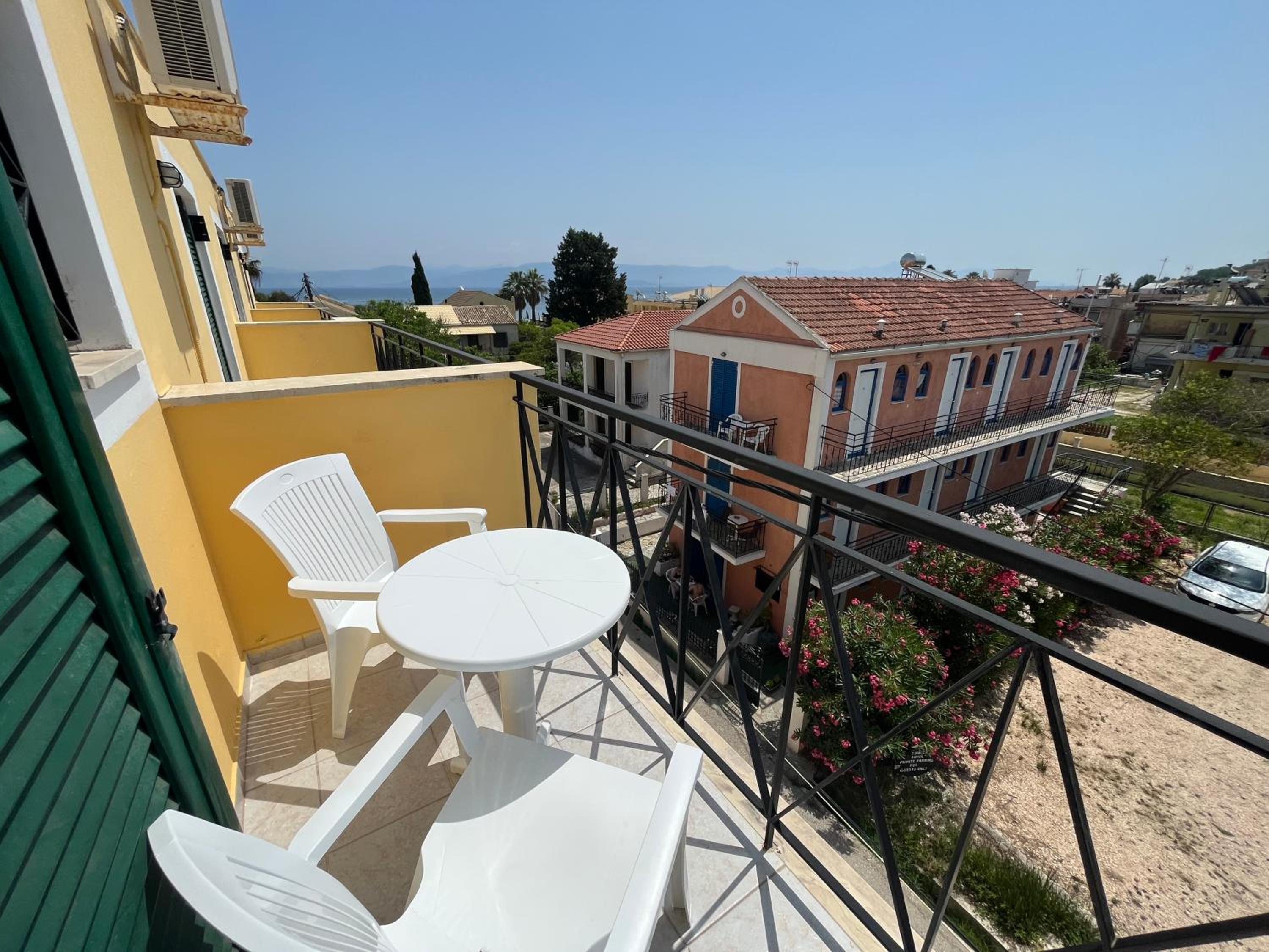 Nette Putzfrauen, Zimmer mit Balkon und seitlichem Blick zum Meer, relativ großes Zimmer, Bar 24/7 geöffnet und sauberer Pool, Parkplatz vor dem Haus, WiFi, zentral und alles fußläfig erreichbar