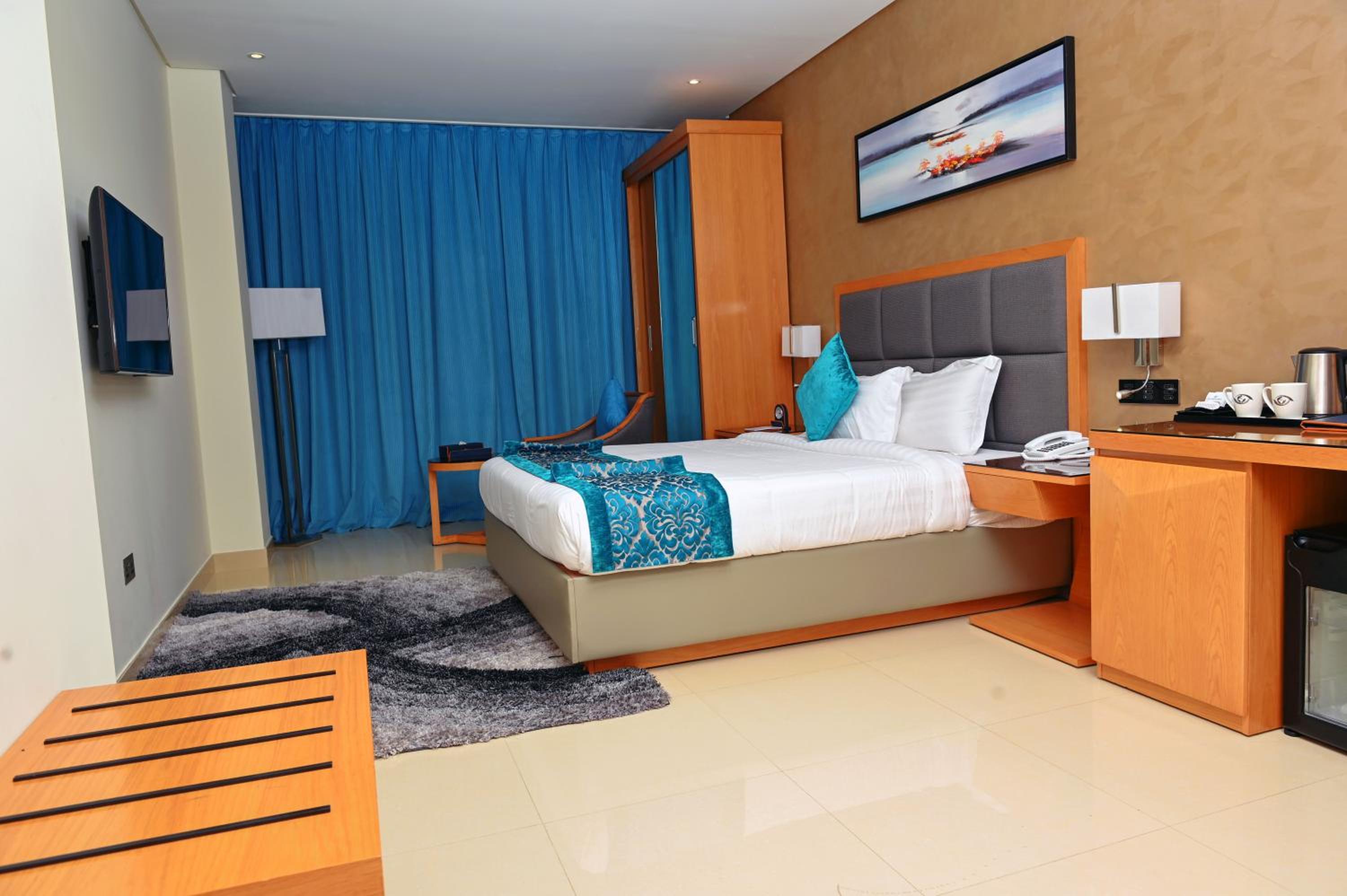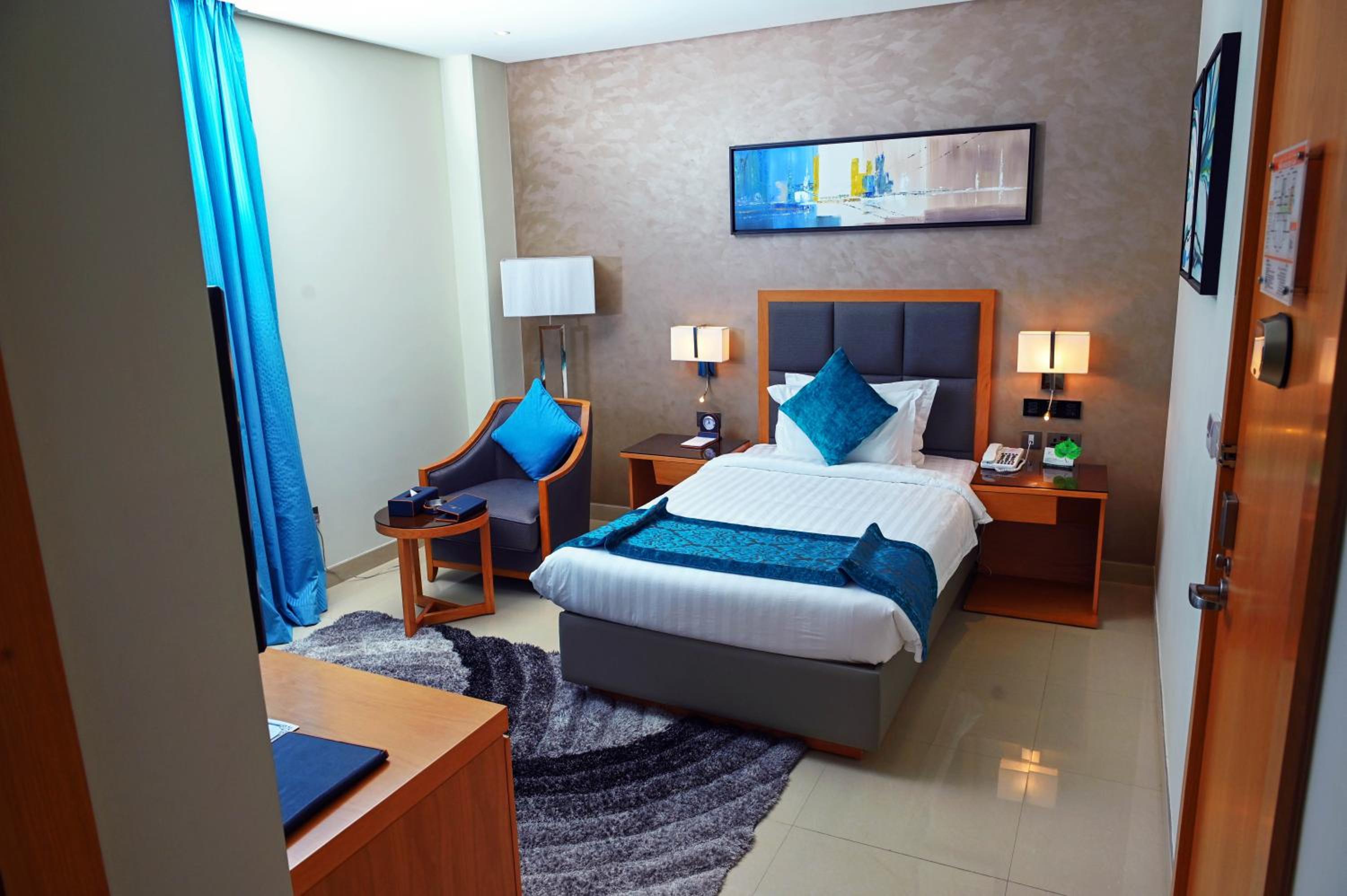 En vista de lo caros que son los hoteles en Manama, éste destaca por su relación calidad-precio (62 € la doble de uso individual) me dieron una habitación superior en un piso más alto ya que en los bajos hay una discoteca cuyo chunda chunda se escucha en casi todo el edificio. Aún en la sexta planta se puede oír. Tienen un transfer al aeropuerto por buen precio, 5 BHD, unos 12.50 €. Hay tiendas y restaurantes alrededor del hotel. A 35 minutos a pie del zoco y el Financial Harbour