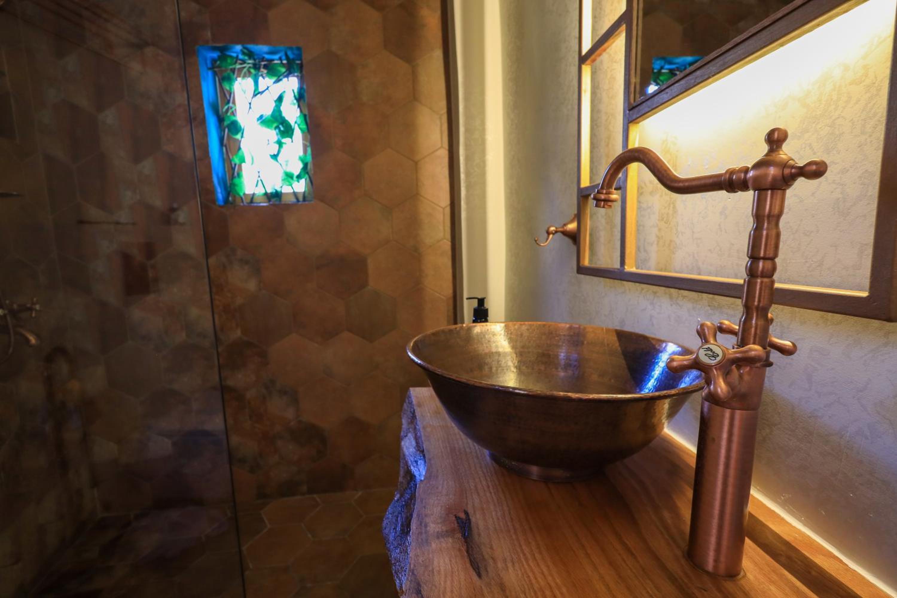 bathrooms are open on the room, not much pricavy if you are not alone
