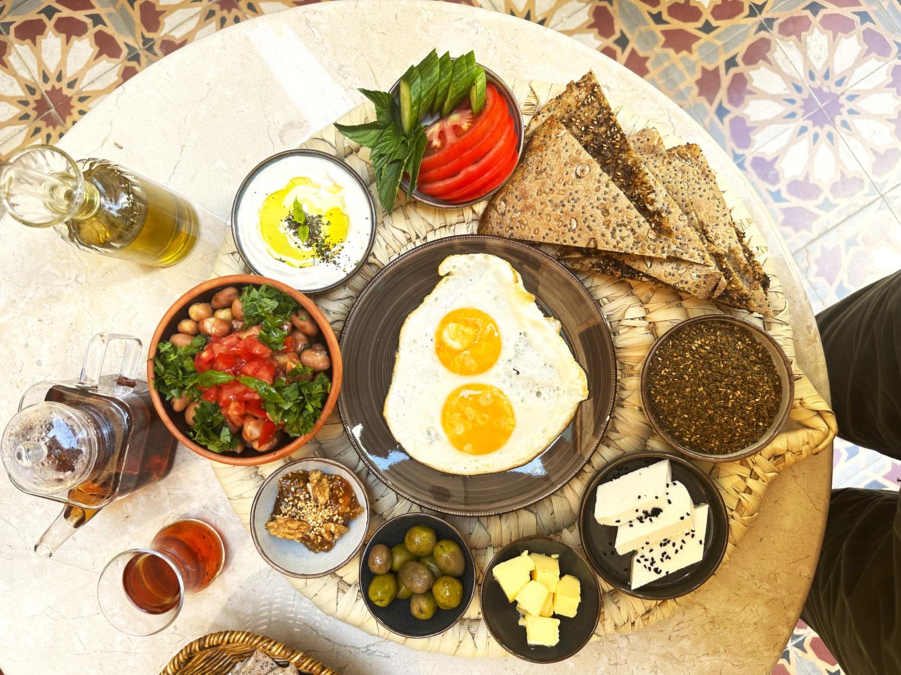 The breakfast is delicious and reflects the variety of Lebanese cuisine.