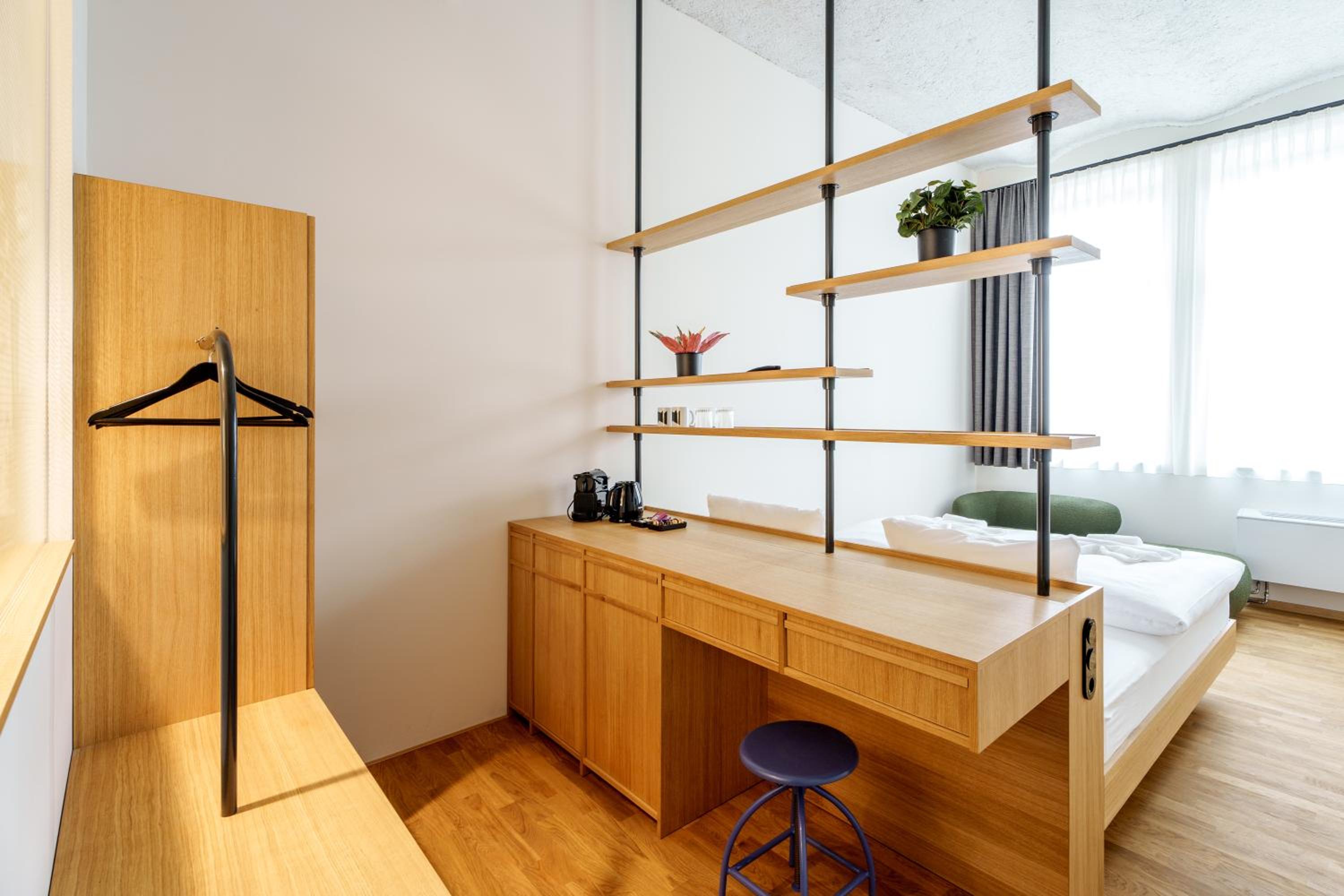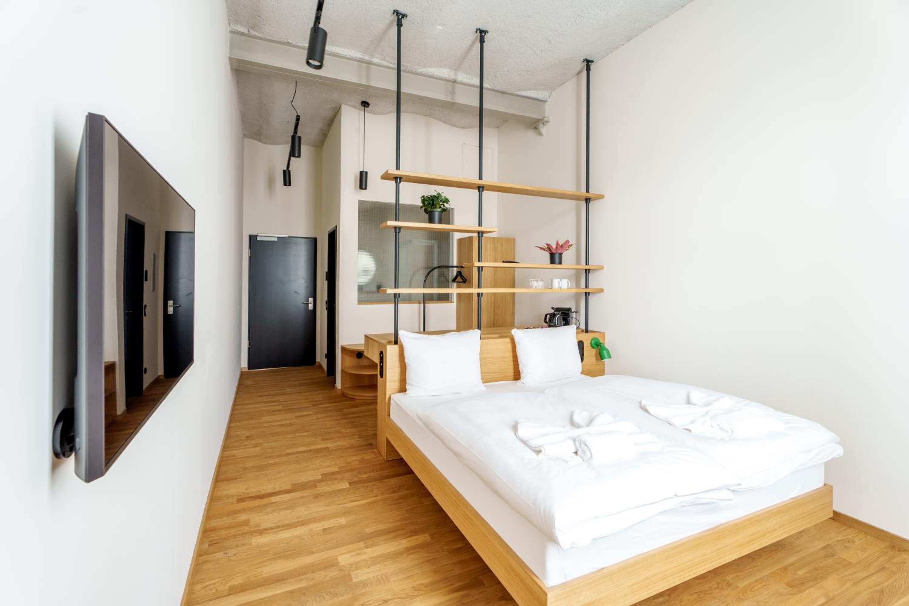Sehr interessante Unterkunft auch schon durch die von der Autobahn gut erreichbare Lage, der industrial Charme gefällt, Check in und out funktionieren problemlos, Parkplätze sind reichlich.