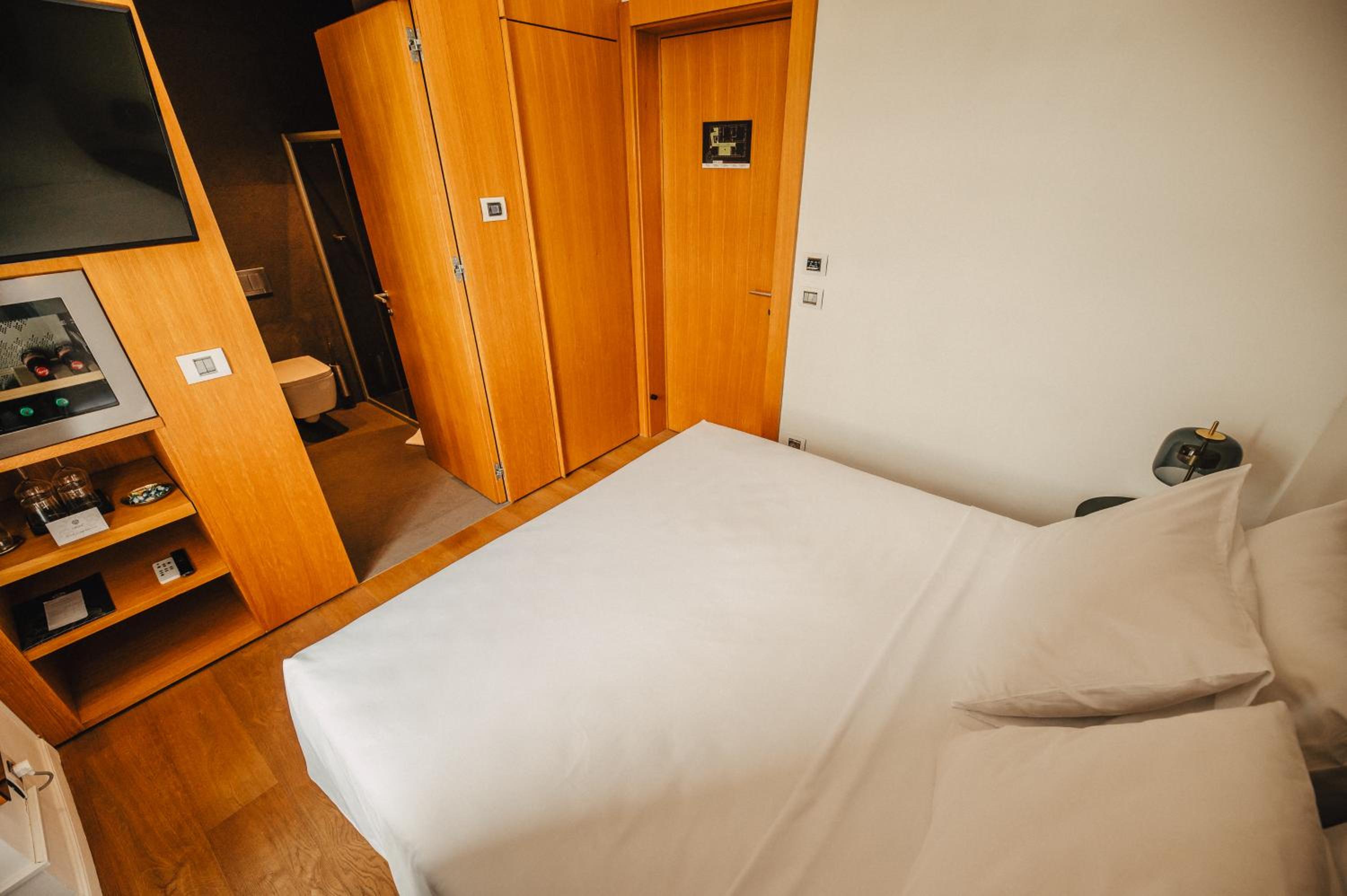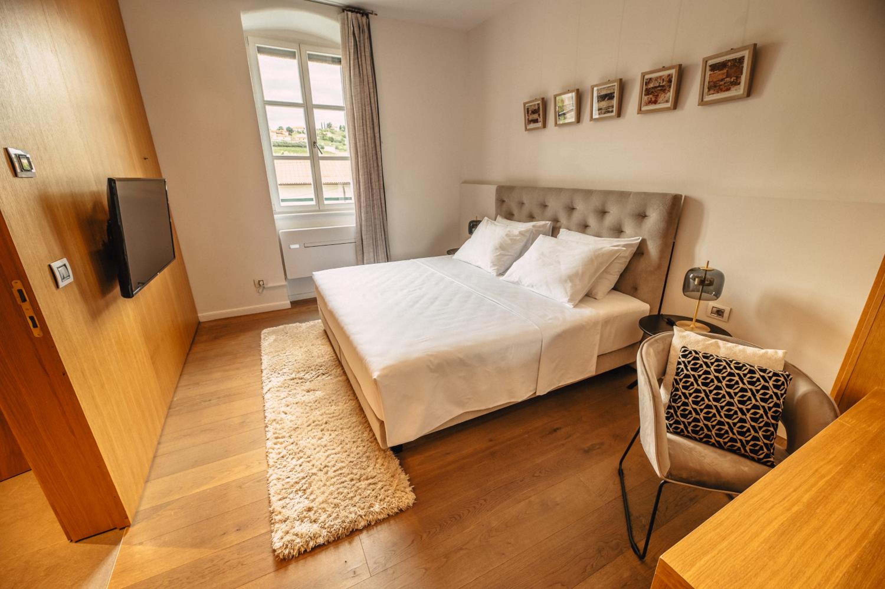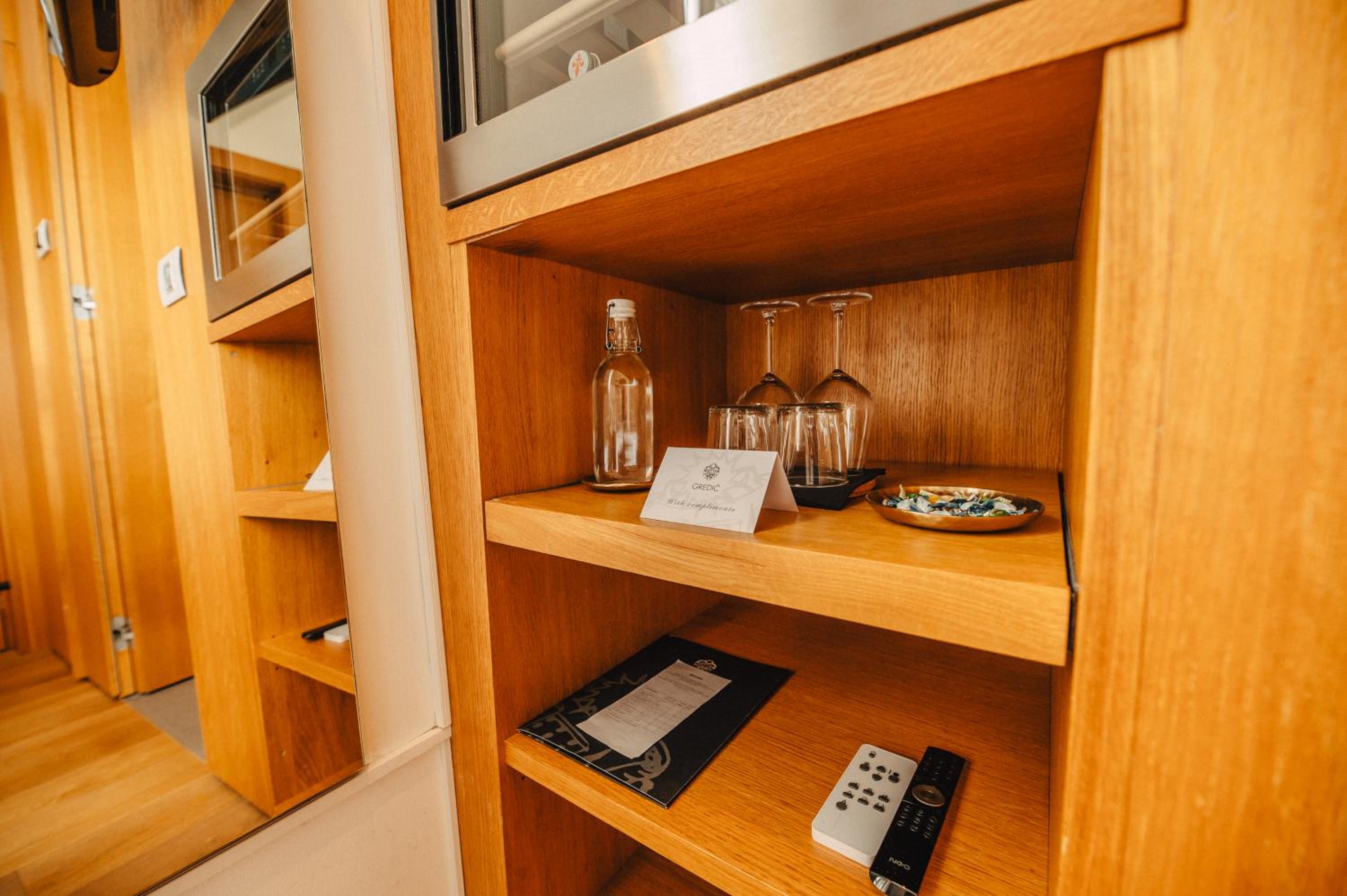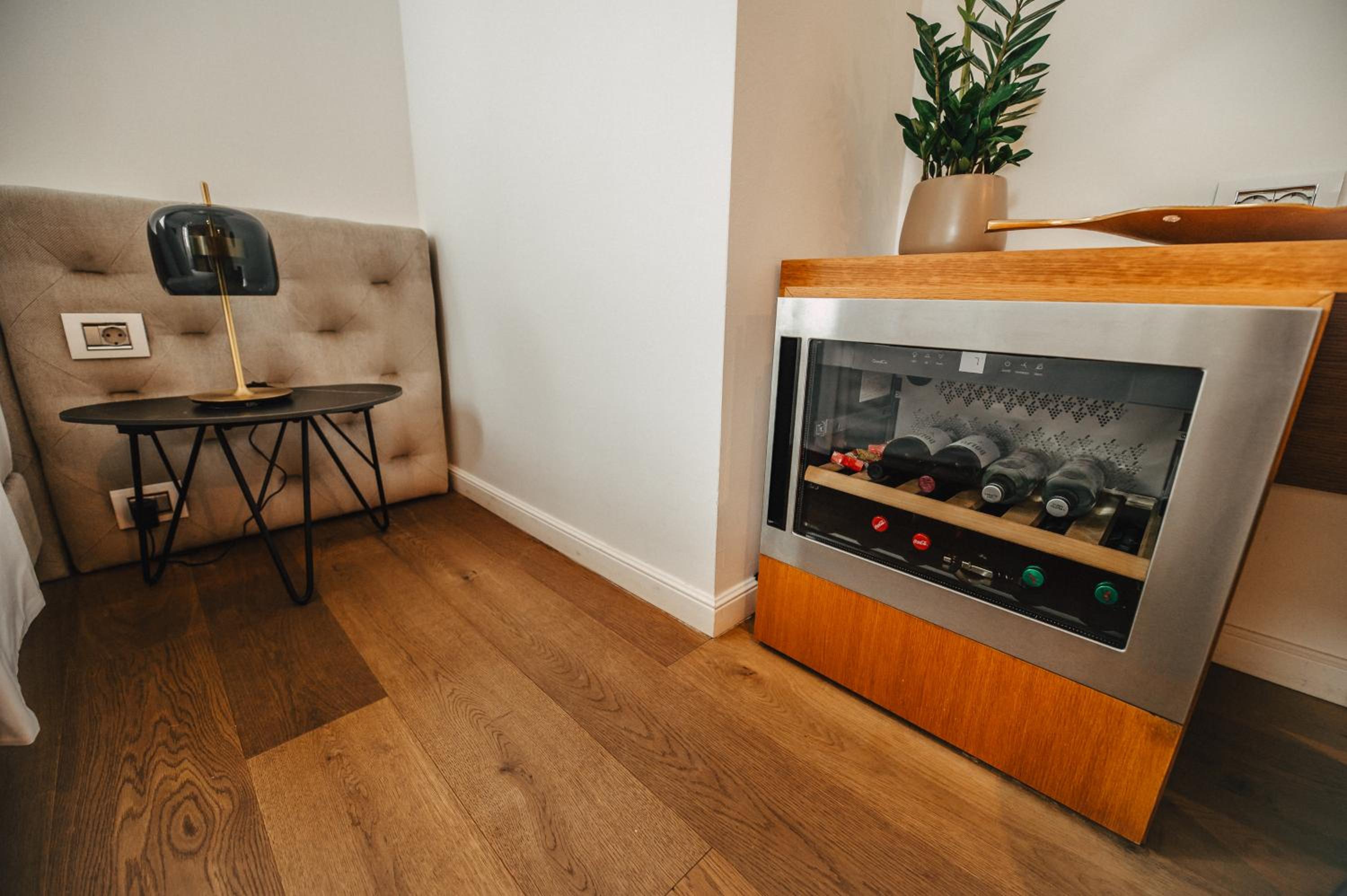 Each uniquely decorated unit at Hotel Gredič offers a blend of historic charm and contemporary comfort. From air conditioning to state-of-the-art audio and video systems, every detail is designed to enhance your stay. Indulge in the convenience of wine coolers and heated bathroom floors for a truly luxurious experience.