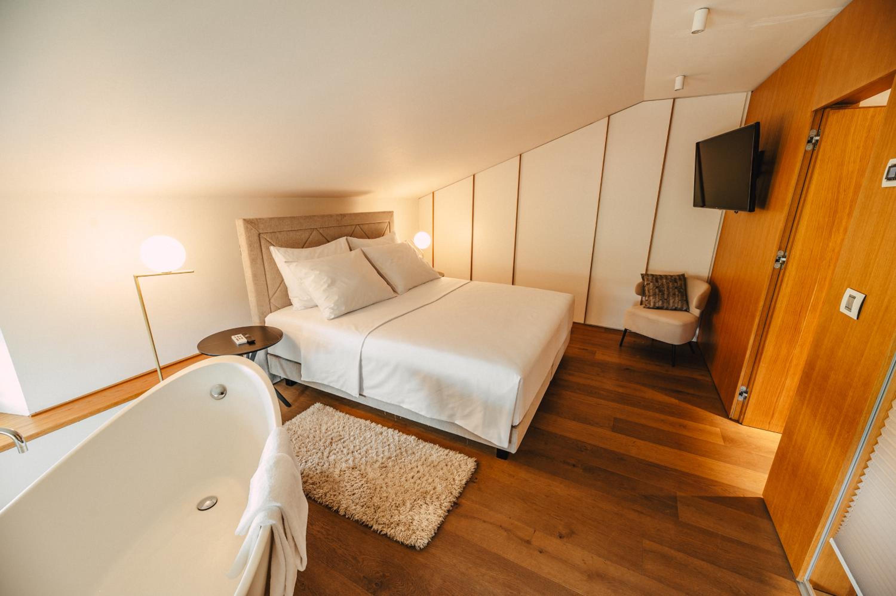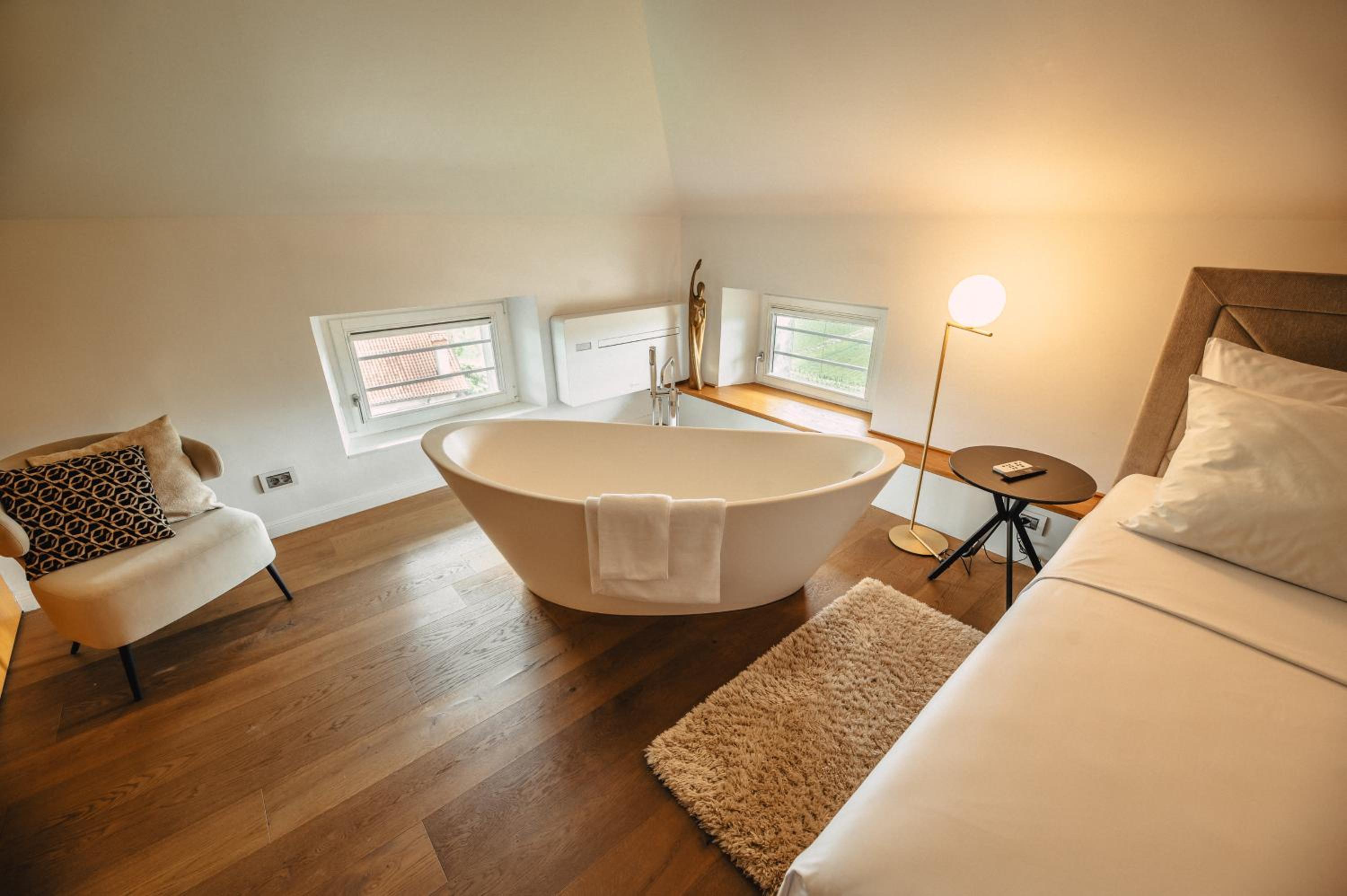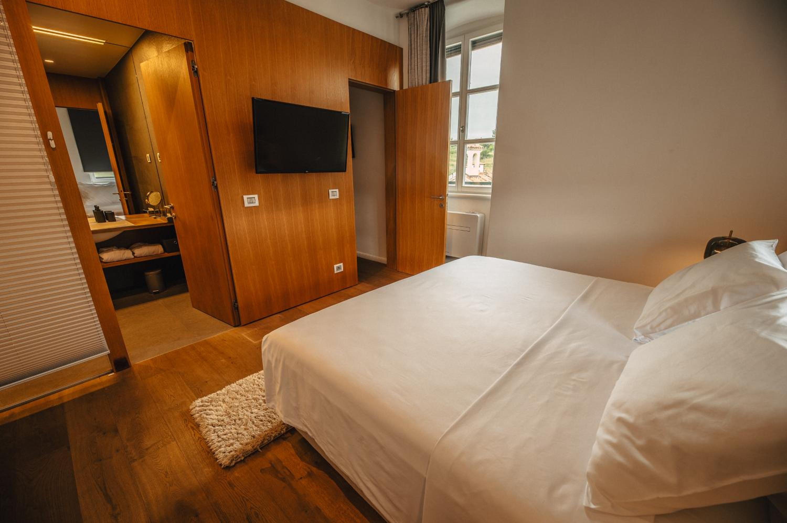 Each uniquely decorated unit at Hotel Gredič offers a blend of historic charm and contemporary comfort. From air conditioning to state-of-the-art audio and video systems, every detail is designed to enhance your stay. Indulge in the convenience of wine coolers and heated bathroom floors for a truly luxurious experience.