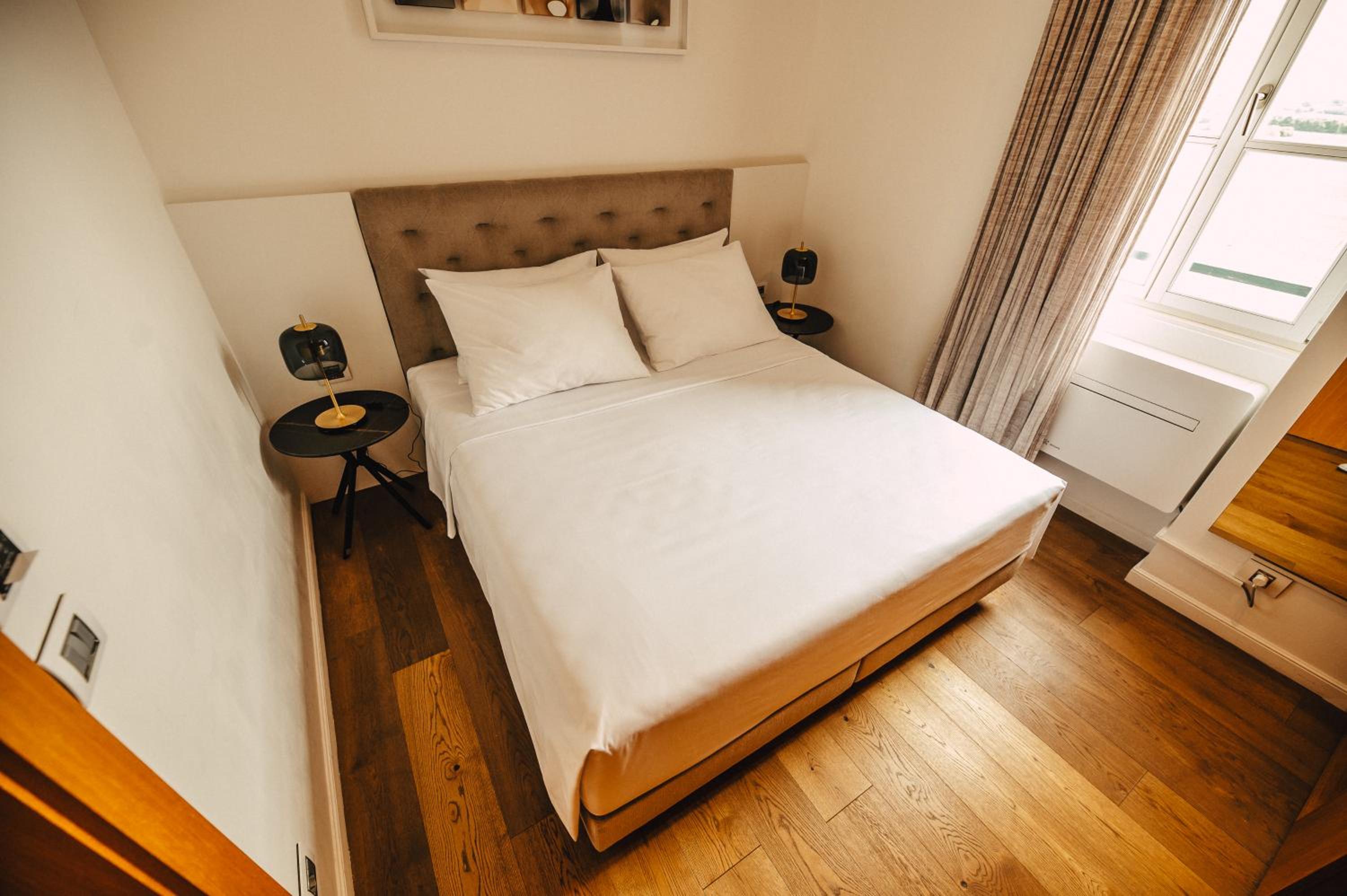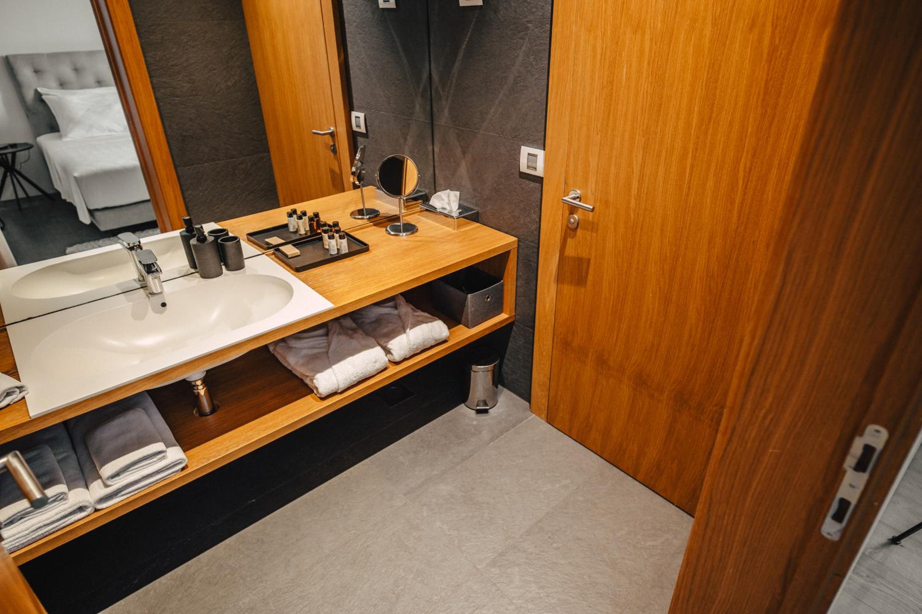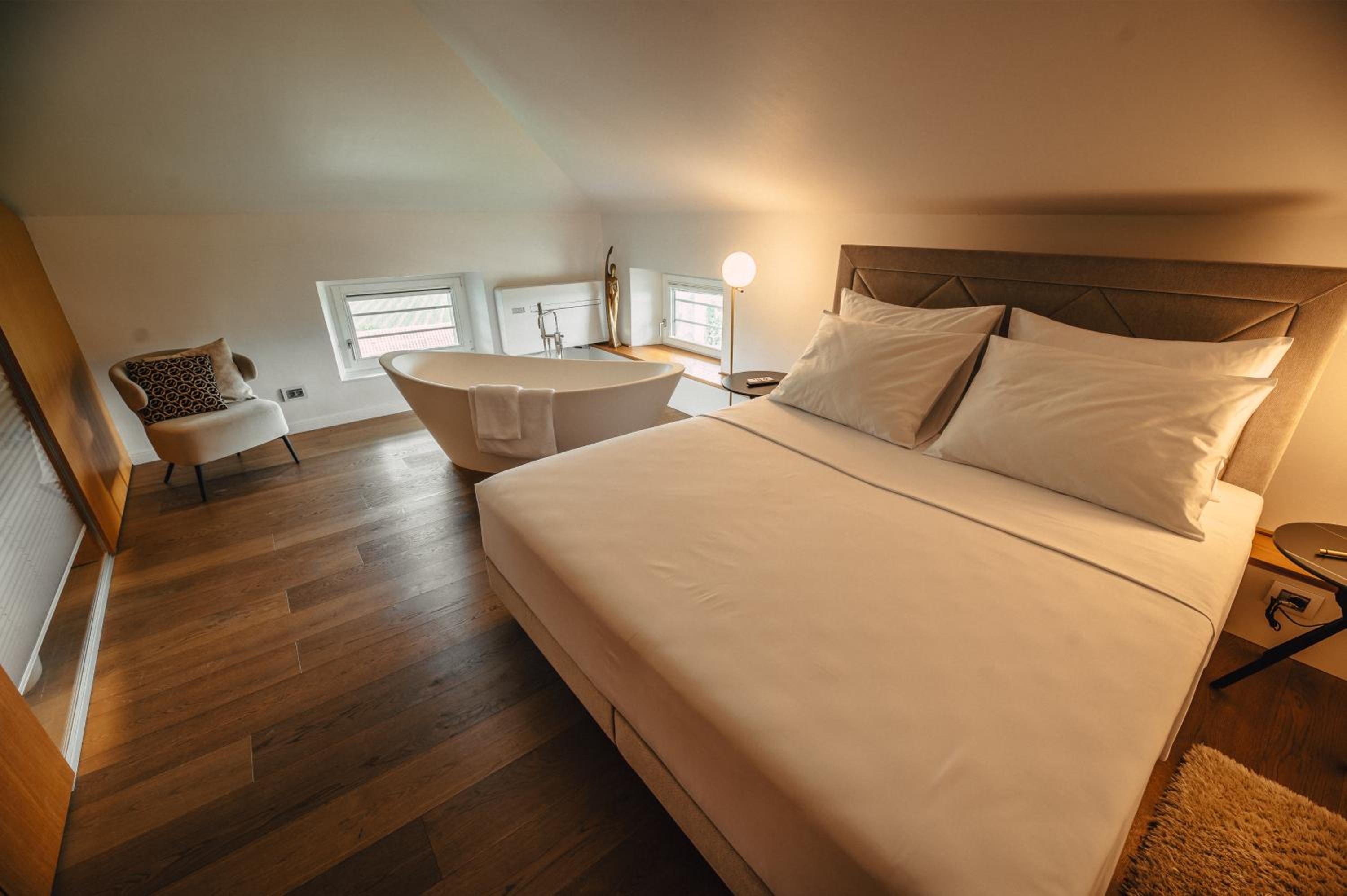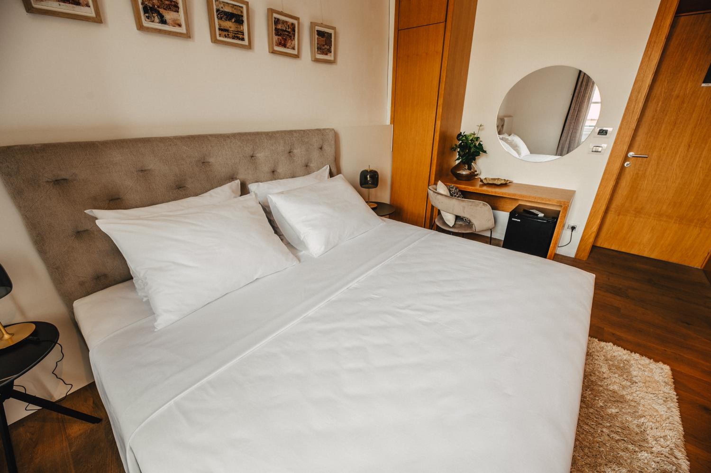 Each uniquely decorated unit at Hotel Gredič offers a blend of historic charm and contemporary comfort. From air conditioning to state-of-the-art audio and video systems, every detail is designed to enhance your stay. Indulge in the convenience of wine coolers and heated bathroom floors for a truly luxurious experience.