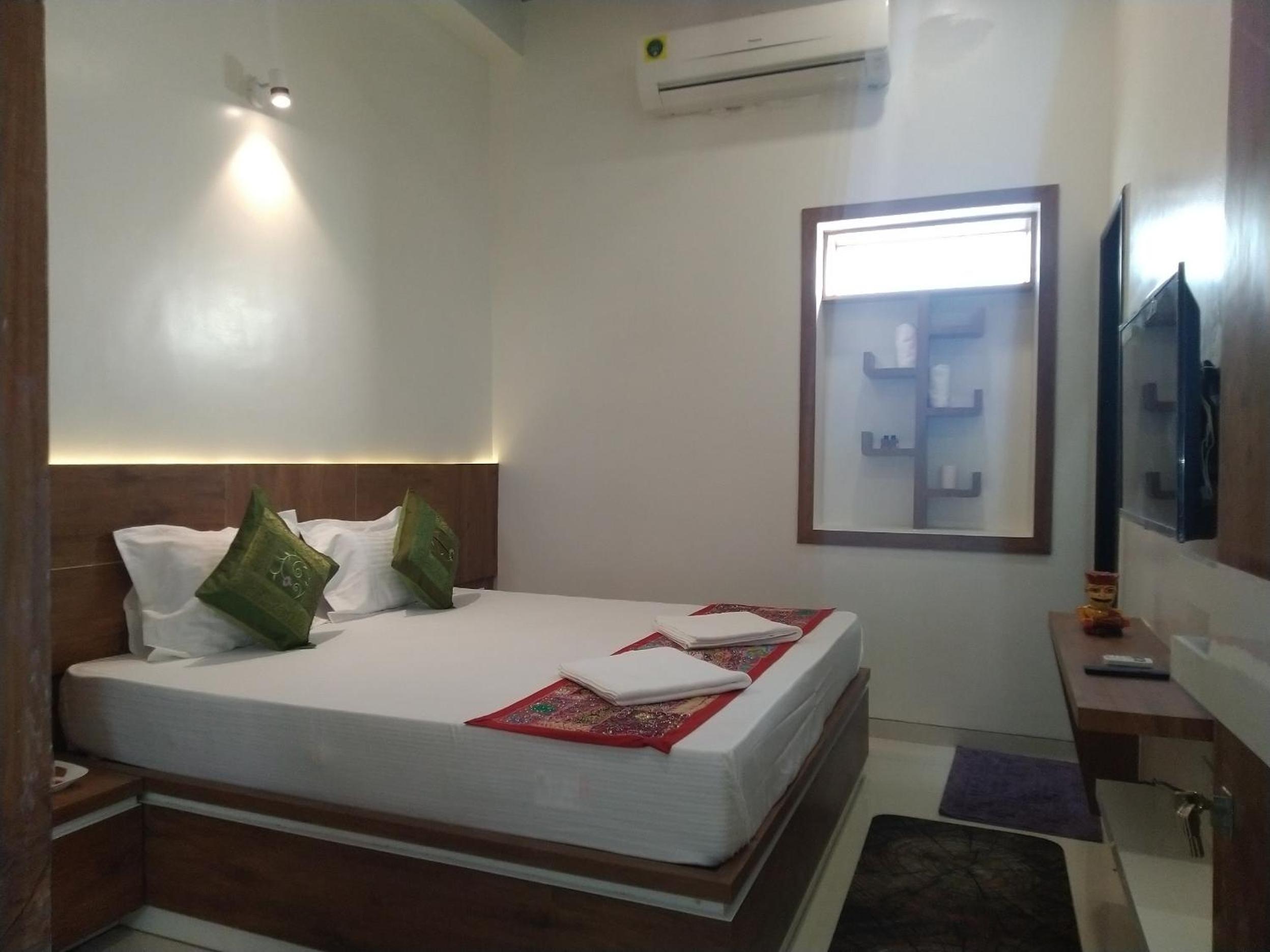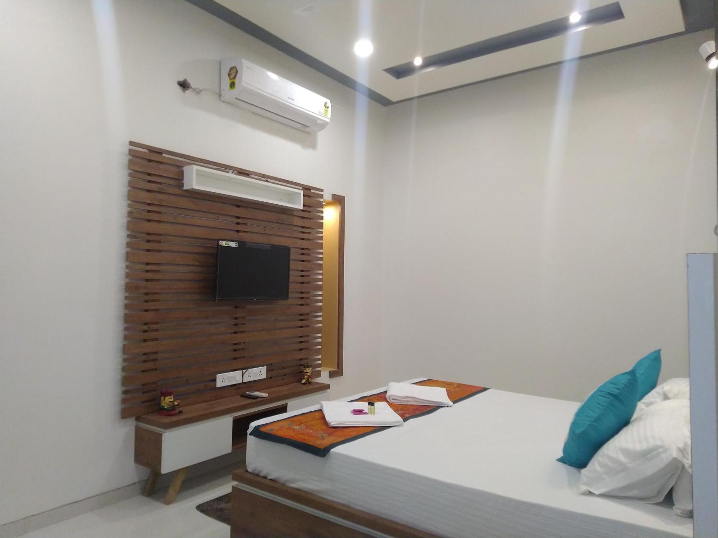 Modern amenities: Enjoy air-conditioned rooms with free WiFi, flat-screen TV, and private bathrooms at Aapni Haveli.