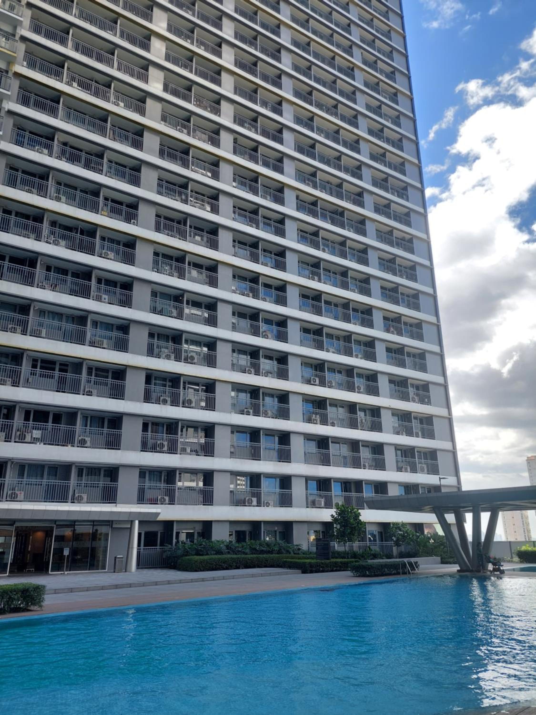 Enjoy stunning pool views from your balcony at FAME Bedroom, located near top shopping destinations like Shangri-La Plaza and SM Megamall.
