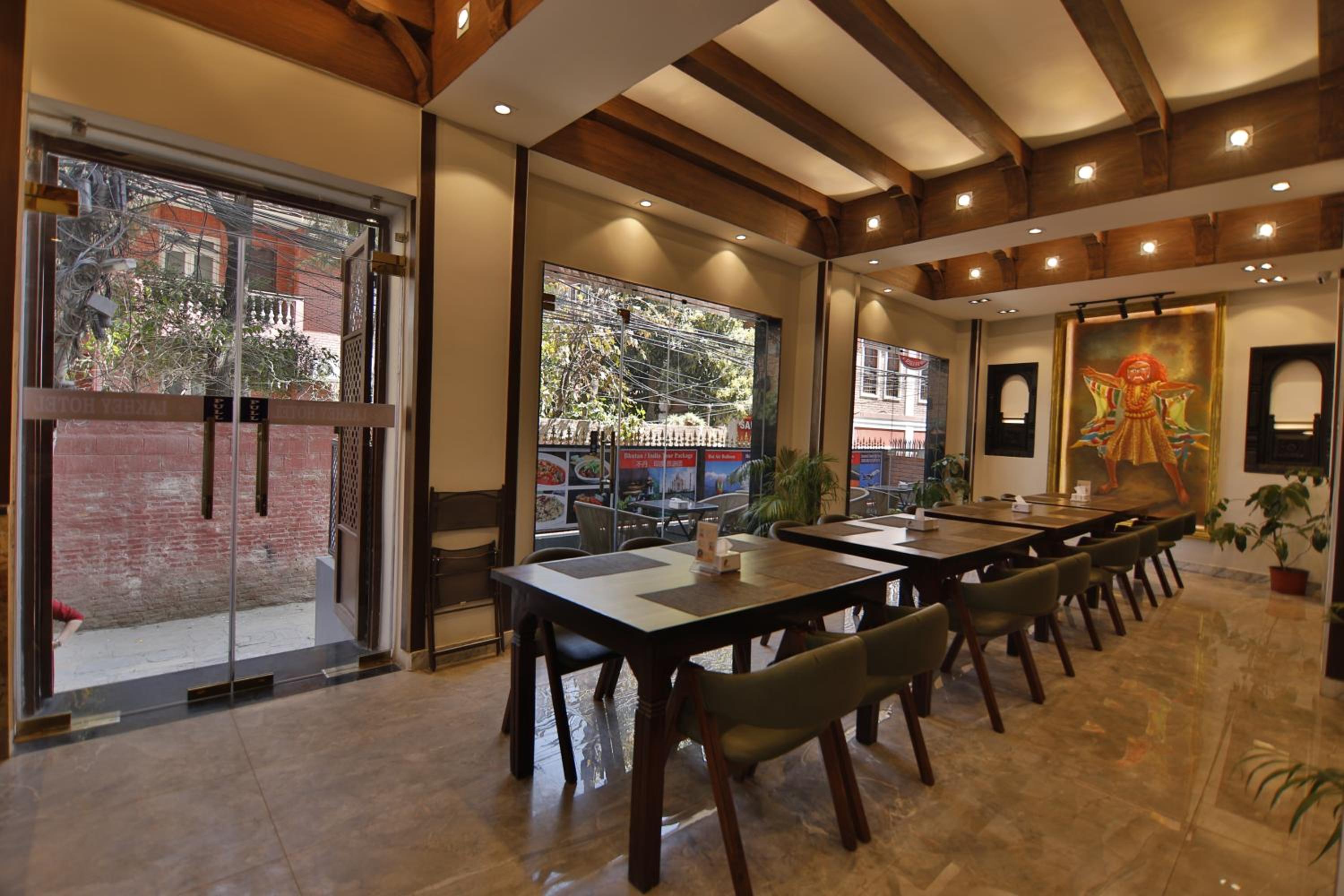 Lakhey hotel is located 10 minutes walk away from Themal. The hotel is nicely renovated. Staffs are friendly and helpful. There is a Chinese restaurant in this hotel and the dishes are legitimate. Rooms are spacious for 2 - with 2 pieces of big luggage and 2 small bags.