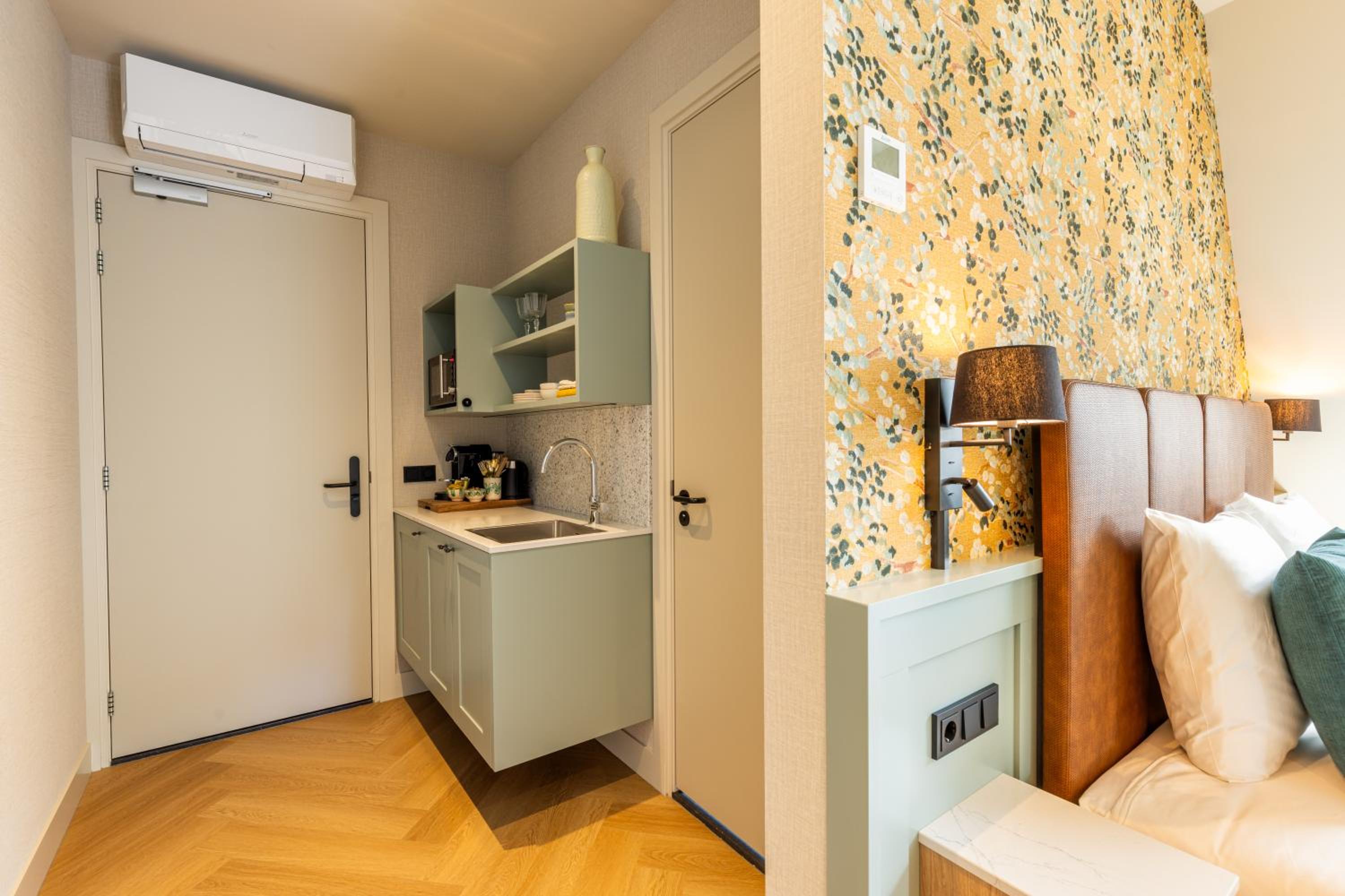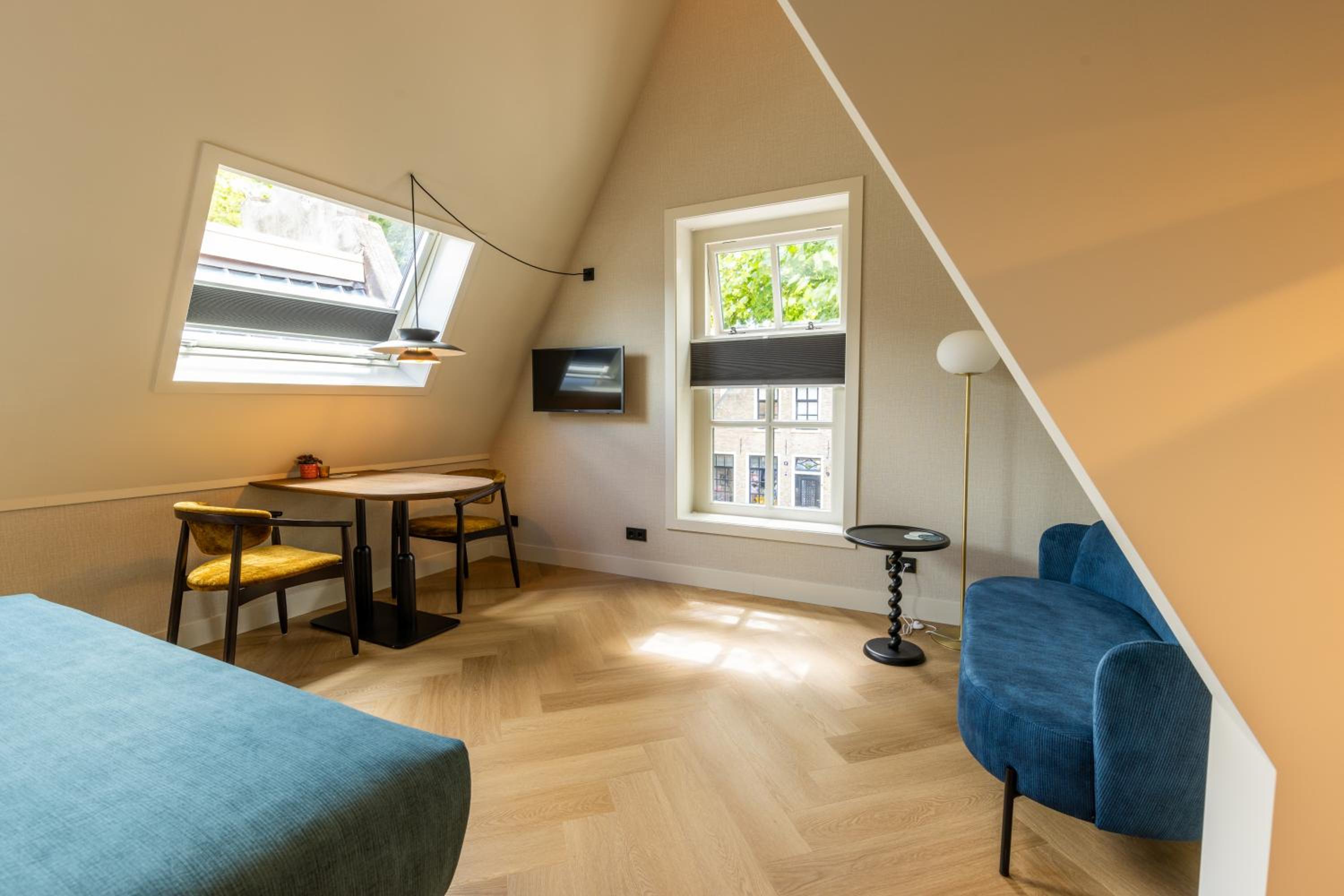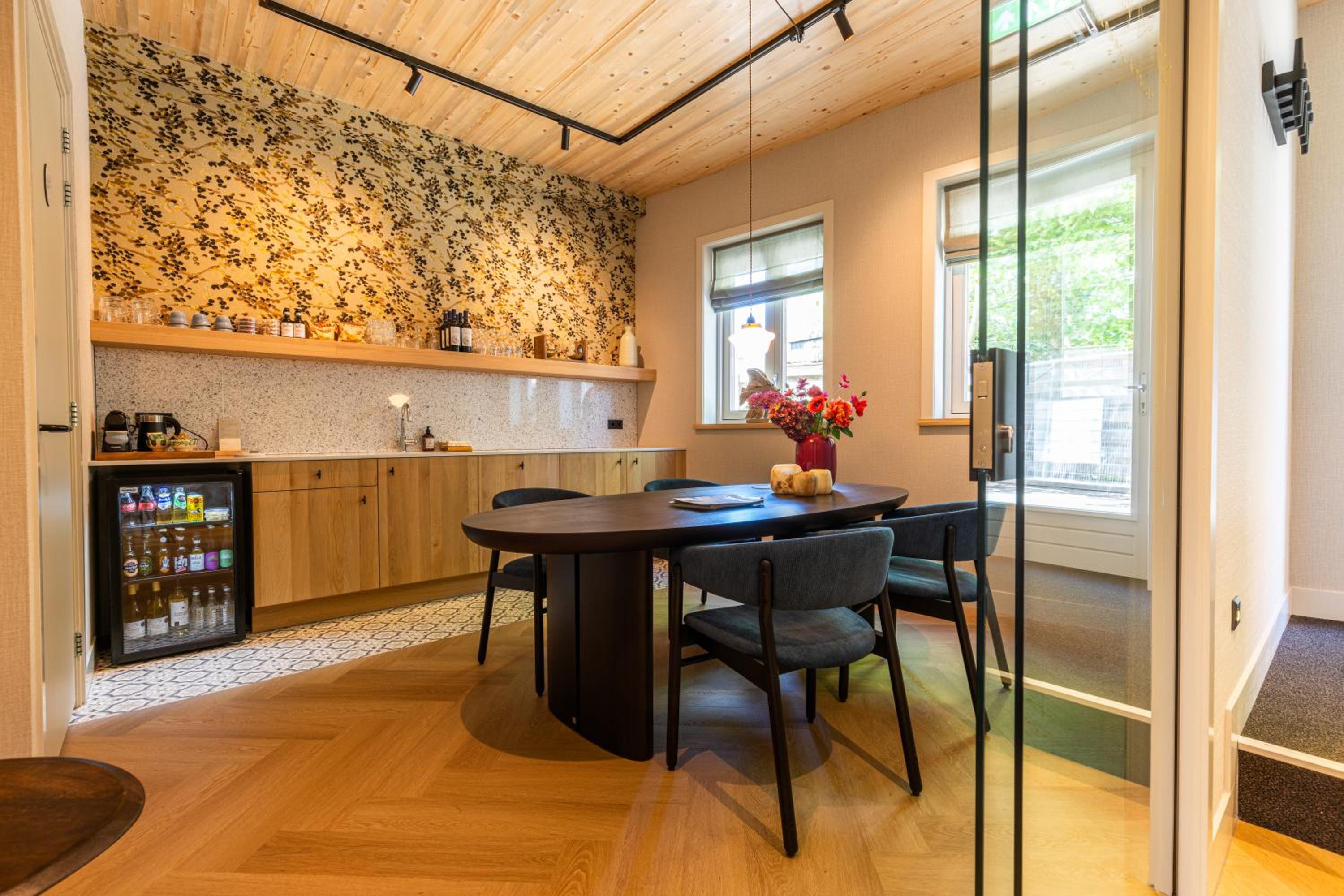 Prachtige ruime kamer, sfeervol ingericht. Heel mooi en luxe sanitair. Compleet keukenblokje uitgerust met magnetron , Nespresso machine, waterkoker en melkopschuimer. Locatie perfect , midden in de Dorpsstraat. Supermarkt dichtbij en gezellige restaurantjes.