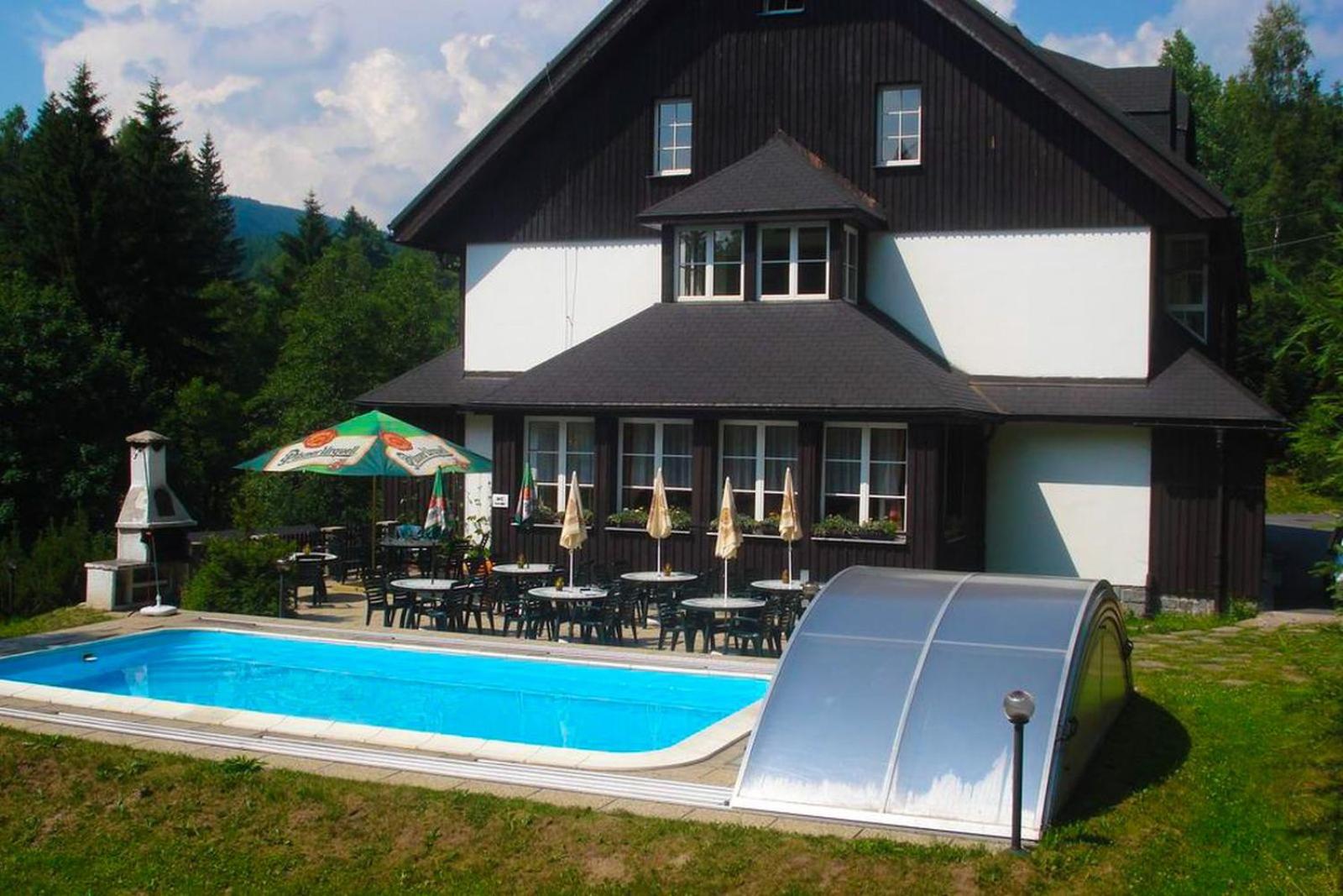 Hotel Konšel in Říčky offers an idyllic retreat with a seasonal outdoor pool, free parking, and a charming garden. Relax and Enjoy in the shared lounge, terrace, and restaurant with complimentary WiFi. Comfort and Convenience await in each room equipped with modern amenities. Indulge in a buffet breakfast before embarking on outdoor adventures like hiking, skiing, and cycling. Come experience the beauty of Říčky at Hotel Konšel. Book your stay now to create unforgettable memories.