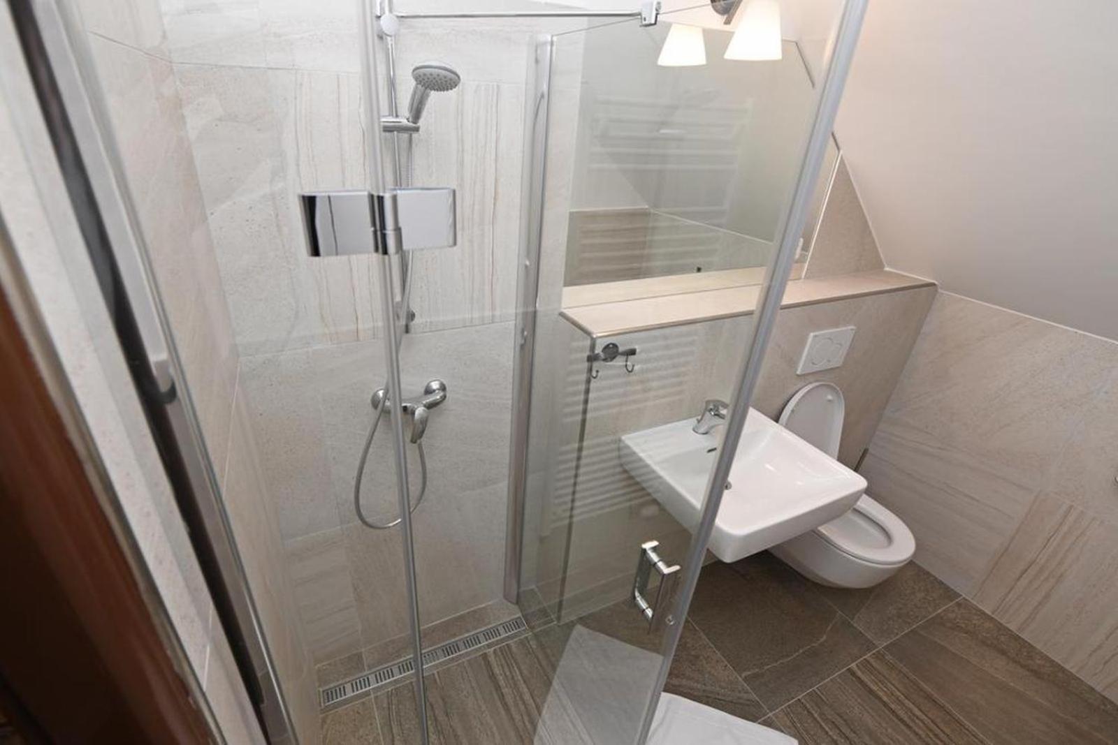 Rozbité dveře u sprchového koutu.