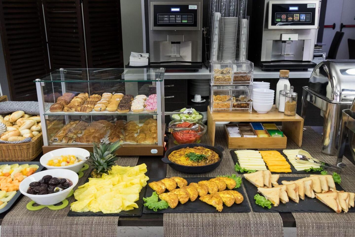 Sehr freundliche Bedienung beim Frühstück, reichhaltiges Buffet, guter Cafe