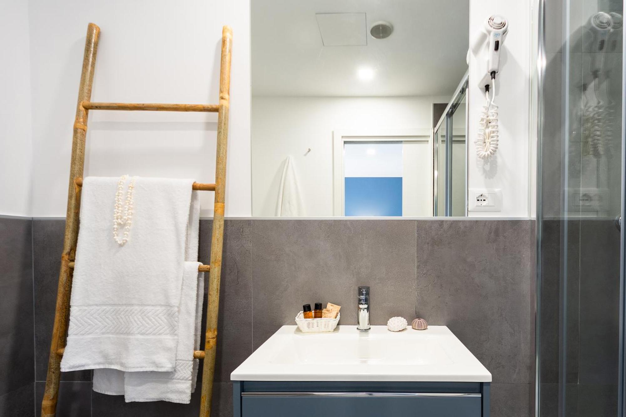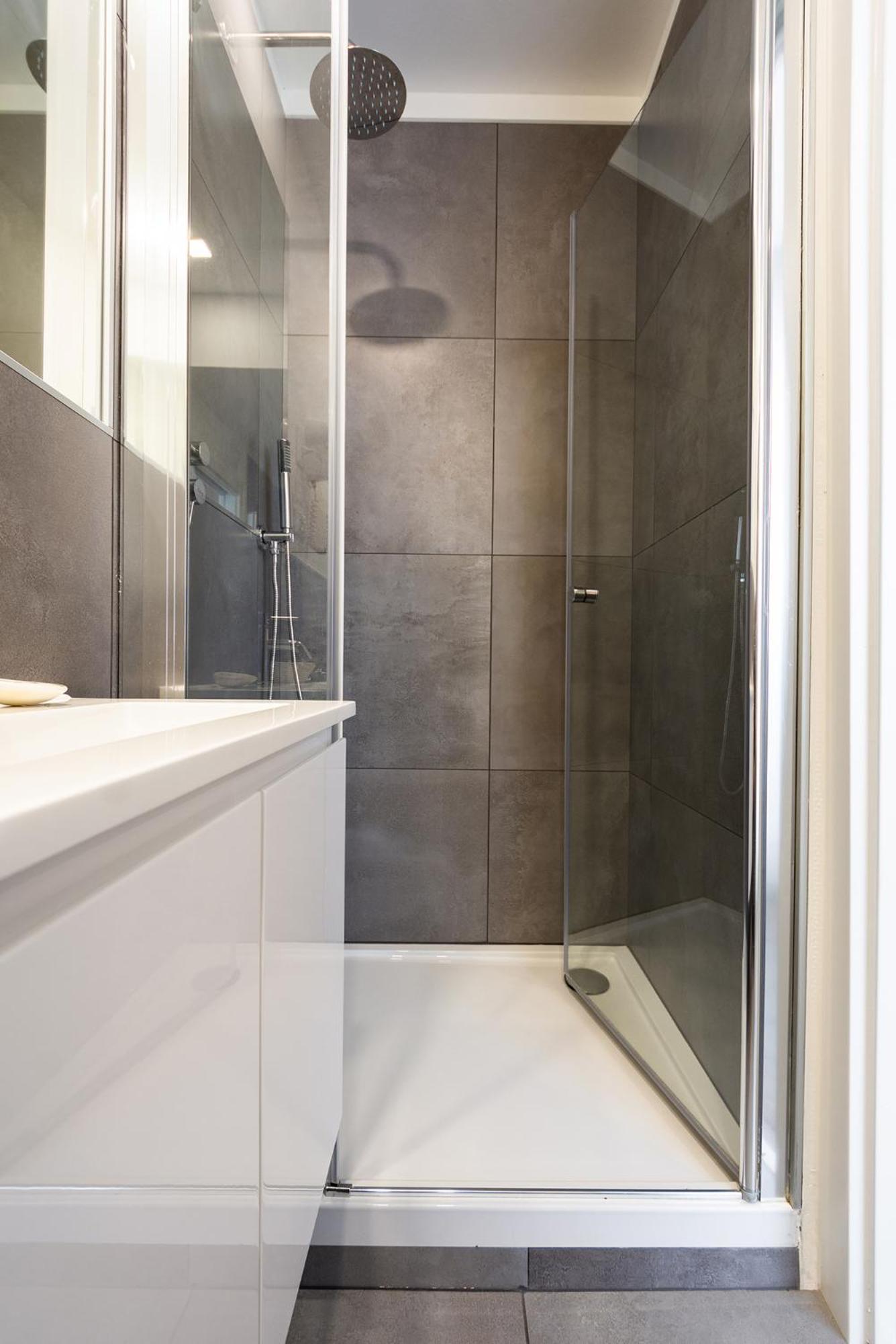Leider gab es nur einen Haken für die Handtücher, in der Dusche keine Abstellplätze obwohl so groß! Das Wasser war lauwarm und es gab keinen Duschstrahl sondern es tröpfelte und zwar gleich 2 mal, weil die Regendusche und der bewegliche Teil gleichzeitig tröpfelten und sich nicht umstellen ließen, - waren kaputt.