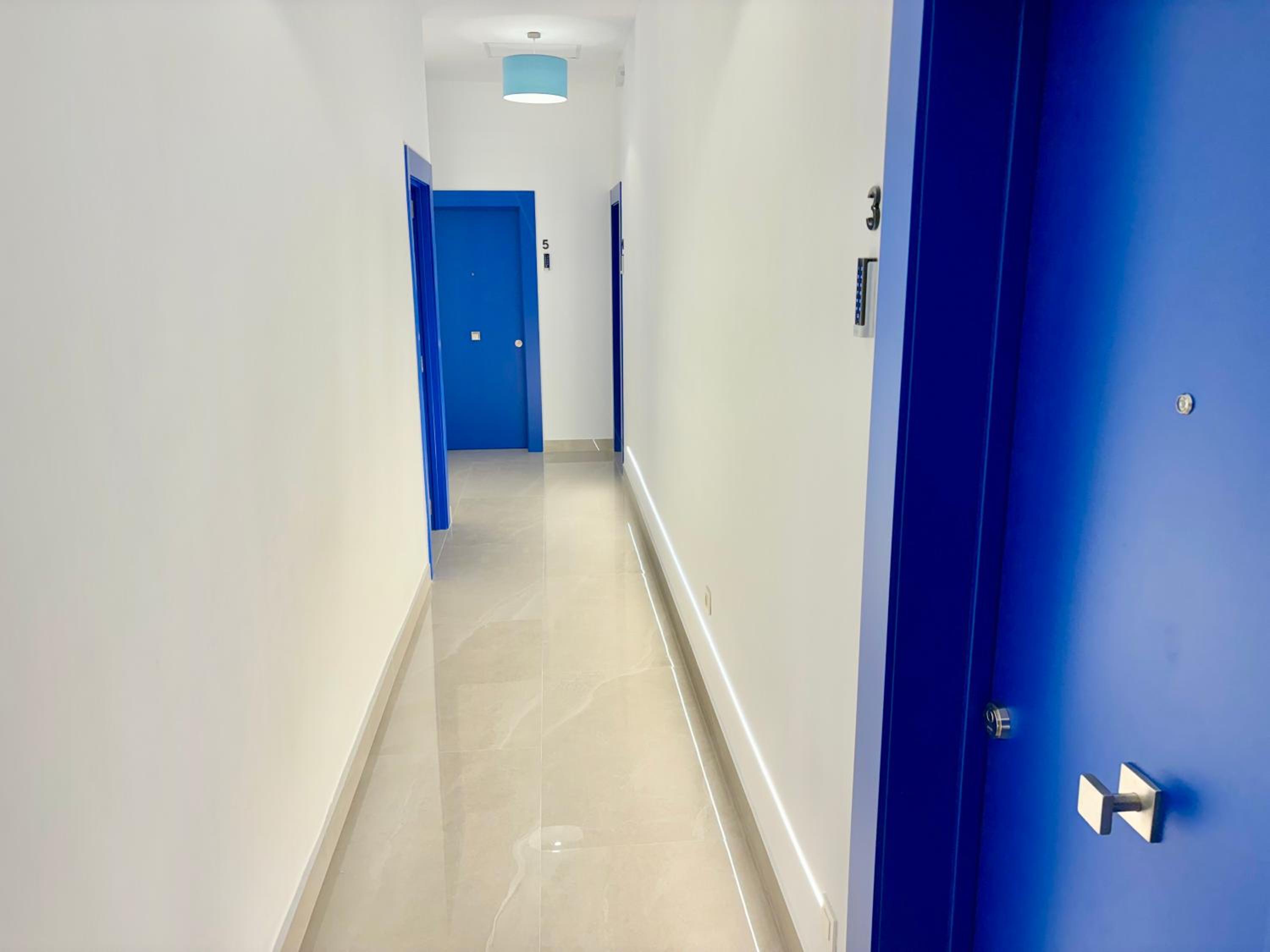 The door to the hallway is quite noisy. You don’t hear noise in between rooms only people in the hallway that slam doors for example. Also we would have liked a balcony or outside space.