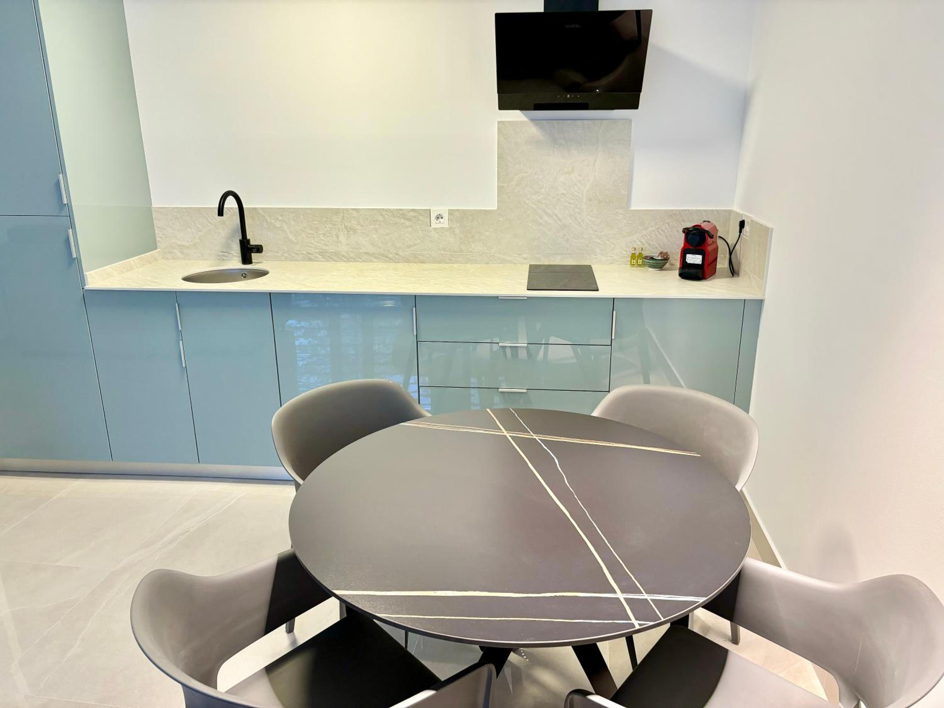 Удобное расположение между основными достопримечательностями, спокойный район. Хорошая планировка помещения, наполнение кухни, удобная кровать, чистое бельё и полотенца. Сильный напор воды и регулировка её температуры.