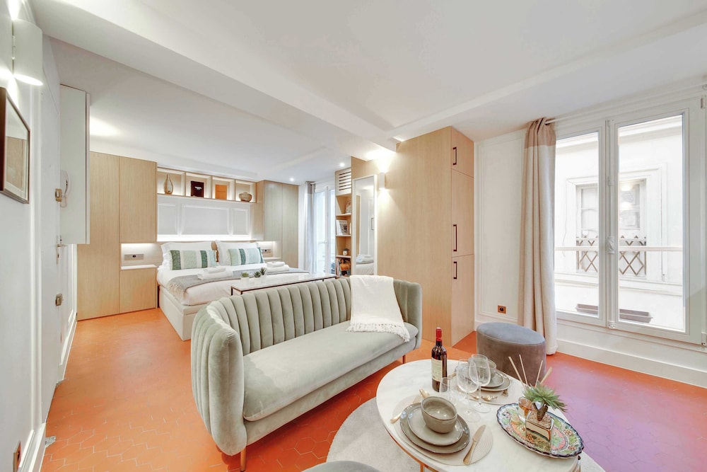 Explore Paris conveniently with major attractions within walking distance, including Palais Garnier and Rue de Rivoli.