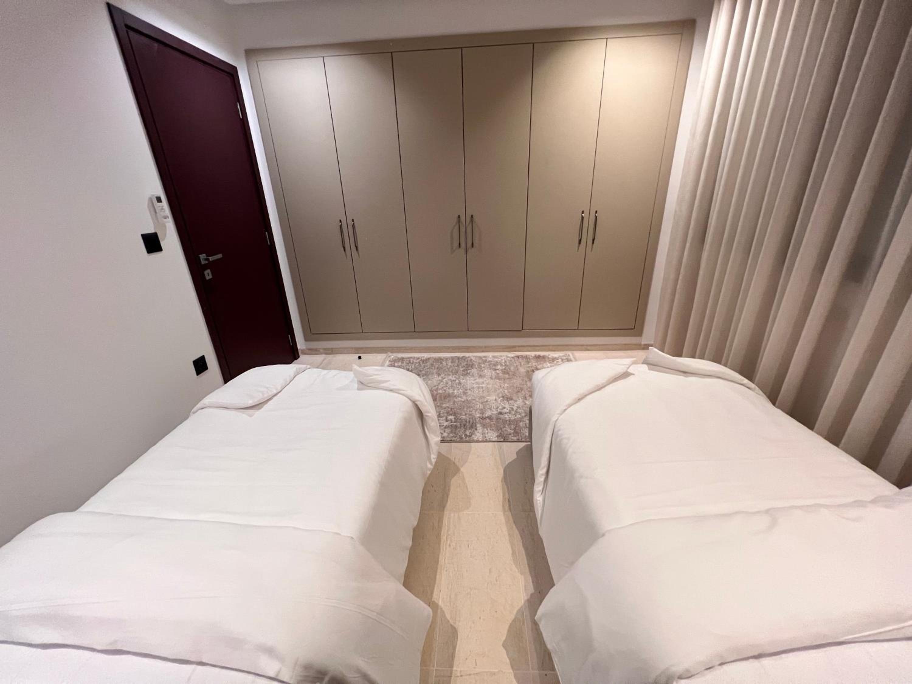 Very clean. Closer to super markets and other shops. There is a restaurant downstairs which delivers delicious food. Very convenient location