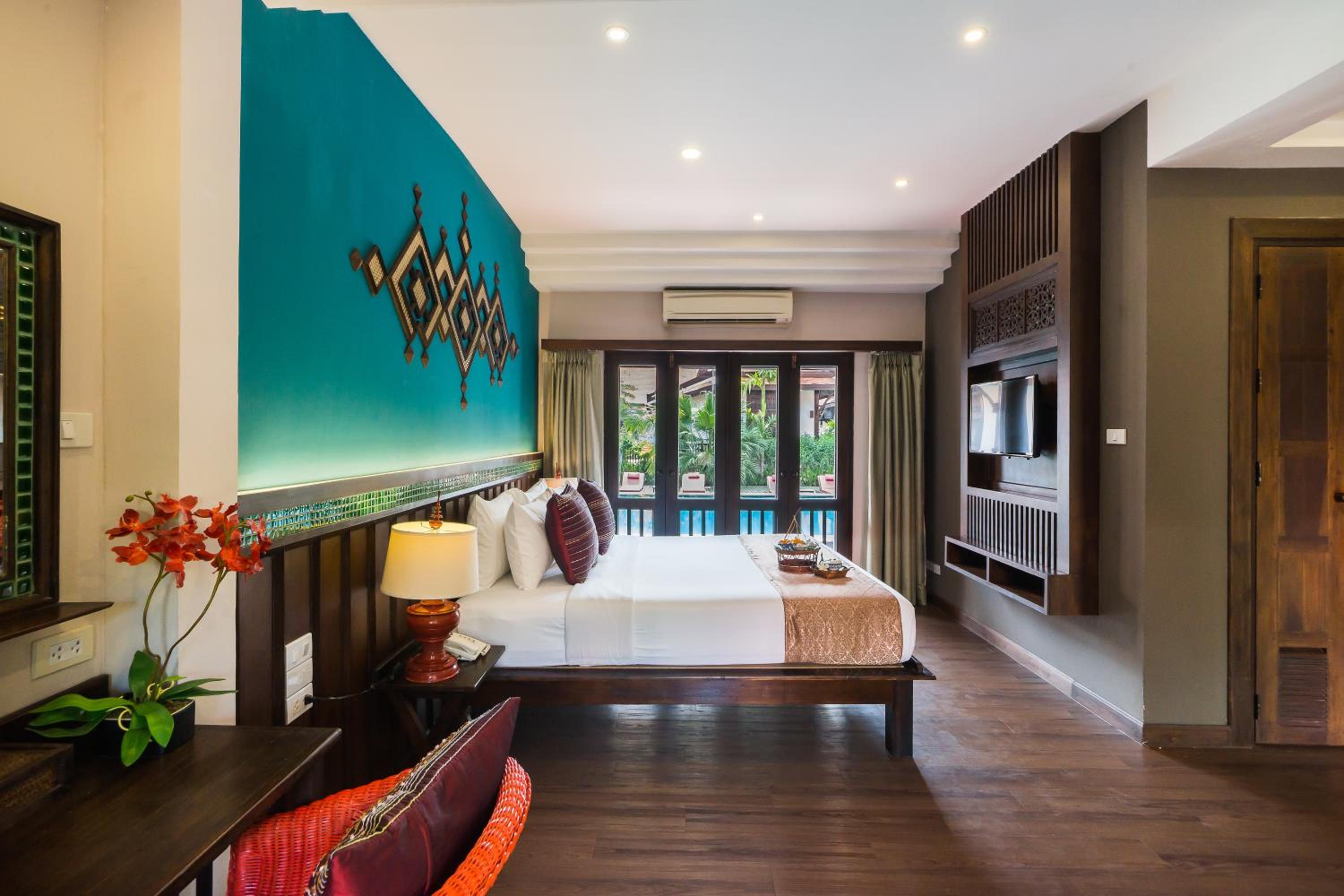 Each air-conditioned room showcases classic Thai design and offers a private balcony with views of the canal, temple, or courtyard. Guests can enjoy modern amenities like cable TV, tea/coffee maker, and a hairdryer. The en suite bathrooms feature shower facilities and branded toiletries.