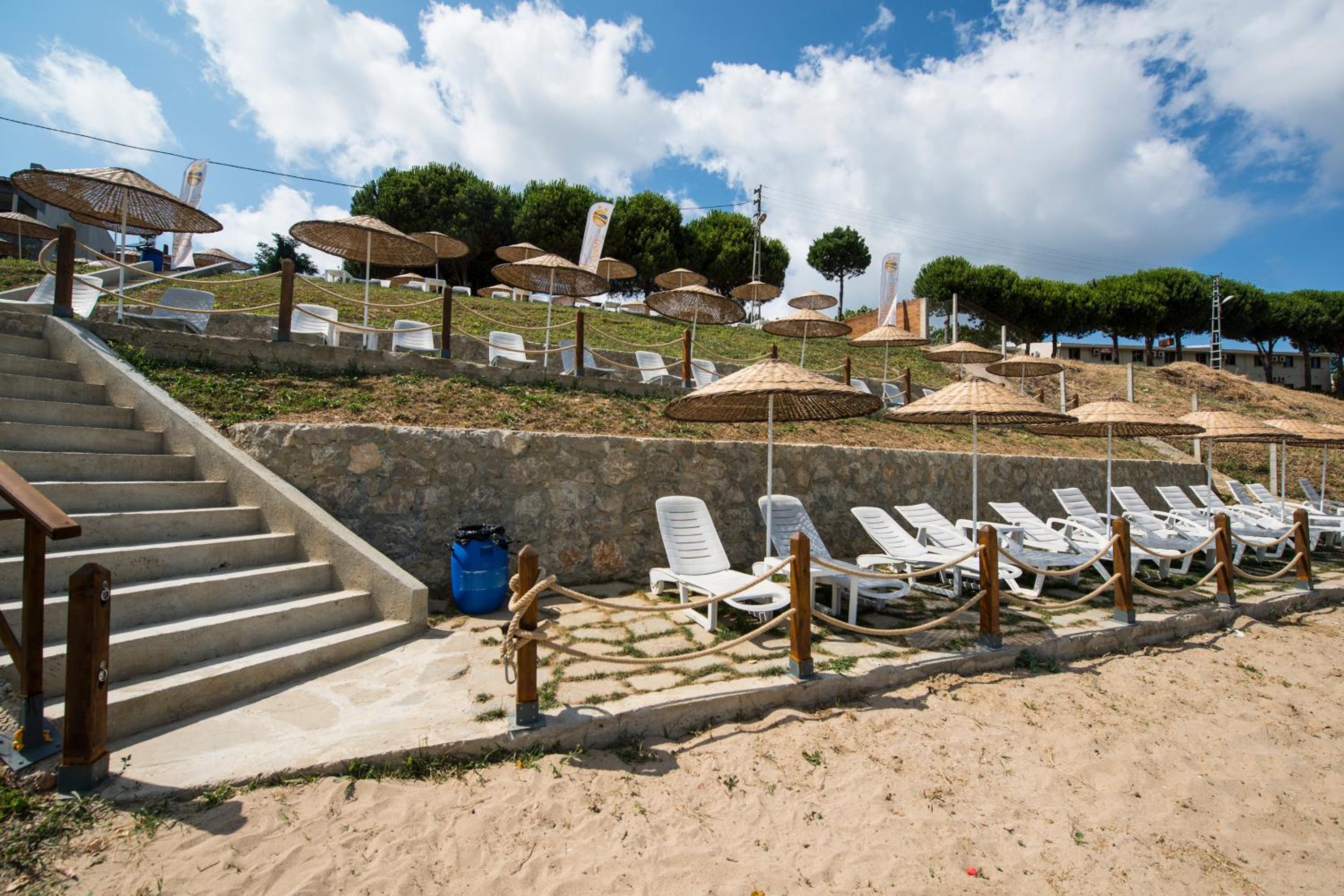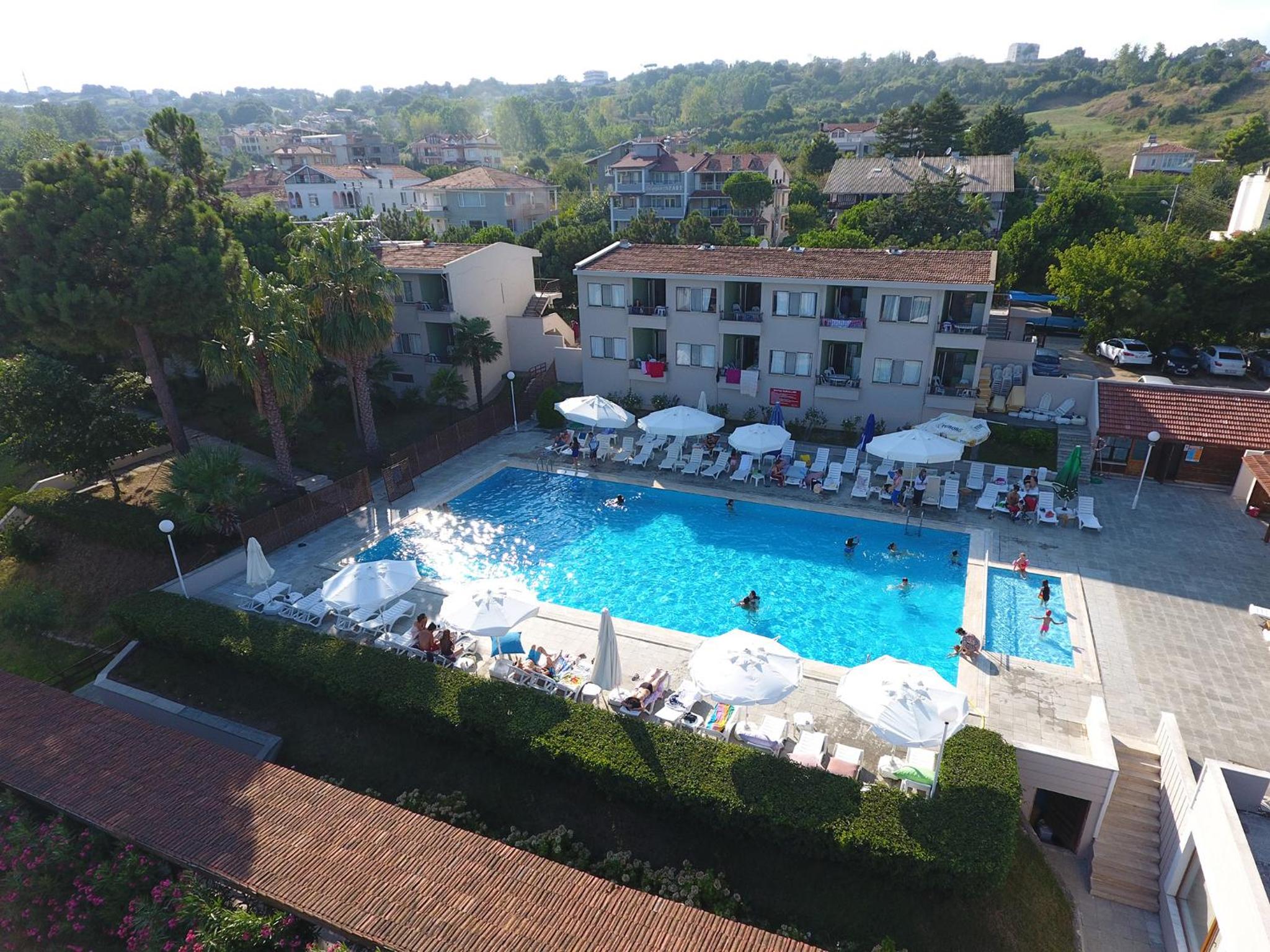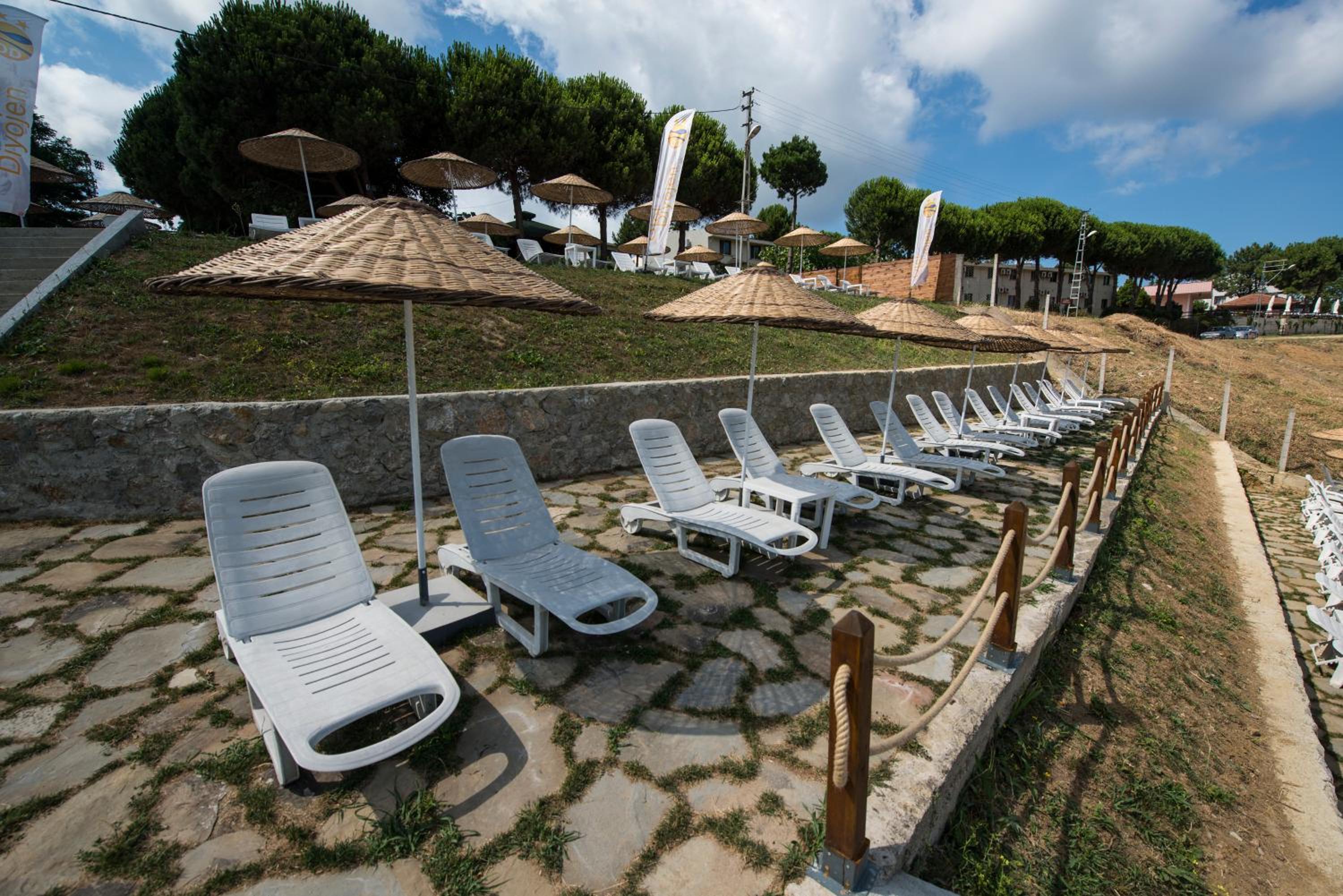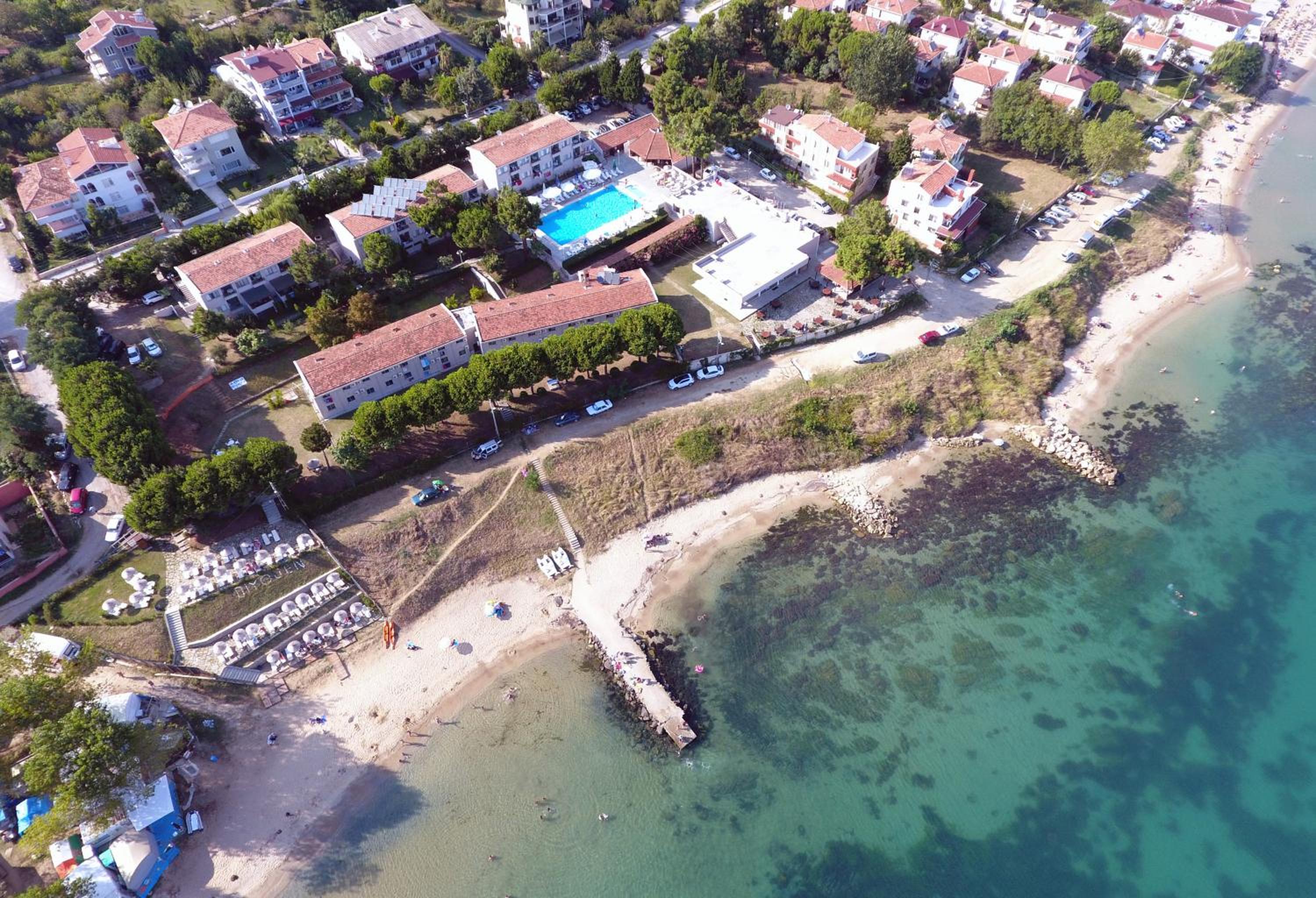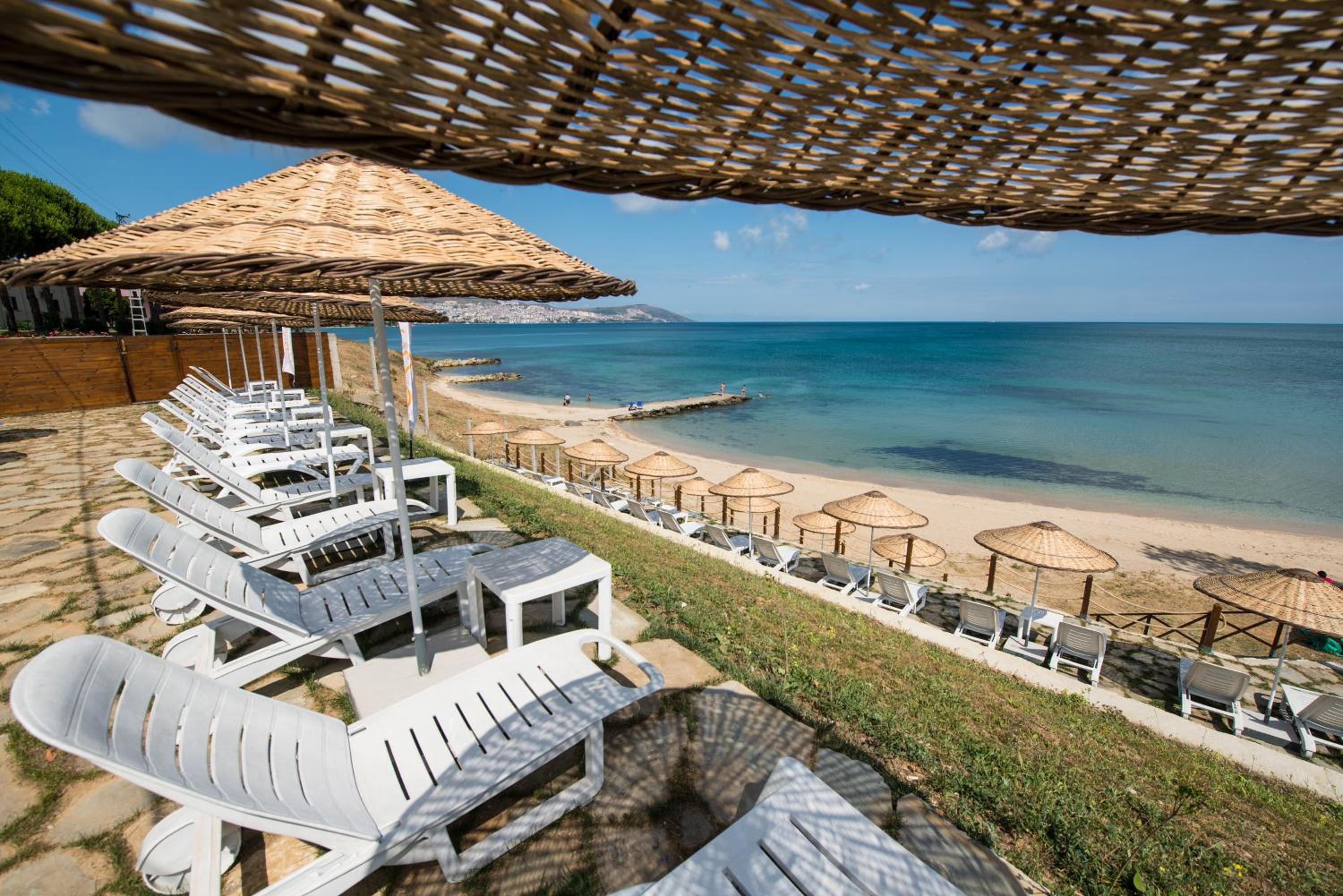 Luxurious Amenities: Enjoy a seasonal outdoor swimming pool, private beach area, and garden at Otel Diyojen.
