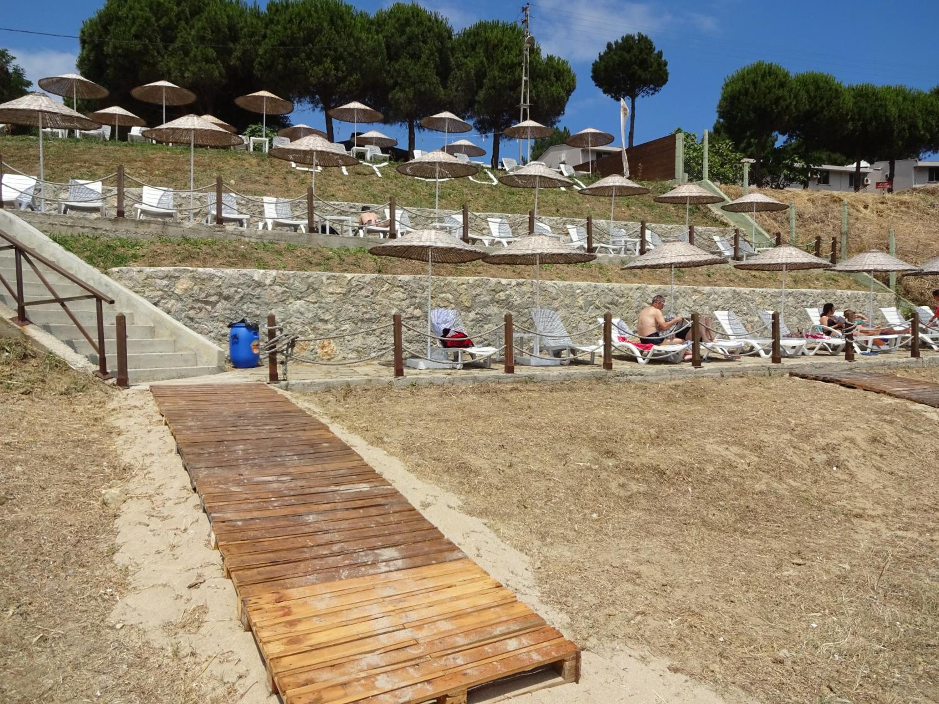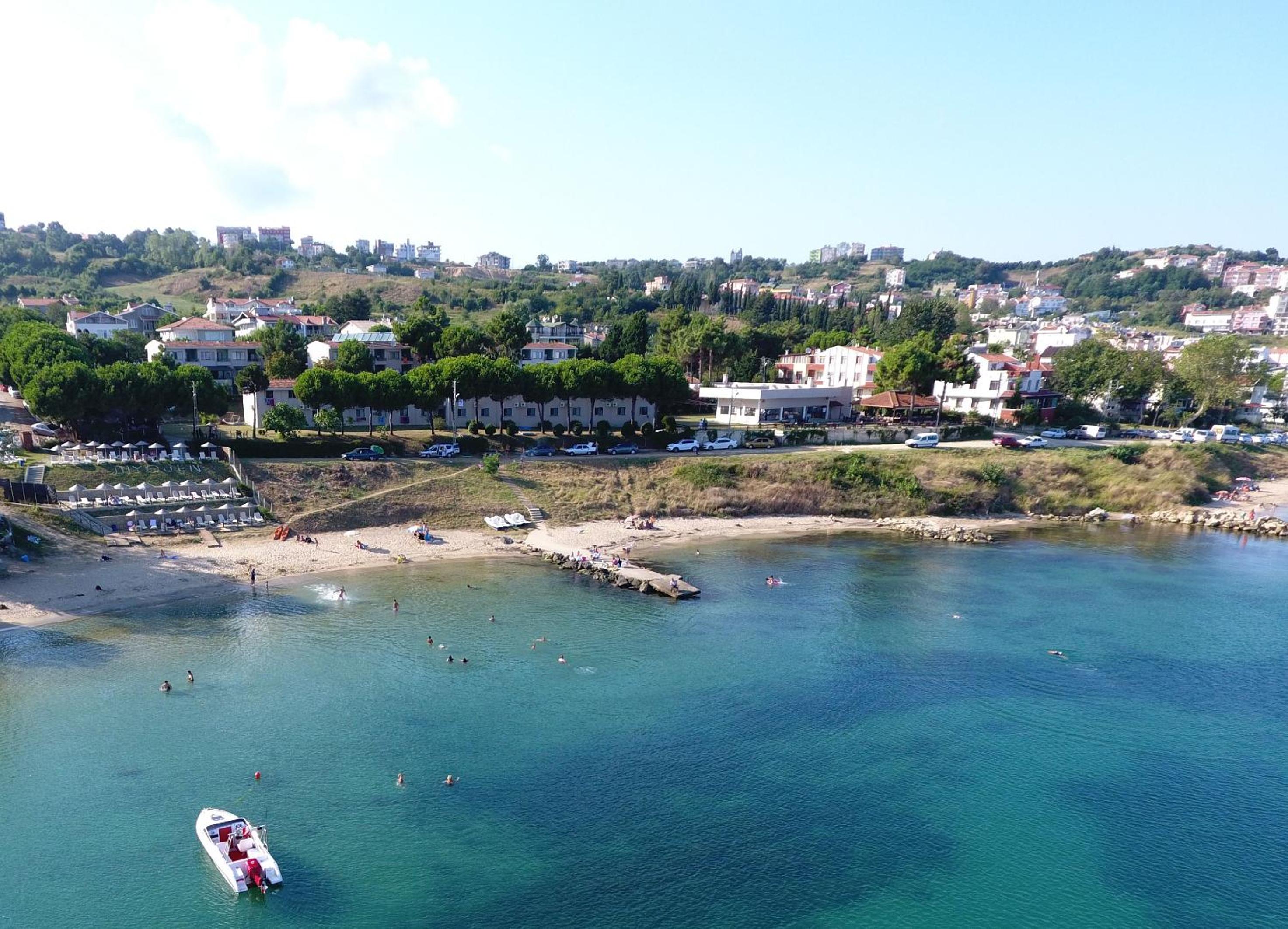 location is super nice, right on a tiny beach in the gulf of Sinop; it's quiet in the evenings and the view is great; the staff is really helpful, breakfast is nice, including some fruits, which was rare on our trip to the Black Coast; they have private parking and access to a semi-private area on the beach with sunbeds and umbrellas.