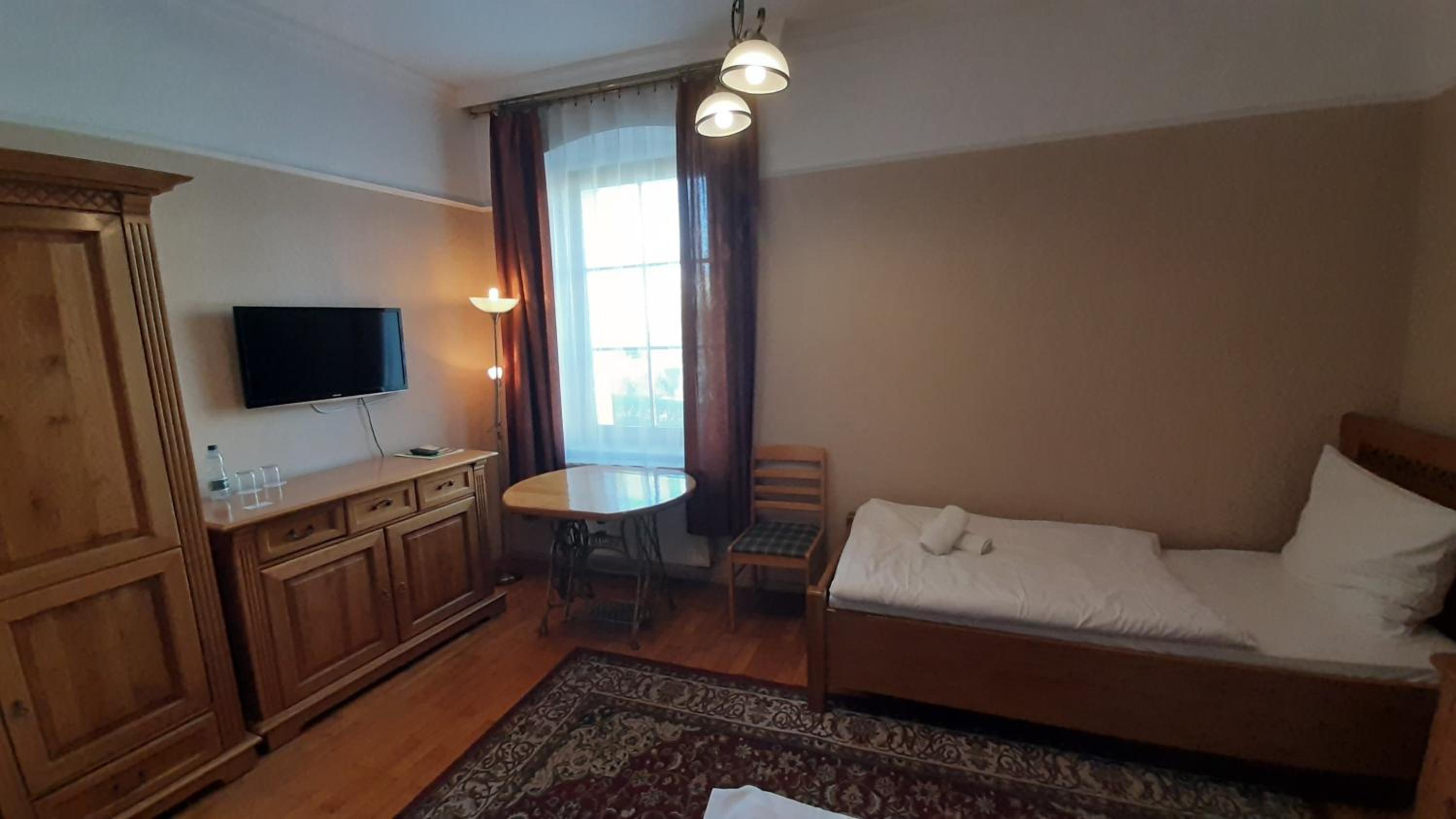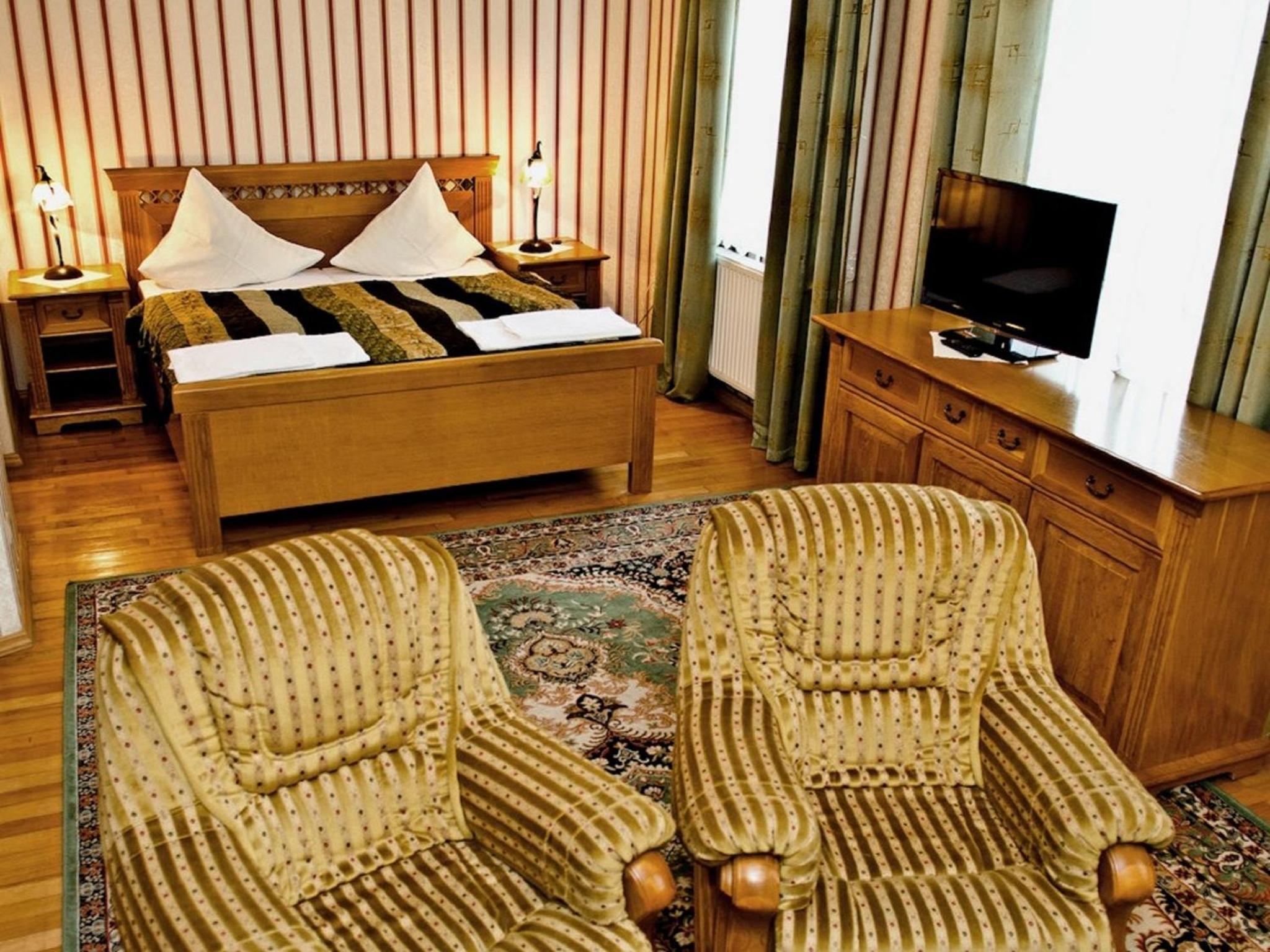 Enjoy a stay in spacious and classically furnished rooms equipped with modern amenities like a TV, private bathroom, and plush towels, ensuring a comfortable and relaxing experience.