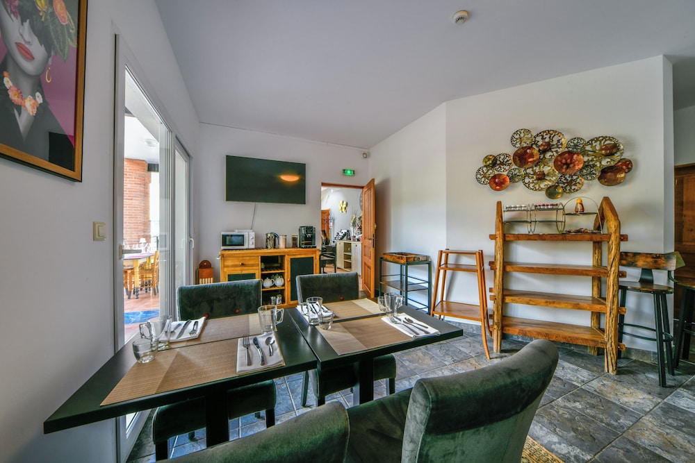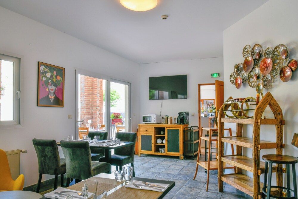 Ample secure car parking, easy to find and a great and warm welcome. The room was huge, nicely laid out and the bathroom spacious, everything was clean and bright. As it was Bastille Day they had a local celebratory one off meal on a day when the restaurant was usually closed, and we were invited to join them as guests. Our dining experience was in the large garden which was well laid out with plenty of space in between tables in an almost woodland setting. The moules frites was substantial and superb and the aray of starters from a buffet were homemade, fresh and delicious and you could return for more if you wished. This also included dessert which you could also have more of for and a glass of beer each...all for €20 which was great value for money. The waiting staff were welcoming, friendly, and attentive and took pride in their offer. The breakast was generous with pastries and bread, an assortment of chacuterie and yogurt and a good choice of tea and coffee. The waitress was friendly and approachable and ensured we had everything we needed. Checkout was speedy, and they thanked us for our stay. All in all great value for money.