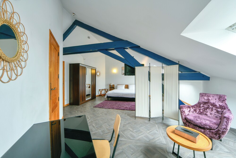 Une nuitée étape de retour d’un séjour dans les alpes. Une très belle surprise, bel établissement avec charme . Déco originale et sympa. Chambre très spacieuse. Très propre, calme et confortable. Une adresse à retenir, nous y reviendrons avec plaisir