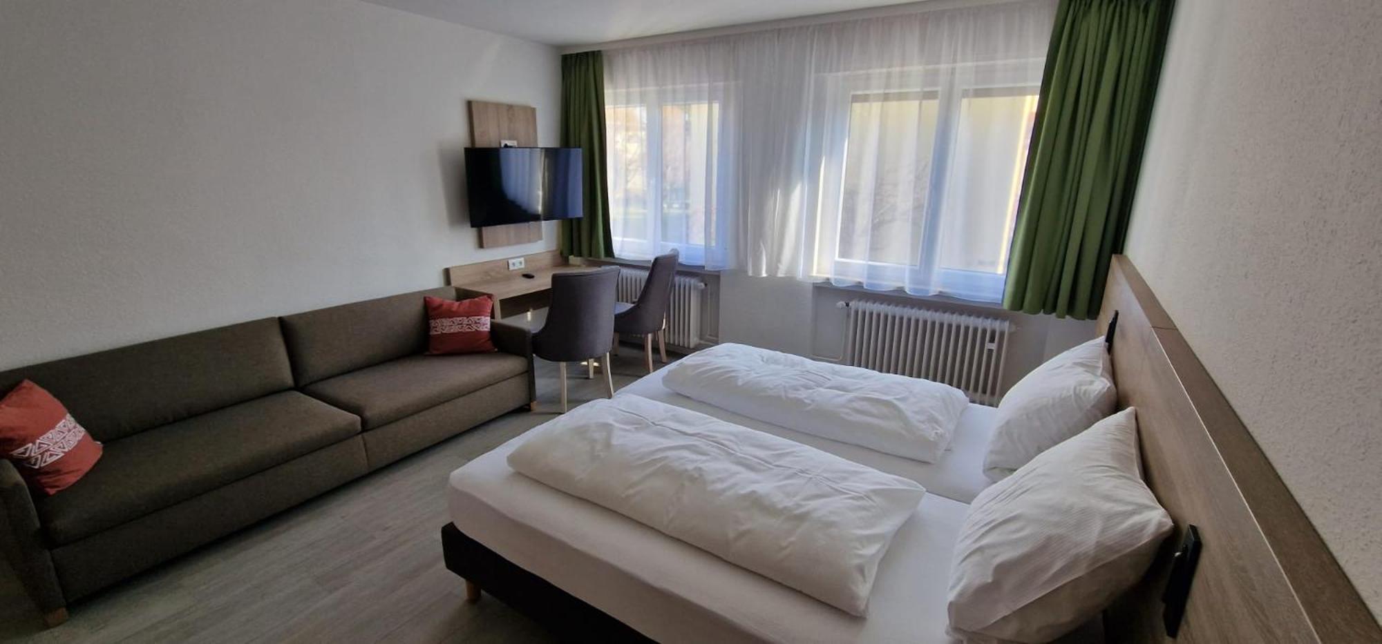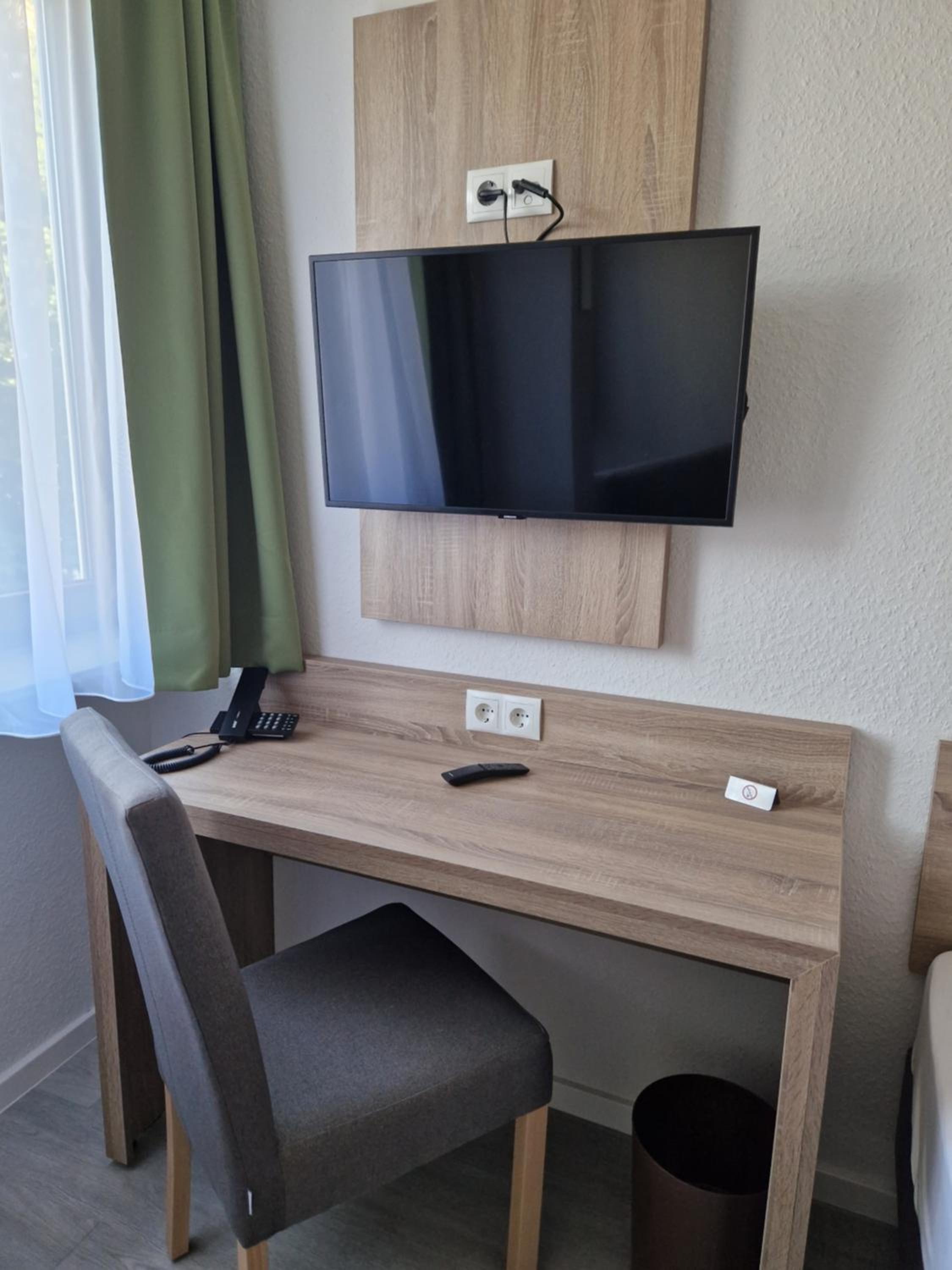 Each room at Hotel Ladage is thoughtfully equipped with a desk and a flat-screen TV, ensuring a comfortable stay for all guests. The rooms also include bed linen and towels, providing convenience and a home-away-from-home feeling.