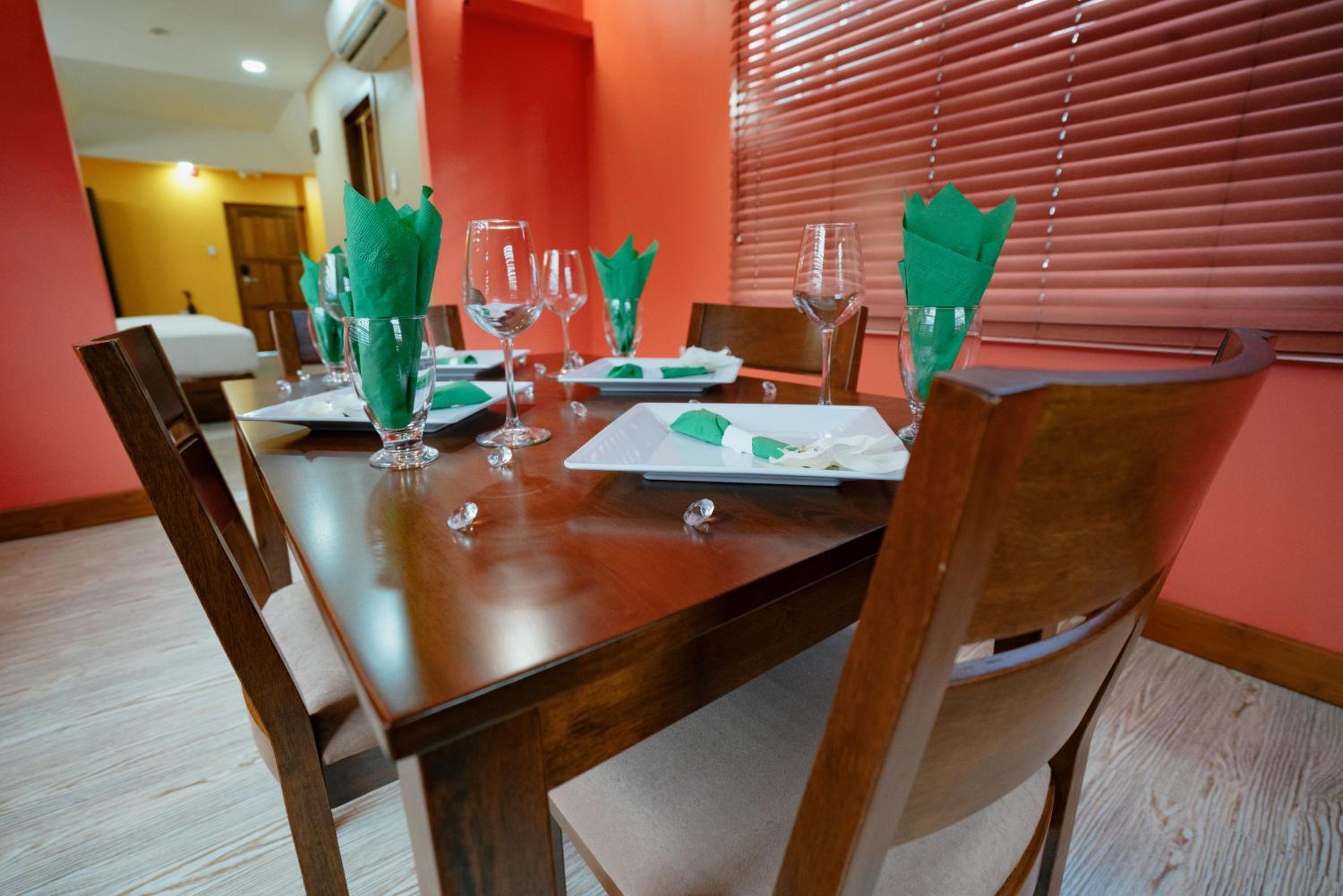 The bathrooms and showers look run down and stained due to the style and type of the tiles, so it has a dirty look, white tiles and walls and bedding is always best in hotels as, most consumers like to see if things are clean. The towels and sheets don’t look pristine, they have stains and marks on them, and they look worn out. The colors of some of the rooms are too loud. Do not like Orange or Yellow for hotel rooms especially if you want to feel relaxed. The food is very, very, very oily, and doesn’t look like the pictures, also the battered food is too thick and floury, and sorry the quality of breakfast is very cheap and the breakfast tastes awful, not enough fresh fruits for offer. I was shocked at the breakfast that came to my room. And the frankfurters was cheap and horrible. Better money can be spent on certain food items for guests. The serving of silverware utensils should be made. Just feels cheap to be served with plastic forks and plastic boxes. But then I understand that the hotel is not a longterm stay. The extreme loud music party volume style is annoying especially if you’ve just had long day of meetings or come off a flight.