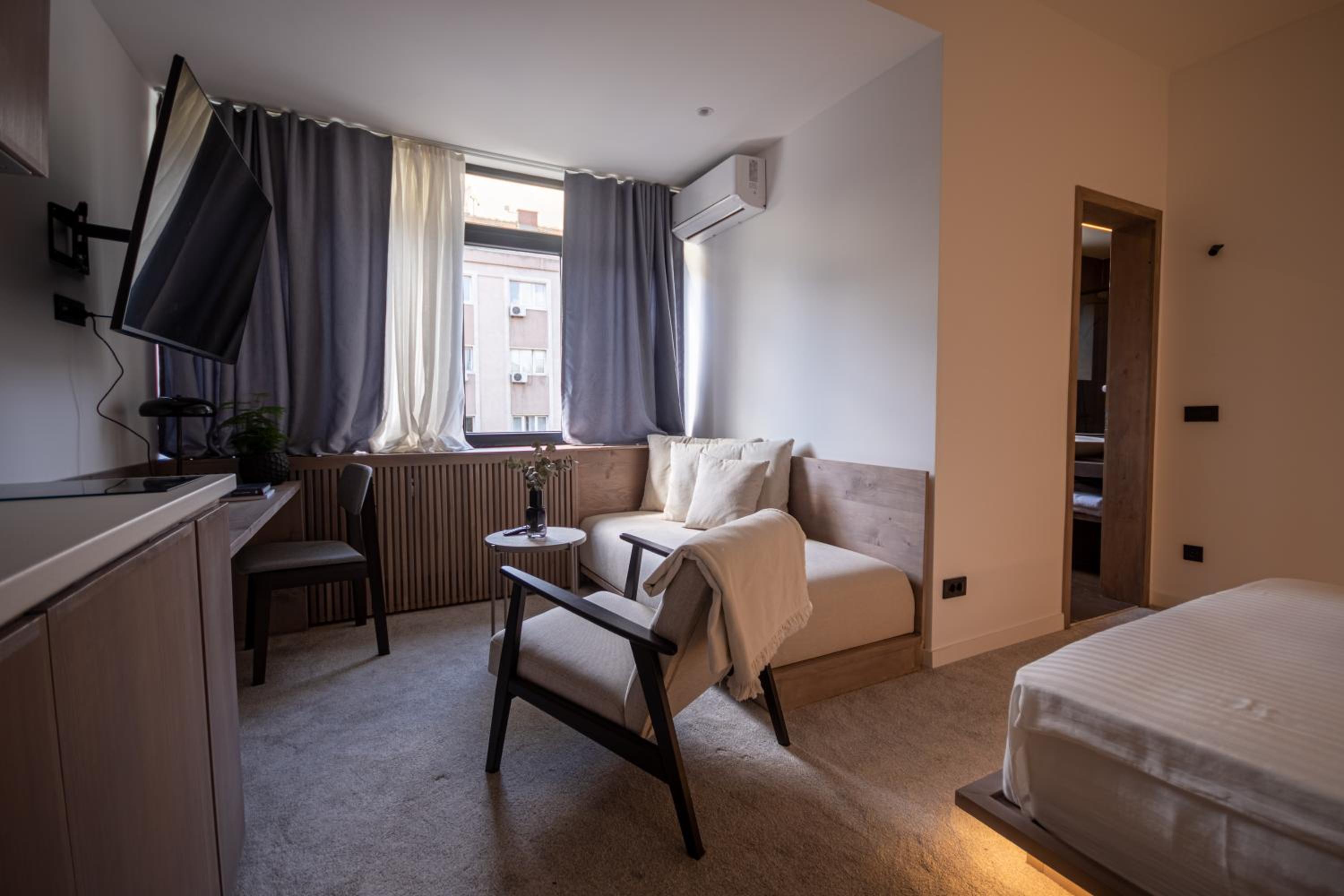 Enjoy complimentary WiFi, on-site dining options, and the convenience of private parking arrangements. Additionally, with the Pristina International Airport just a short drive away, traveling to and from Bloom Suites is seamless and stress-free.
