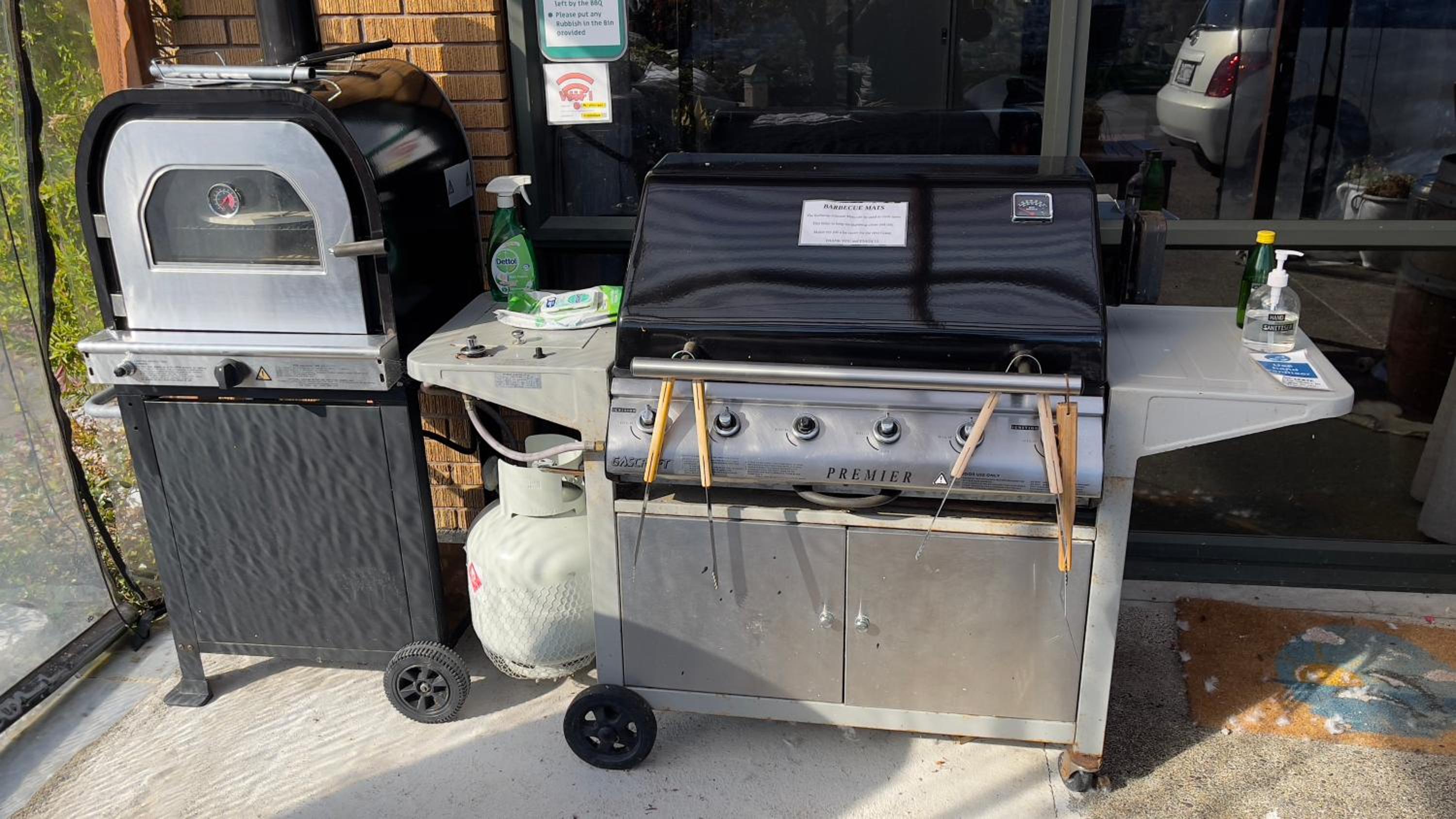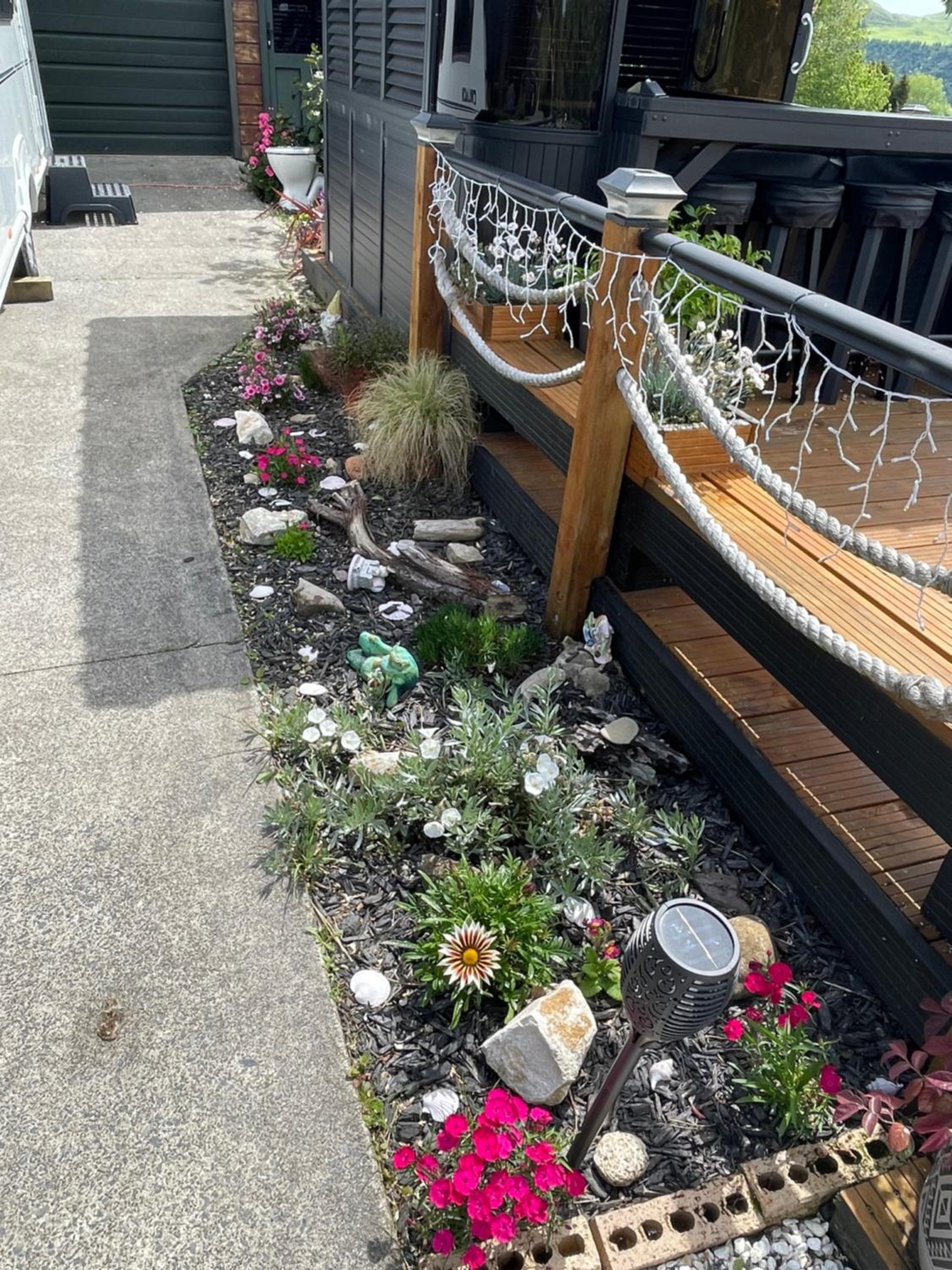 Man muss Tiere schon sehr lieben! Der freilaufende Windhund setzt schon mal einen Riesen „Haufen“ 2 Meter von einem entfernt, während man die Aussicht geniesst und gemütlich ein Glas und Käse zu sich nimmt! Er kackt aber auch sonst überall hin (direkt vor dem Vorzelt beim Zimmer). Die freilaufenden Katzen sind da etwas diskreter und verrichten ihr Geschäft im Blumenbeet, neben dem Sitzplatz. Mit den 3 Pferden und der freilaufenden Ente, wähnt man sich auf dem Lande / Bauernhof. Somit hat es natürlich auch viele Spinnen und Fliegen im Zimmer. Das Zimmer wäre eigentlich gross, jedoch stehen überall kleine Möbel mit enorm vielen Kleinigkeiten darauf, sodass es eigentlich keine nutzbare Ablage gibt. Da dieses Haus auch noch ein zweites Zimmer anbietet, muss auf allen 3 Seiten der Nachtvorhang gezogen werden, wenn diese vermietet ist. Da jeder „seinen“ Grillbereich hat, kann es laut werden. Auf dem Teppich gibt es noch zusätzlich 6 kleine Teppiche, welche zu unnötigen Stolperfallen werden und leider auch das Problem der Geruchsemissionen sind.