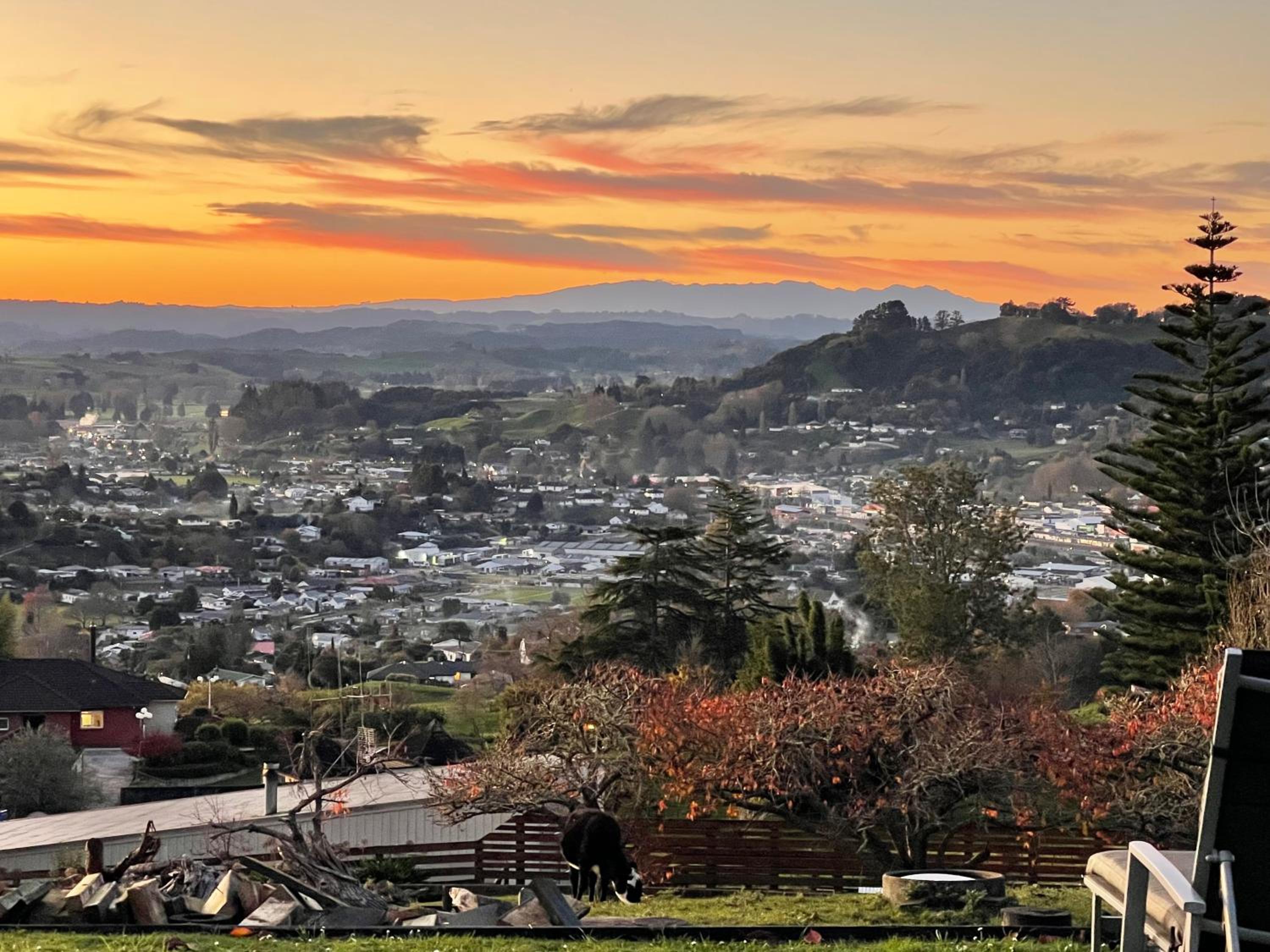 Das Hotel liegt ausserhalb Te Kuiti und ist über eine Schotterstrasse erreichbar. Das Auto kann direkt vor dem Zimmer geparkt werden. Wir hatten das vordere Zimmer, welches ein neues, schönes und grosses Bad, mit begehbarer Dusche, hat. Der Kühlschrank ist, nicht nur für das Frühstück, grosszügig gefüllt. Das TV Angebot ist dank Zugangsdaten von Mel gut. Der Ausblick Richtung Te Kuiti lädt am Abend zum Verweilen in der gemütlichen Sitzbank ein. Dennoch können wir das Diese „Haus“ nur bedingt empfehlen, denn…