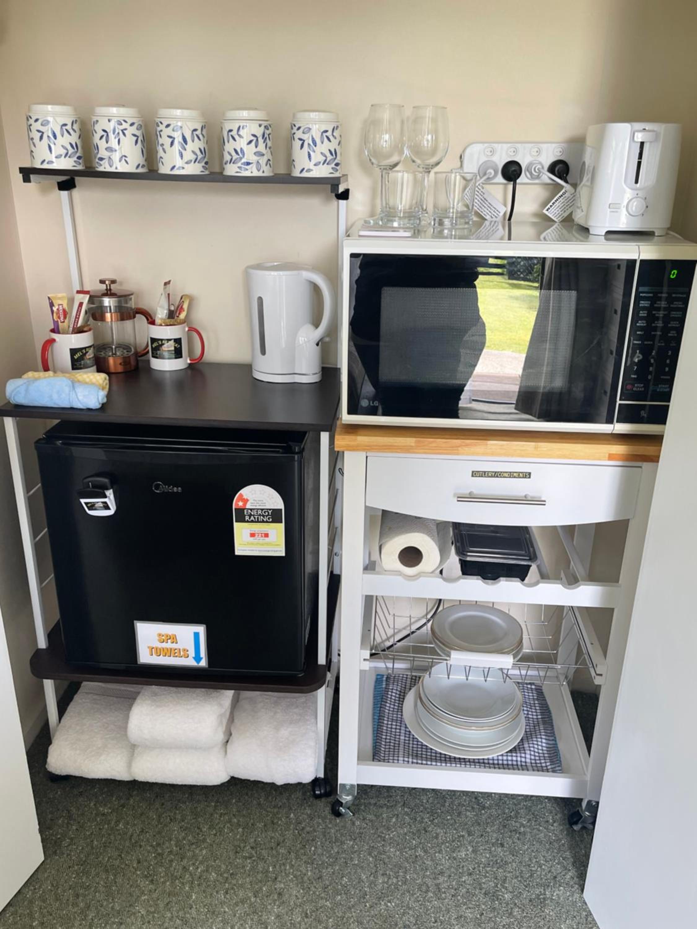 Beautiful farm style location. Lovely outlook from property. Accommodation was comfortable and clean. Clearly looked after with love. Felt like we were in someone’s home. Plenty of snack items provided, including home made. Fresh milk, bread, jams, and eggs to make own breakfast with.