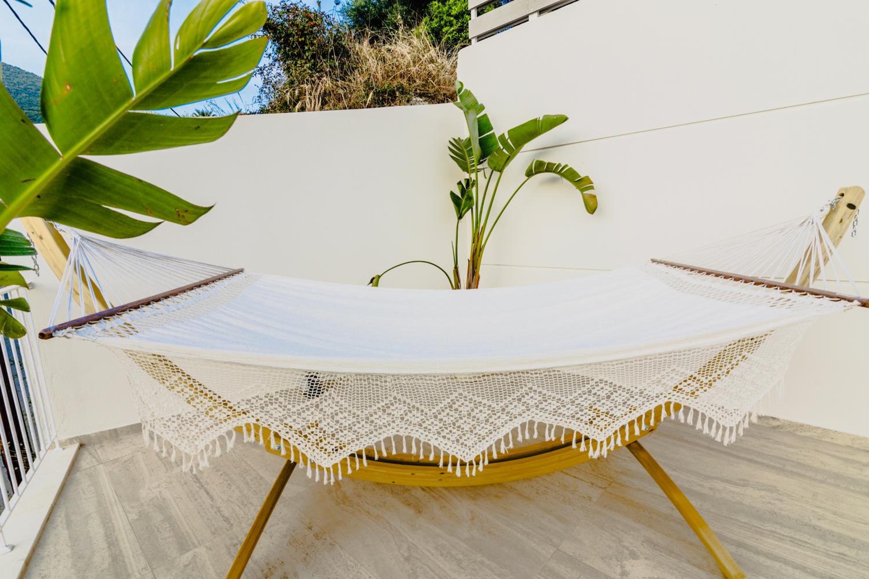Lovely calm room with hotel pool. Walk down the hill to the beach, or across the hill to the town.