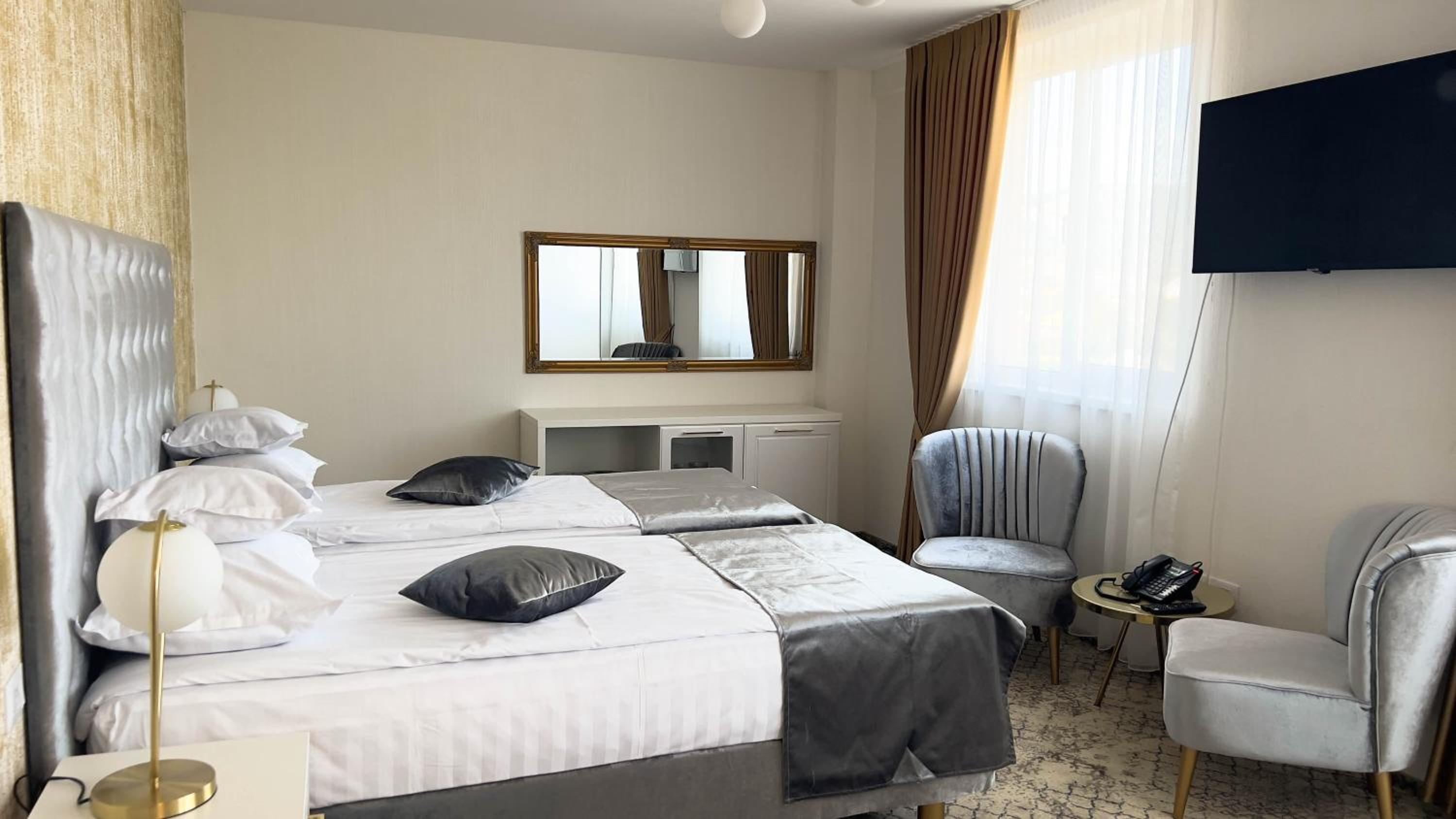 Totul la superlativ! Camera mare, foarte frumos amenajata, curatenie exemplara, personalul foarte amabil, parcare spatioasa, mic dejun excelent! La restaurant mancare foarte buna si portii generoase! Le doresc doar sa pastreze standardul, cu siguranta voi reveni!