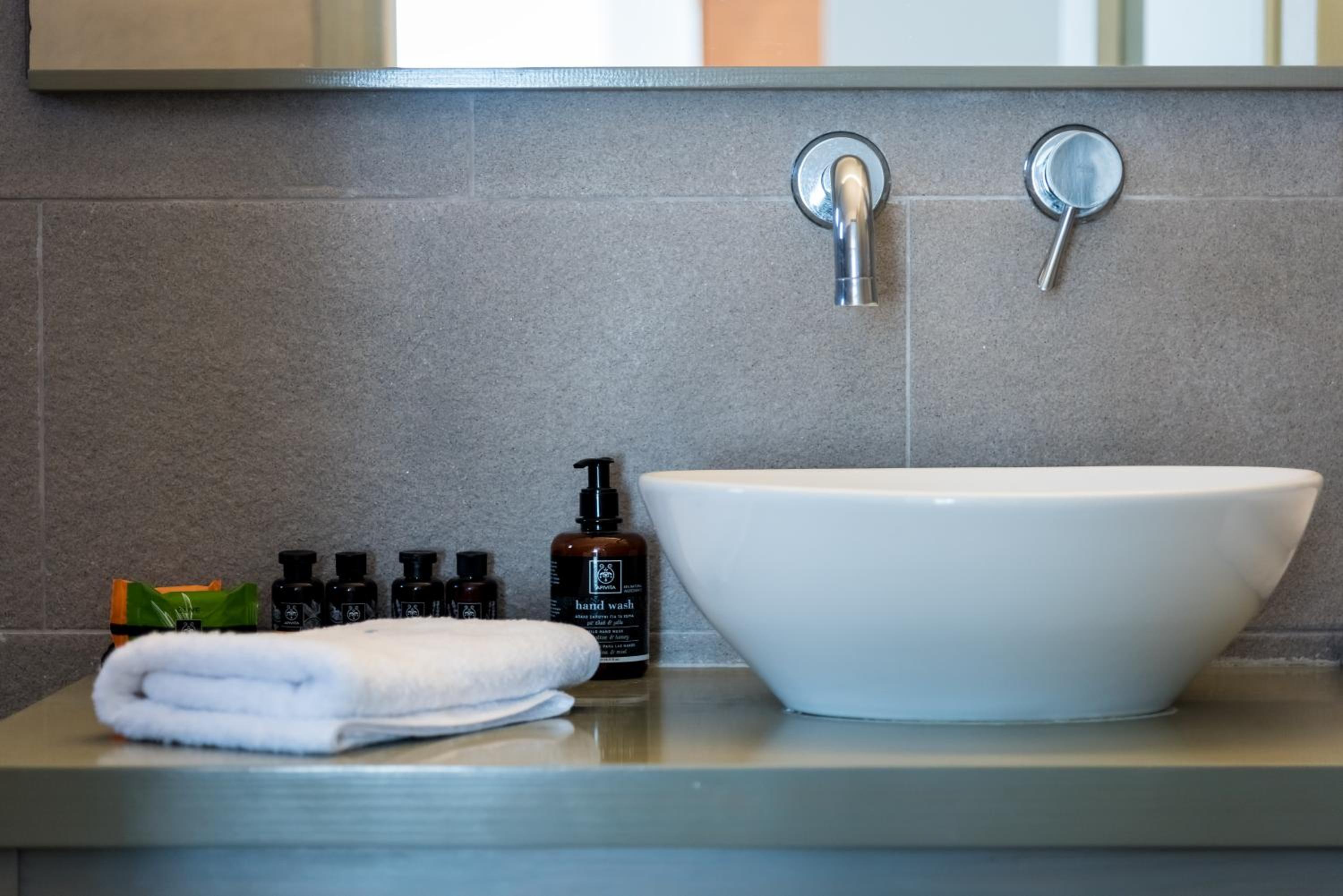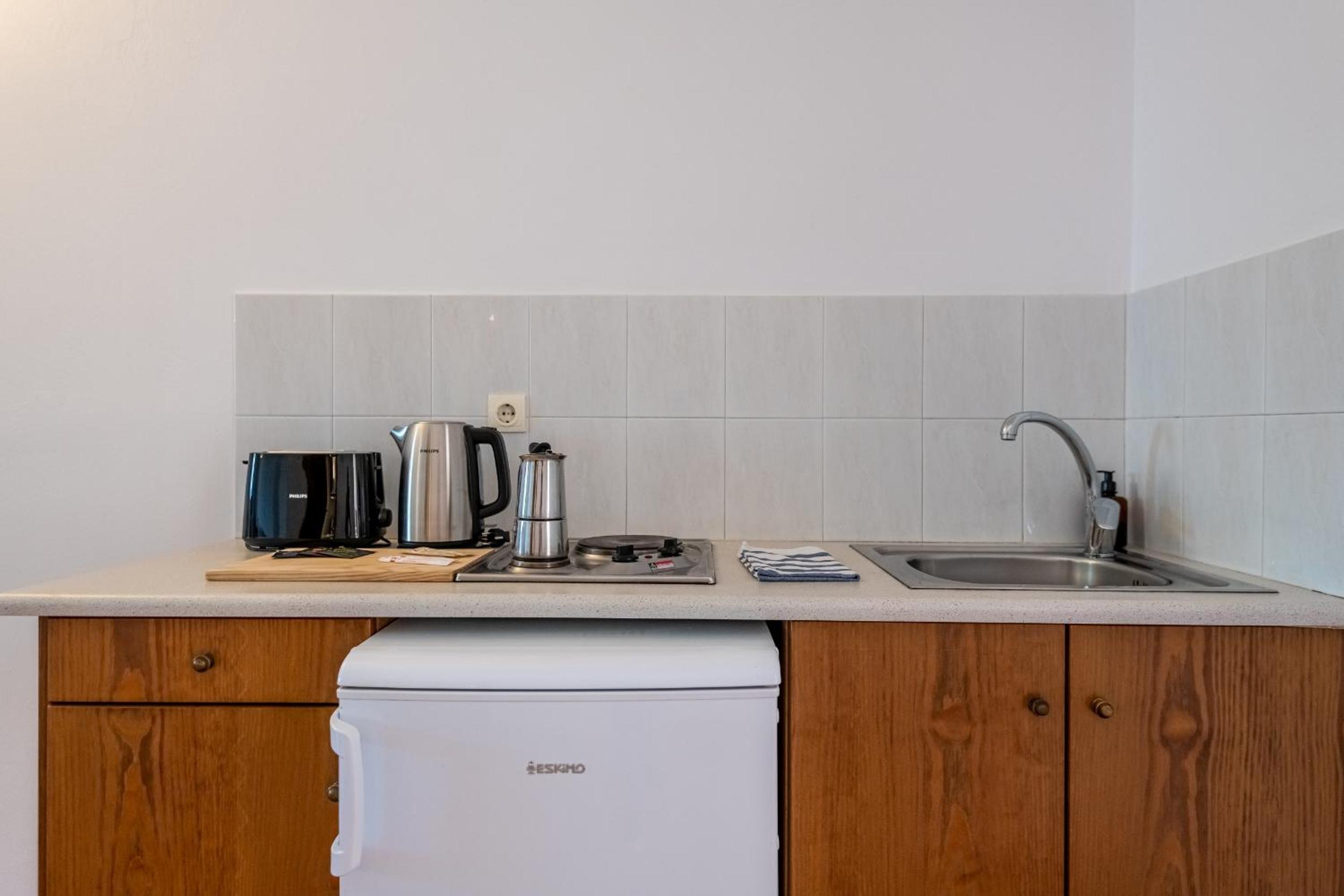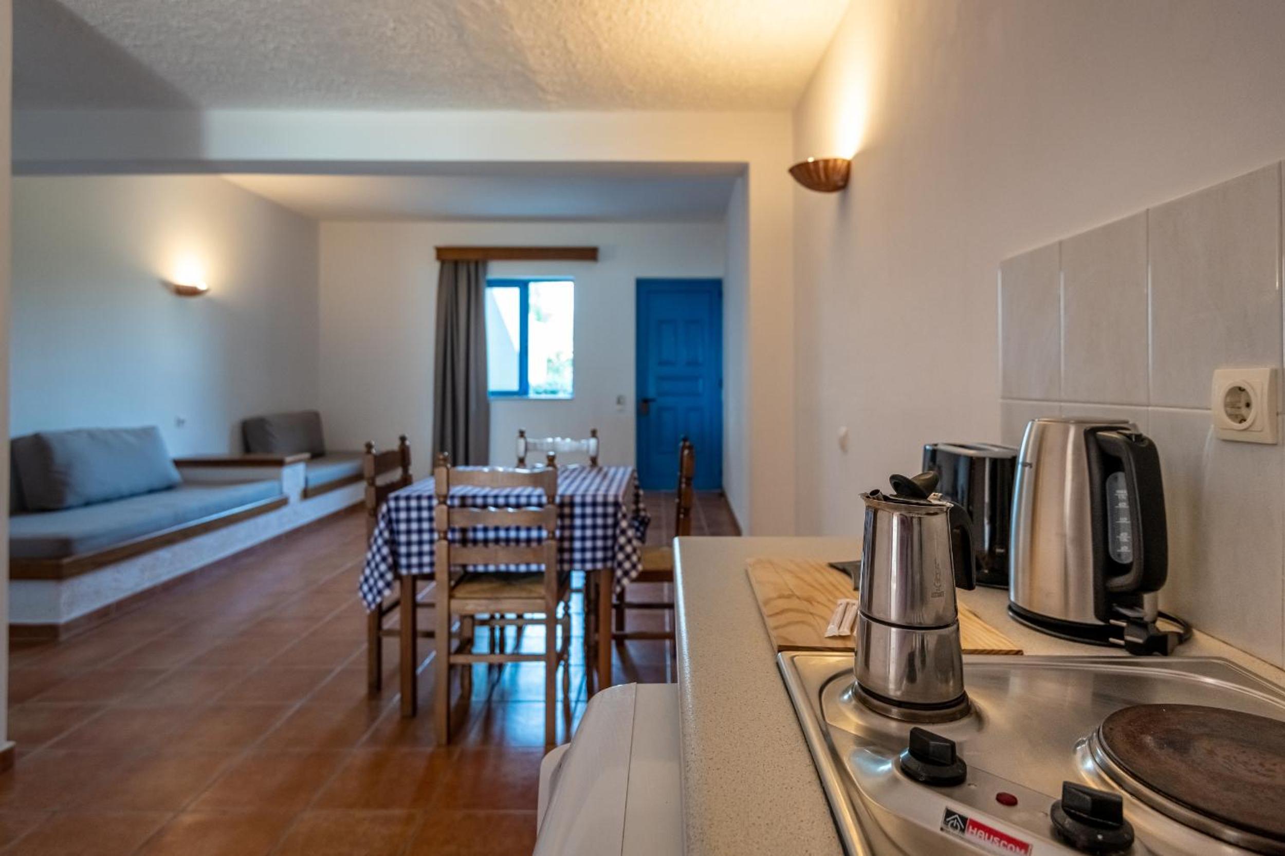 Self-Catering Comfort: Experience the freedom of preparing your own meals in the fully equipped kitchenette using fresh local ingredients. Dine al fresco on your private balcony or terrace while savoring great Greek wines.